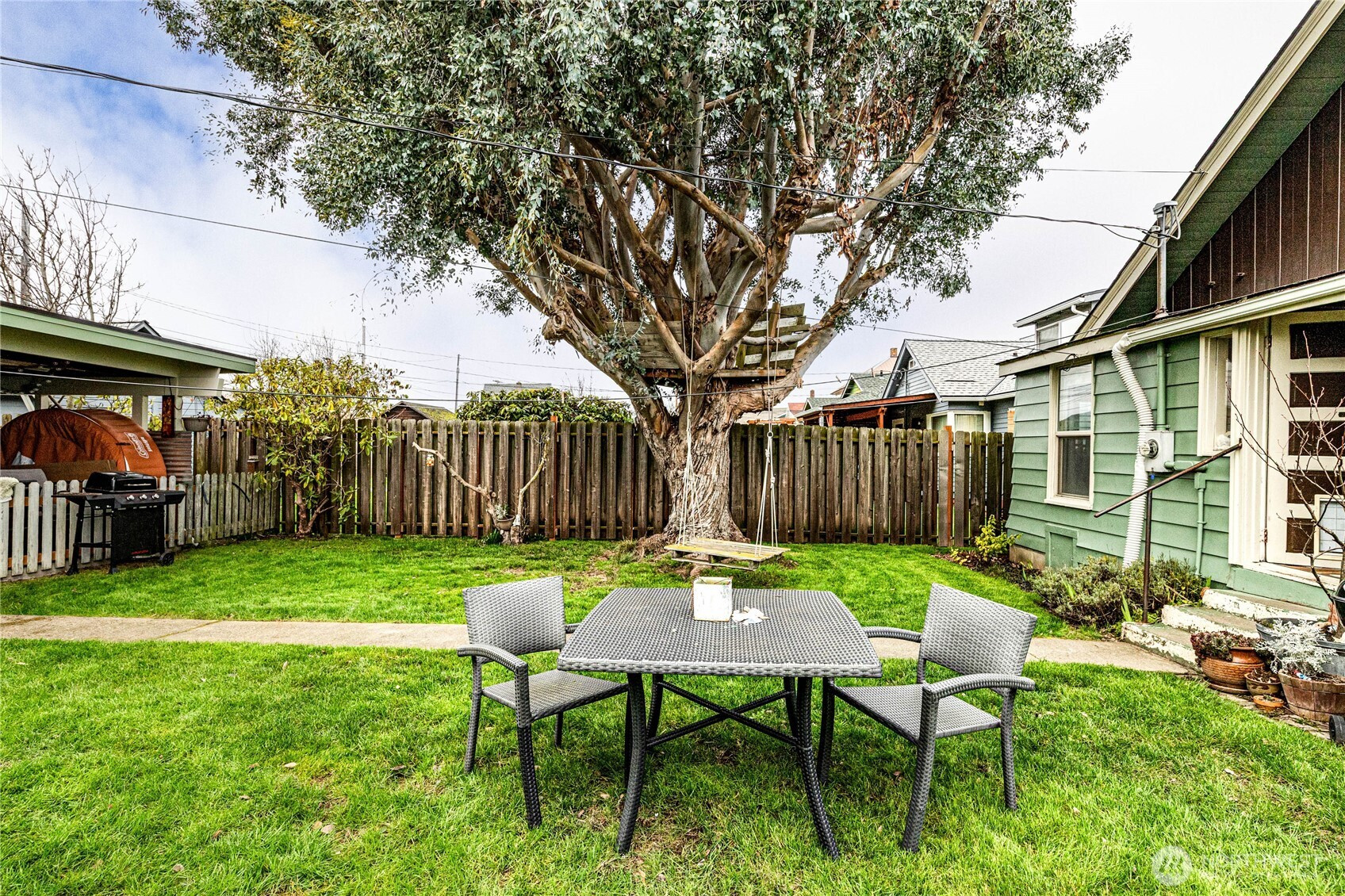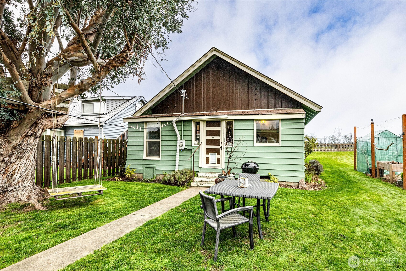 Welcome to this charming bungalow in the heart of Port Angeles, perfectly located near the hospital, walking distance to the Discovery Trail that leads to downtown. There are 988 sq ft of updated living space, this 2-bedroom, 1- bath home blends cozy comfort with unforgettable scenery. Enjoy in your face unobstructed water views of the straits, stunning views of Mt. Baker and even passing ships and occasionally orcas from the bay! Home features updated electrical, plumbing, living area flooring and windows. Living area has a cleverly designed slide room divider that can be moved to block off for a private office/or separate living room area. Step outside to a fully fenced front and backyard oasis designed for both relaxation and productivity. Gardner's will fall in love with the raised beds, established blueberries an raspberries, spiral herb garden and a majestic eucalyptus tree adding character and shade. Need space for toys or projects? The detached 700 sq ft shop includes a 3/4 bath and is complemented by a 700 sq ft covered carport, RV parking and RV hookups w/dump. This rare in-town gem offers lifestyle, location and views that are hard to match.
