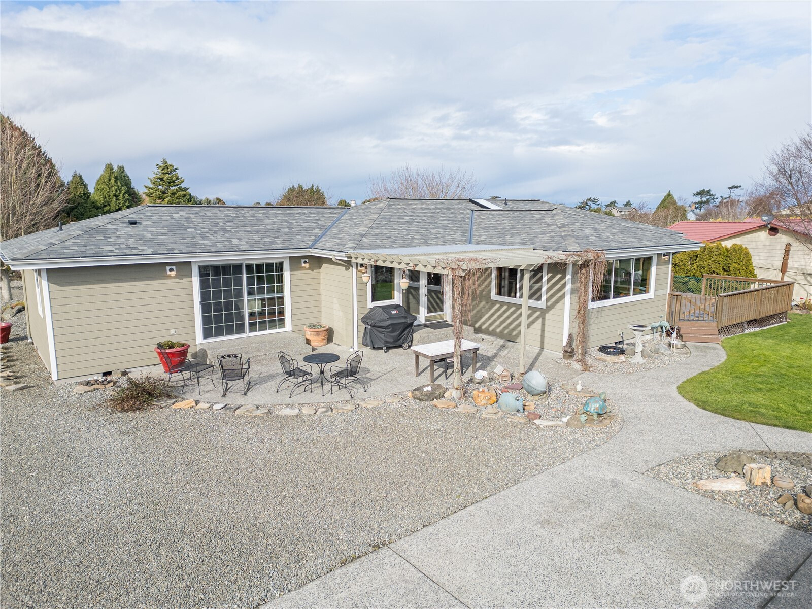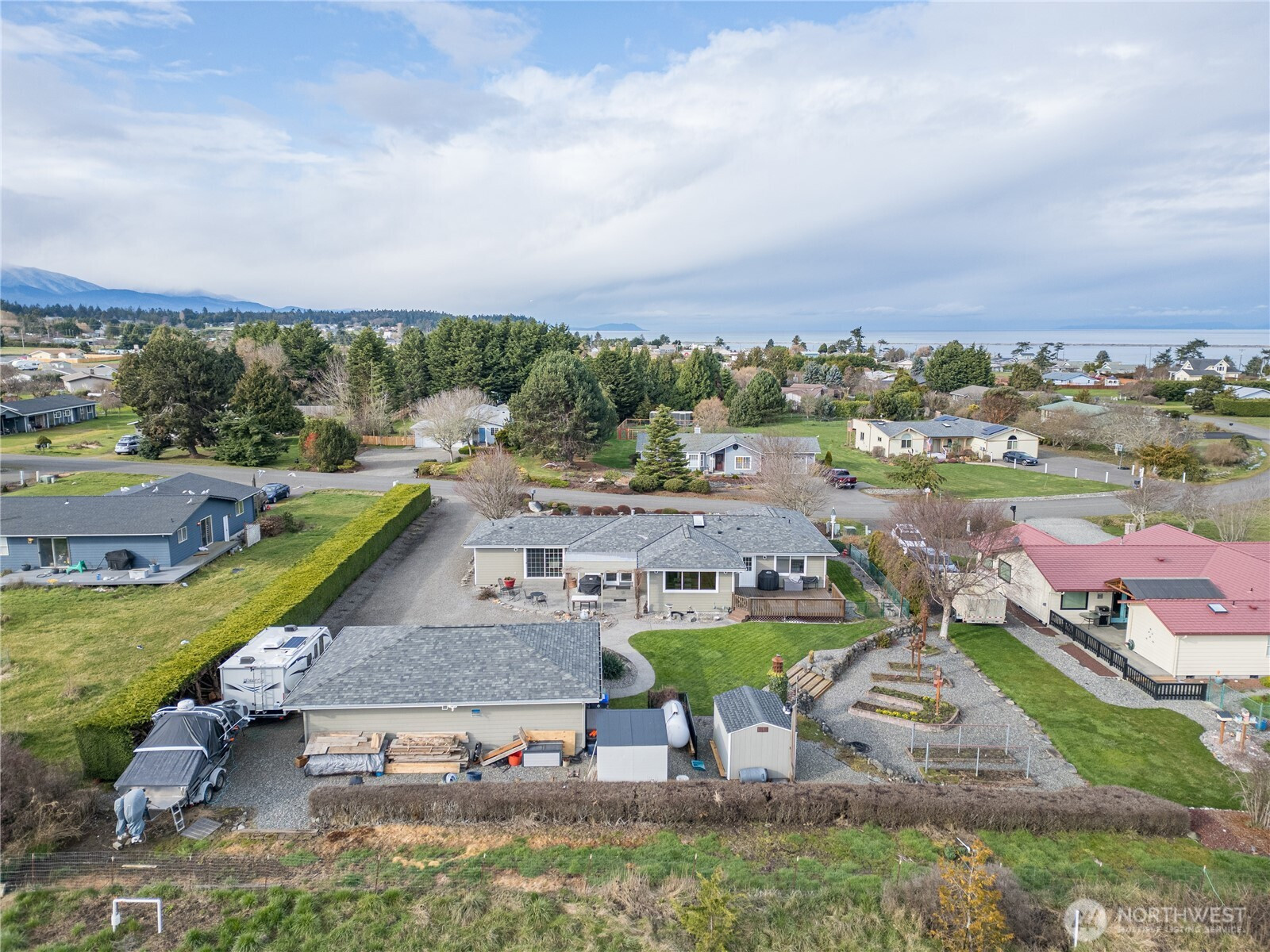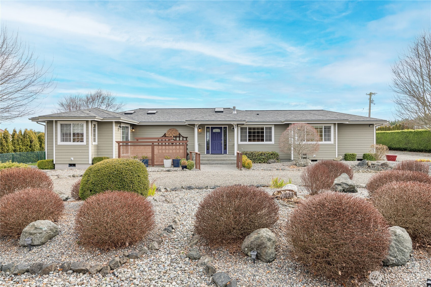 This thoughtfully designed, single-level residence seamlessly combines sophisticated modern amenities and a professional chef’s kitchen with a warm touch of rustic charm. The home is perfectly positioned on a picturesque property that offers breathtaking views of the surrounding mountains and water, complemented by a beautiful, easy-to-maintain yard.Upon entering, your eyes are immediately drawn to the stunning, three-sided see-thru propane fireplace that serves as a cozy focal point for the living space. This masterfully remodeled home features a true chef’s dream kitchen, offering abundant storage solutions, including high-end built-in full Subzero freezer and refrigerator units. Culinary enthusiasts will appreciate the premium 6-burner Dacor Dual Fuel Range and expansive counterspace that seems to go on for days. The location is a nature lover's paradise, situated within easy walking distance of Cline Spit and scenic county parks, and just a short 6-minute drive from the renowned Dungeness Wildlife Reserve. You are also only a quick trip away from local medical facilities, shopping centers, famous lavender farm tours, and the annual Sequim Sunshine Festival. For ultimate peace of mind, a brand-new roof was professionally installed in February 2026.
