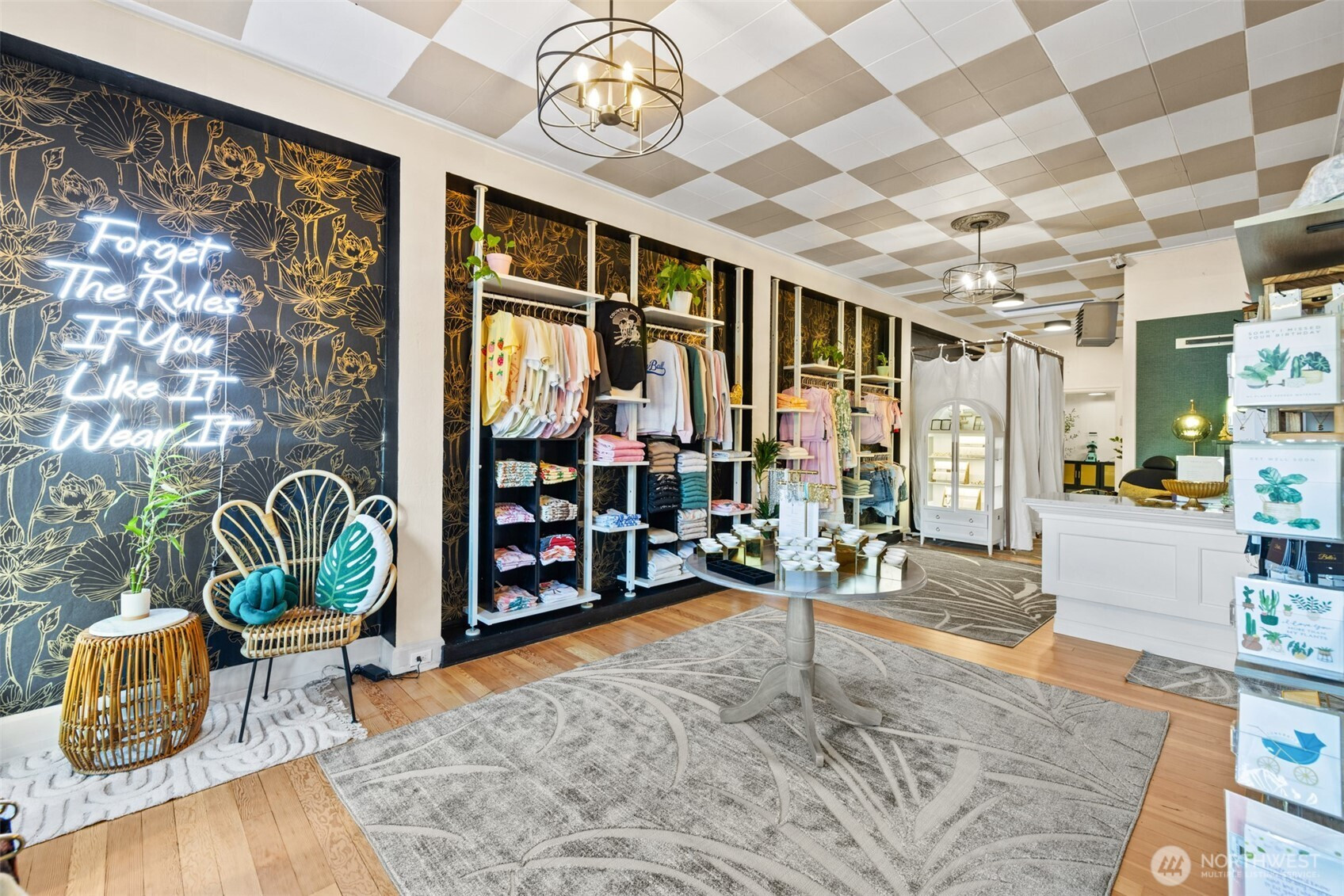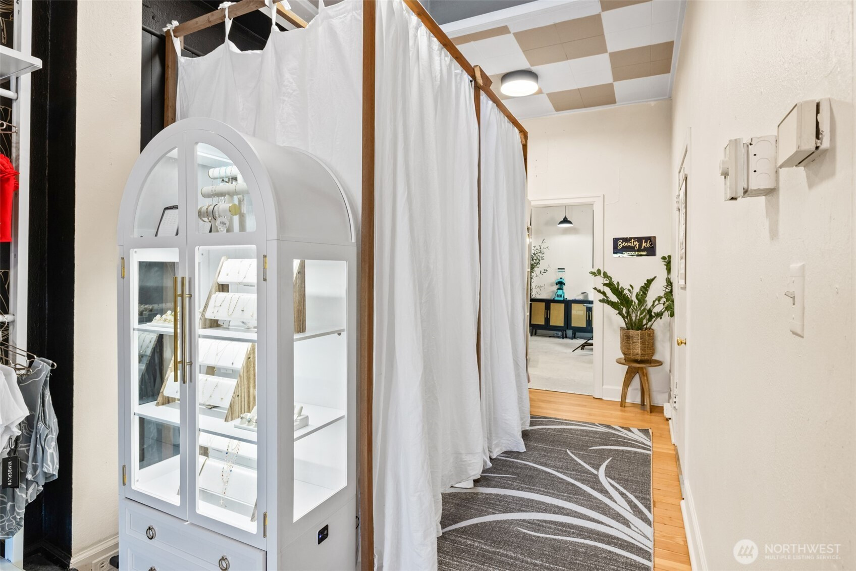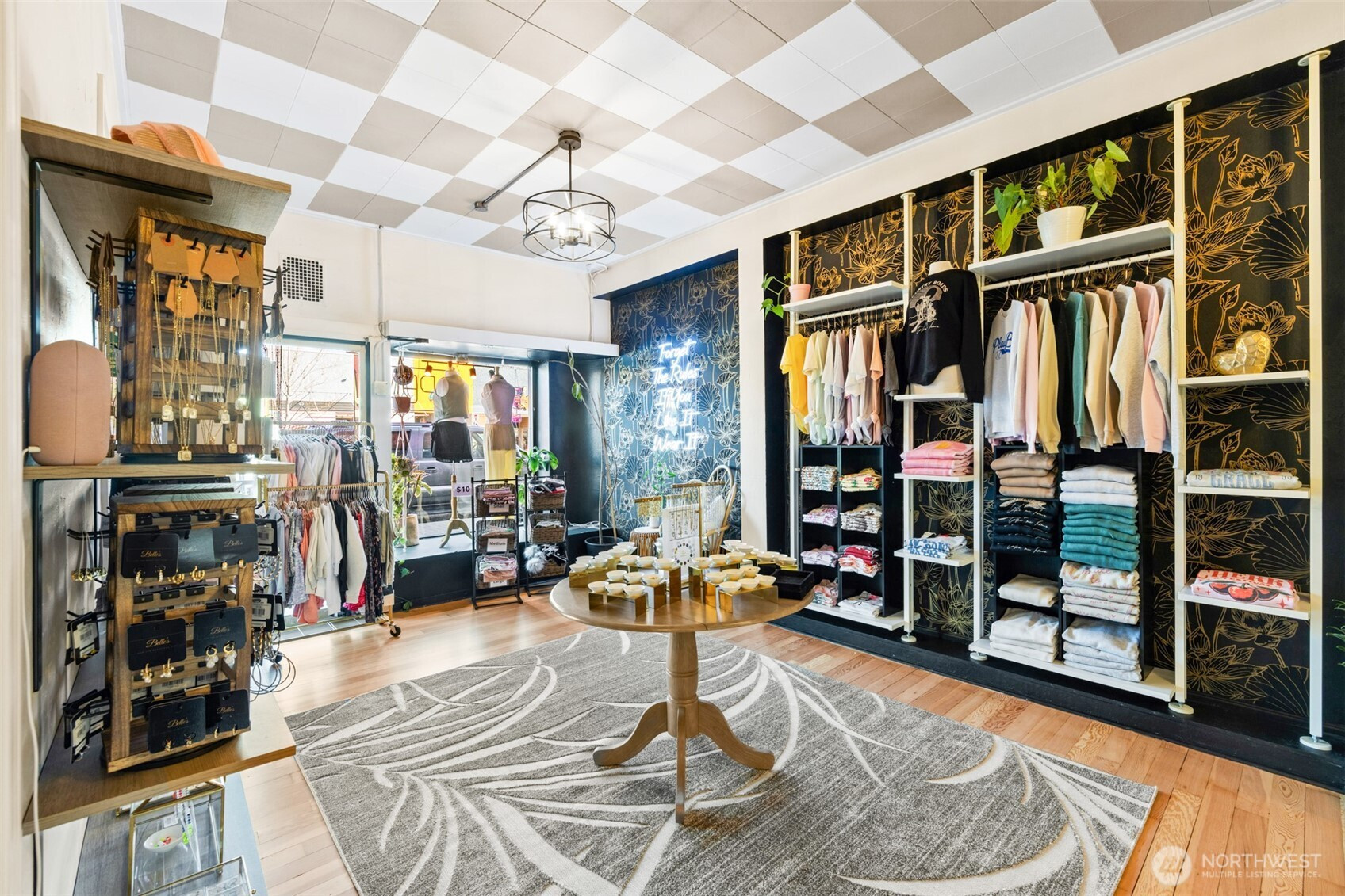 Located in the heart of downtown Port Angeles along the revitalized First Street corridor, this commercial space blends clean modern design with natural textures and bold contrast. The approximately 1,500-square-foot building offers 25’ of prime street frontage and is zoned Central Business District, allowing a variety of commercial uses. Recently remodeled from top to bottom, the property includes a brand-new roof and extensive cosmetic upgrades inside and out, creating a refined retail environment. Its downtown location benefits from steady local activity and year-round tourist traffic. The sale includes the building and Belle’s Boutique, a successful retail business with a strong local following, along with all inventory, fixtures, and furniture. The boutique features jewelry, a custom hat bar experience, trend-forward clothing, locally made accessories, and custom retail displays. The space also includes private dressing rooms, a personalized children’s nook, and a spa-like bathroom. Two rear rooms are currently occupied by a tattoo studio and a nail business, providing existing sublease income. Open street parking is available along First Street and throughout downtown. Positioned where the mountains meet the sea, the surrounding district features popular shops, restaurants, and steady foot traffic. Turnkey opportunity to continue the boutique or bring a new concept to the space!