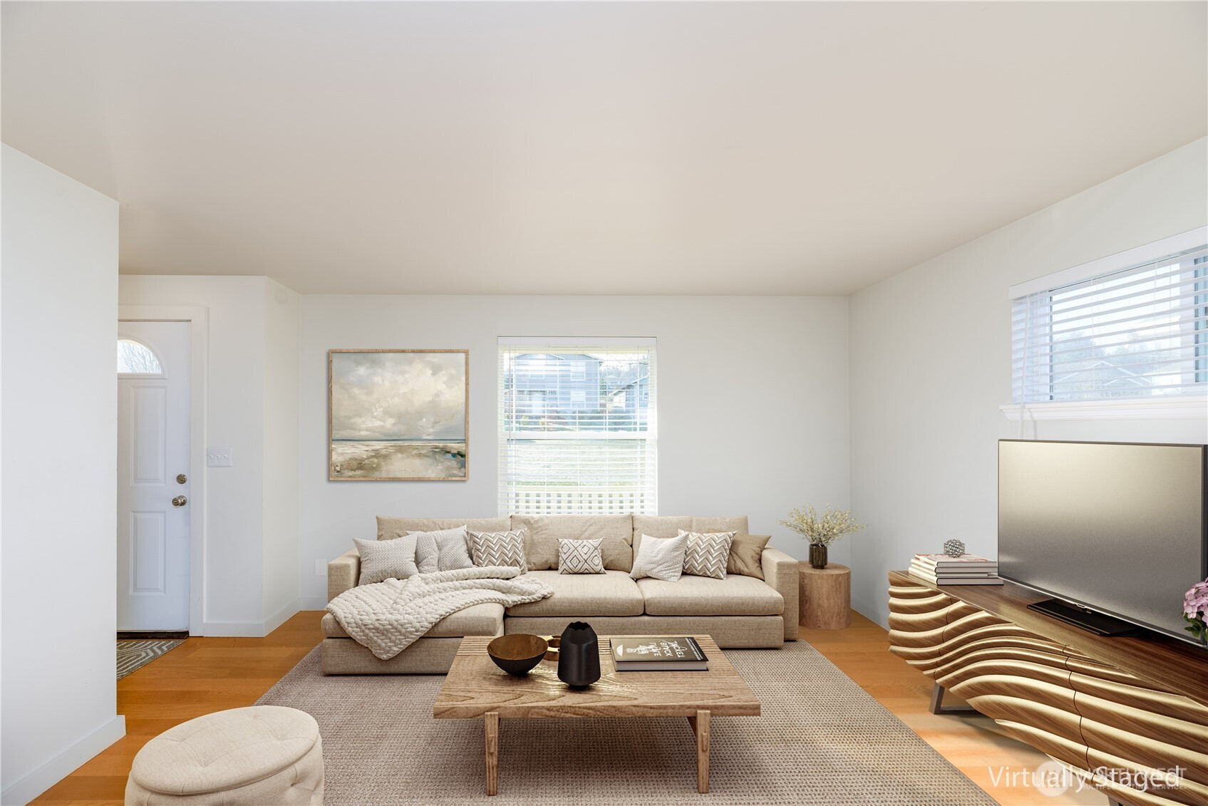 Charming home in the Alpine Meadow community, perfectly positioned to capture stunning mountain views from the welcoming front porch. Inside, you’ll find a bright, open-concept layout featuring oak hardwood floors, stainless steel appliances, custom blinds, and thoughtful upgrades throughout. The spacious primary bedroom offers a full ensuite bath and a generous closet, creating a comfortable retreat. Step outside to a private backyard designed for both relaxation and practicality, complete with a lovely deck, landscaped garden areas, new fencing, and plenty of room for planting or play. A private pathway leads to the large, detached garage—ideal for storage, hobbies, or parking. Tucked at the end of a quiet one-way street, this home offers comfort living with easy access to dining, shopping, schools, trails, and beaches. Peaceful, affordable, and move-in ready—this Alpine Meadow gem is one you won’t want to miss.