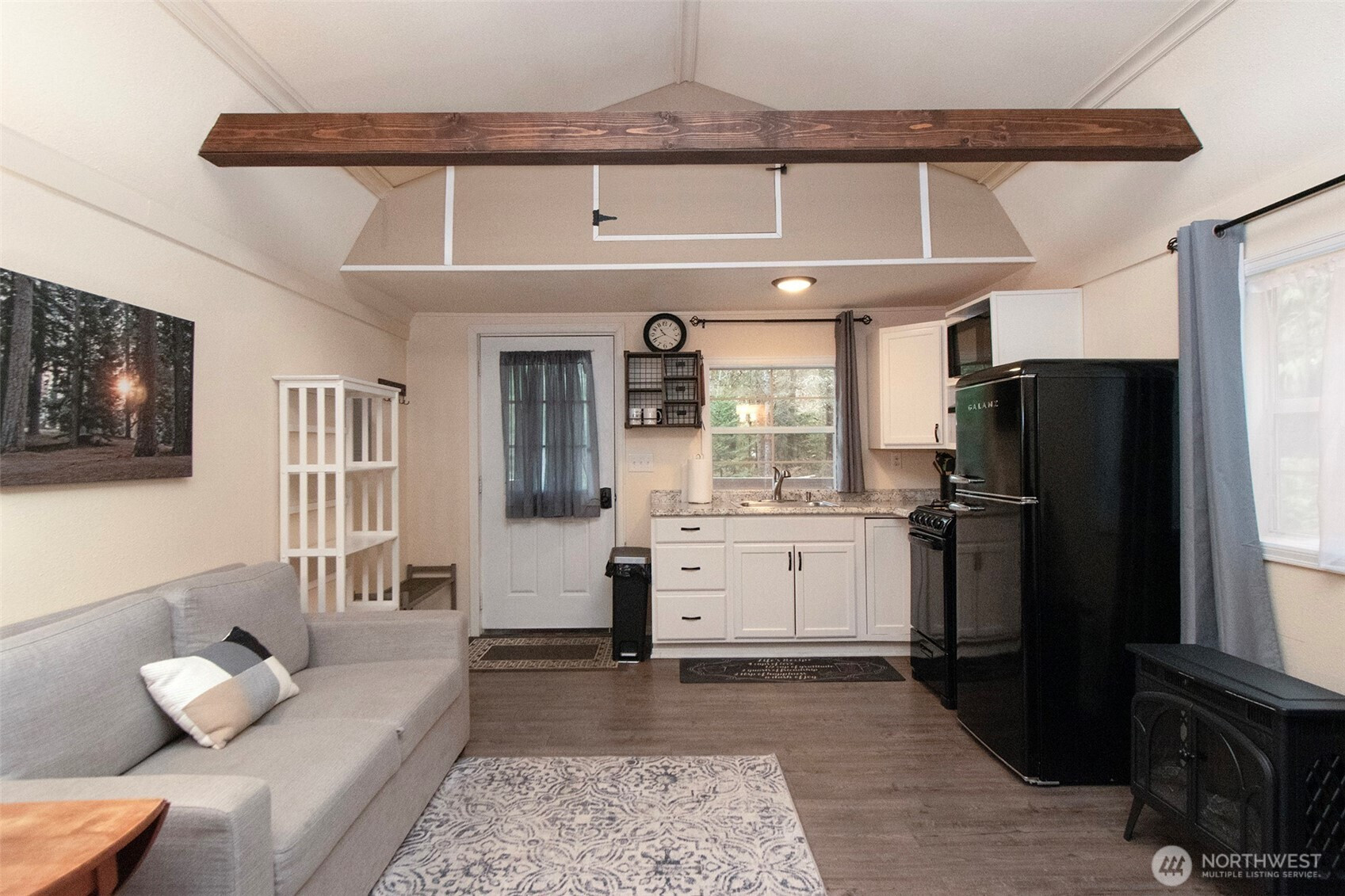 Set between Sequim and Port Angeles, this peaceful retreat sits on nearly 5 private acres and offers the space, flexibility, and natural beauty buyers seek in Olympic Peninsula real estate. Surrounded by evergreens and open sky, the property provides exceptional privacy while remaining close to town, trails, and coastal recreation.Inside, the home is filled with natural light thanks to abundant double-pane windows that frame the surrounding landscape. A cozy gas stove warms the second bedroom, while a ductless heat pump ensures efficient year-round comfort. The living area is enhanced by a projector home-theater system with a 12-foot screen—perfect for movie nights or game-day gatherings. The kitchen features warm birch cabinets and a functional layout ideal for everyday cooking or hosting.Outdoors, the acreage offers room to spread out with multiple outbuildings for storage, hobbies, or workspace. Dedicated space for RV parking or a boat makes it easy to enjoy the region’s marinas, lakes, and coastline. This property delivers a rare blend of comfort and Northwest lifestyle.A great opportunity for buyers searching for homes with space, serenity, and versatility on the Olympic Peninsula.
