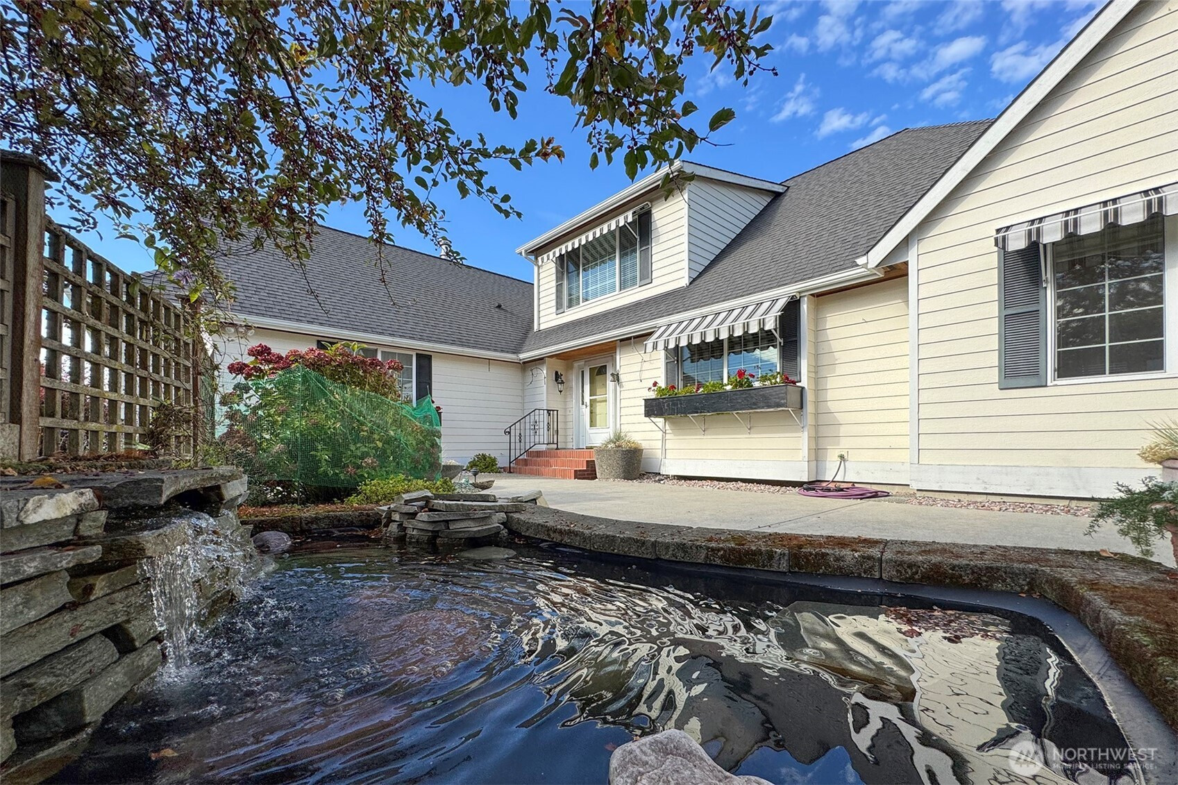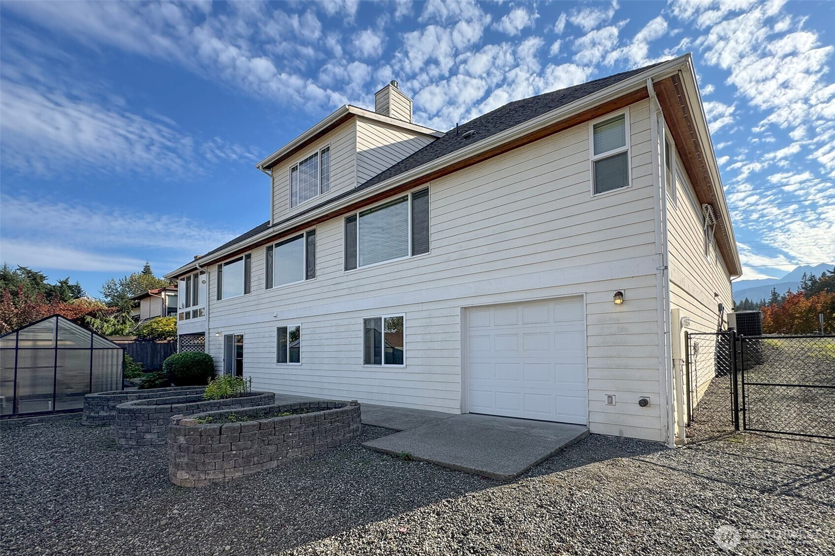 Custom built home with stunning water and mountain views! Spacious kitchen with island, walk-in pantry, and updated appliances. Living room features vaulted ceiling, propane fireplace and built-in's. Sunny breakfast room opens to a harbor-view sunroom. Main-level primary suite with walk-in closet, jetted tub, and separate shower. Daylight basement includes 2 bds, full bath, and rec room plumbed for kitchenette with patio access, and heated and finished shop with garage door Beautifully landscaped with fountain, raised beds, greenhouse, and fenced flower garden. Attached 2 car garage with extra parking in gravel off west side of home. Convenient circular driveway. This rare property offers beauty, comfort, and functionality-all in one!