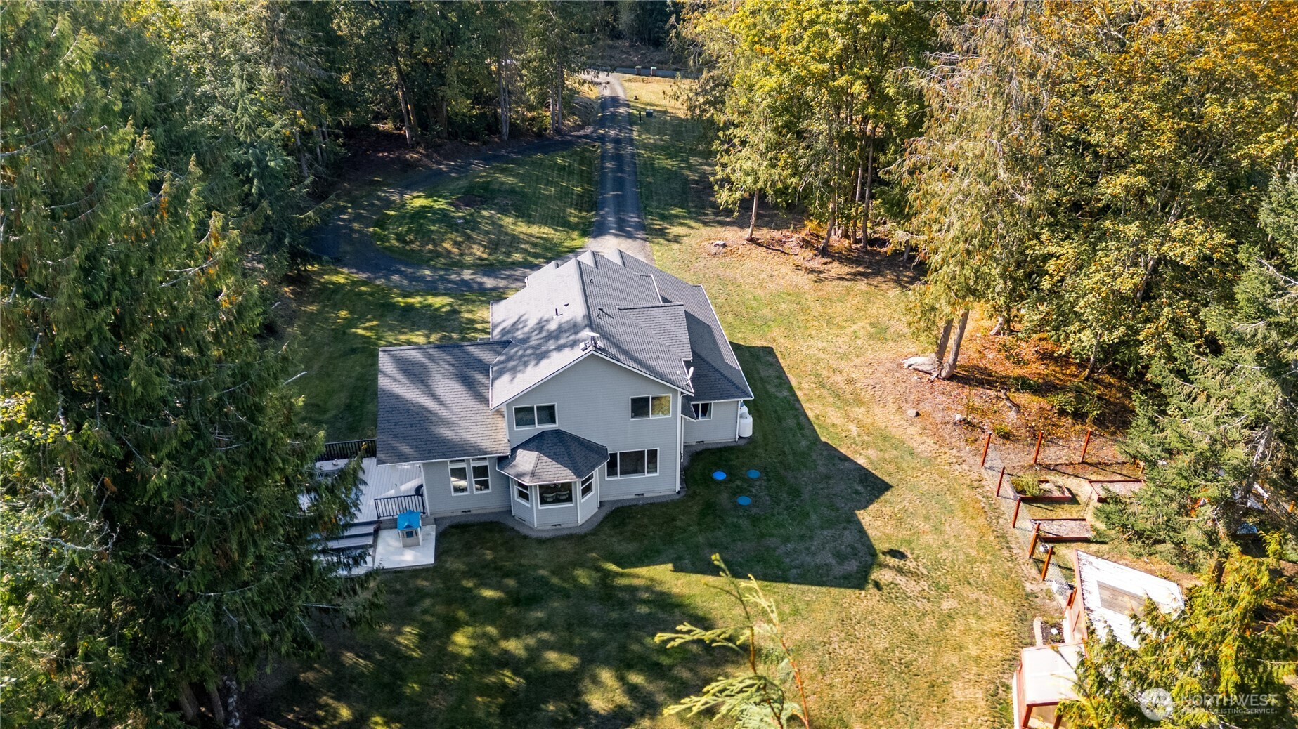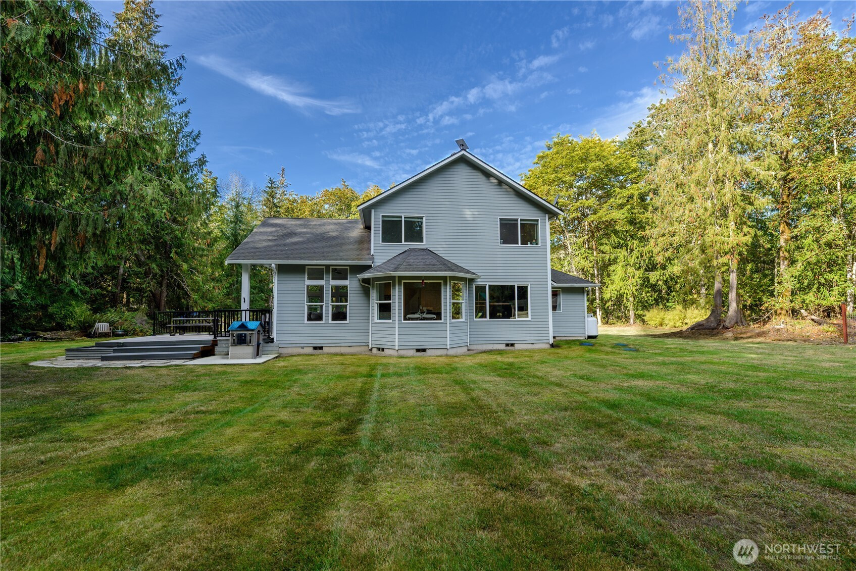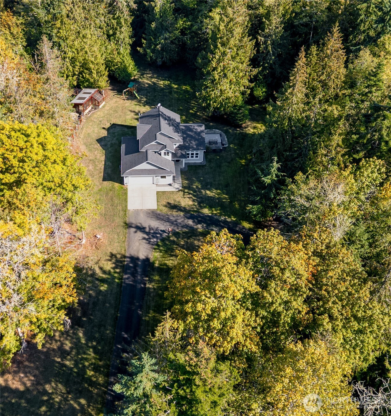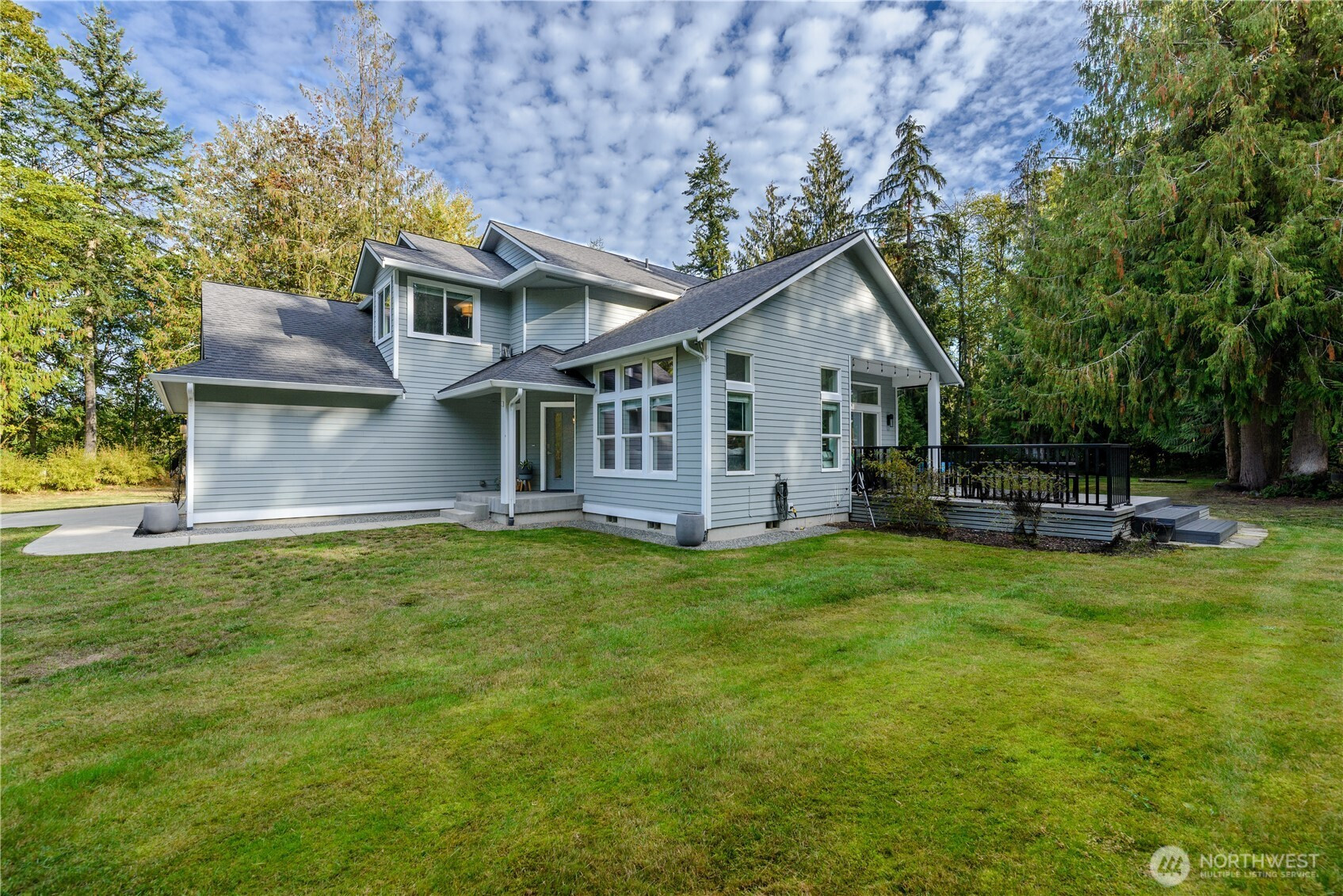 This custom built home on private 5-acre offers nature-filled lifestyle with modern comfort. Forested park-like setting. Expansive deck overlooking lively pond, firepit, greenhouse, fenced garden create a self-sustaining retreat. Features 3 bed 3 bath plus a flexible bonus room for guests, gym, office etc. Every detail is perfectly executed - simply arrive and enjoy the effortless elegance. High ceilings, high-end Bosch appliances, quartz counters, large island compliments fun gatherings. Primary suite with shower and soaking tub. Fully finished garage with EV charger. Heat pump plus propane fireplace. RV parking spot by circular driveway. NO HOA. Secluded yet minutes to amenities and countless outdoor attractions of Olympic National Park.