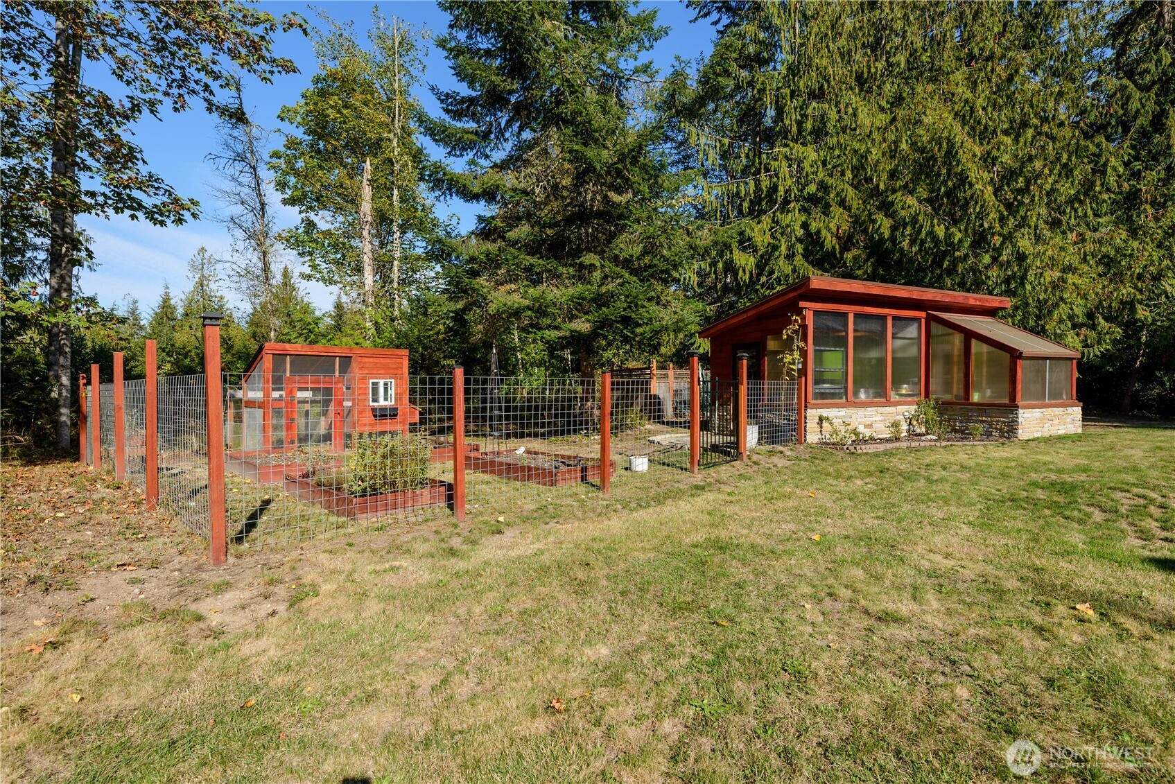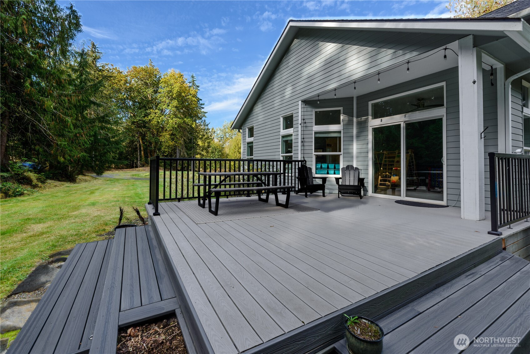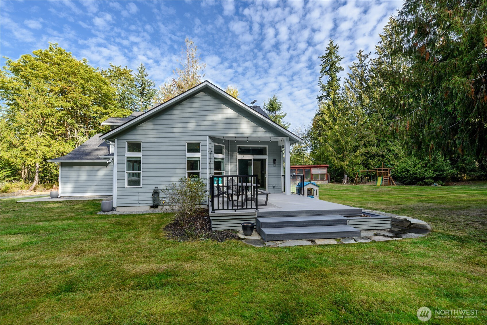 This custom built home on private 5-acre offers nature-filled lifestyle with modern comfort. Forested park-like setting. Expansive deck overlooking lively pond, firepit, greenhouse, fenced garden create a self-sustaining retreat. Features 3 bed 3 bath plus a flexible bonus room for guests, gym, office etc. Every detail is perfectly executed - simply arrive and enjoy the effortless elegance. High ceilings, high-end Bosch appliances, quartz counters, large island compliments fun gatherings. Primary suite with shower and soaking tub. Fully finished garage with EV charger. Heat pump plus propane fireplace. RV parking spot by circular driveway. NO HOA. Secluded yet minutes to amenities and countless outdoor attractions of Olympic National Park.