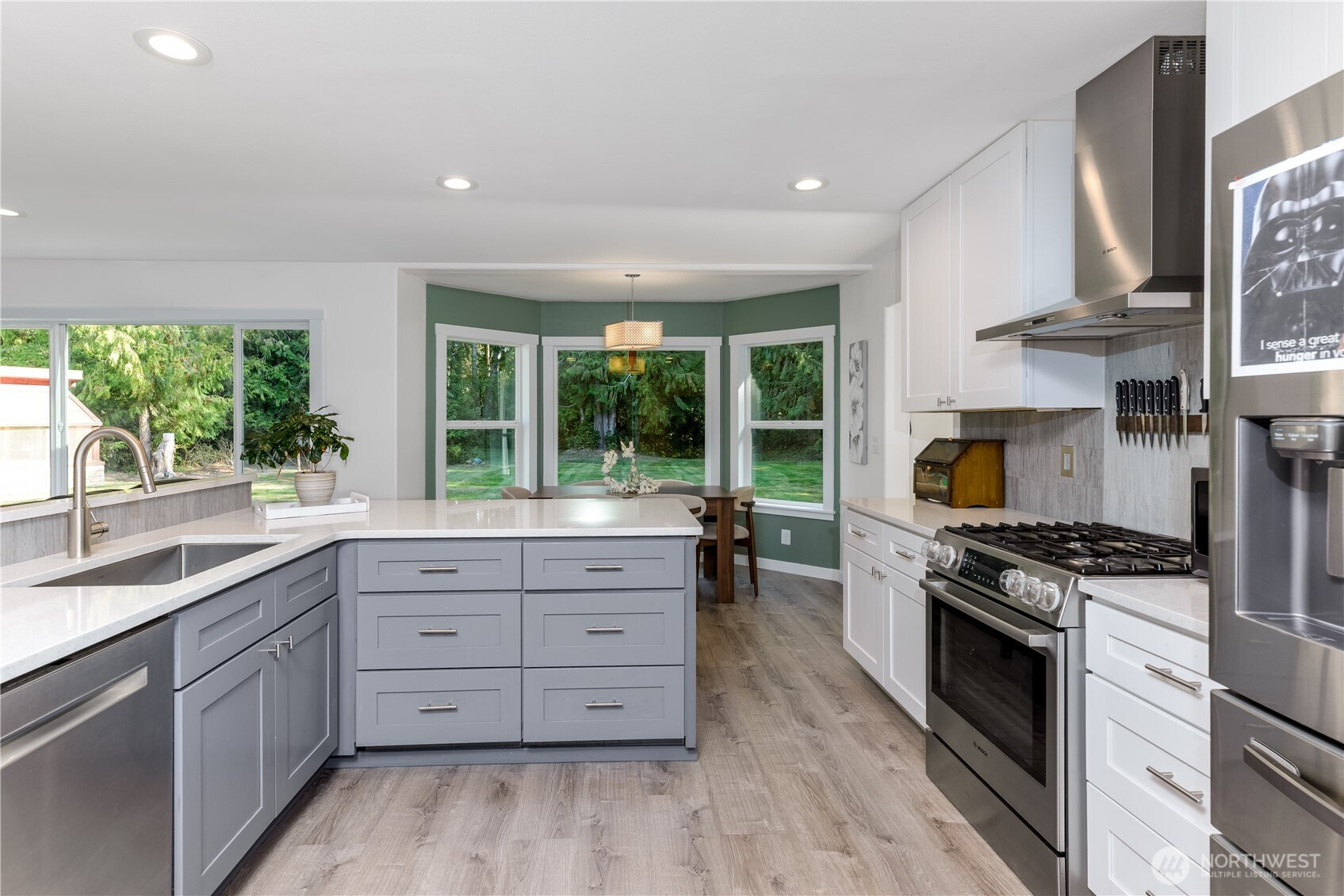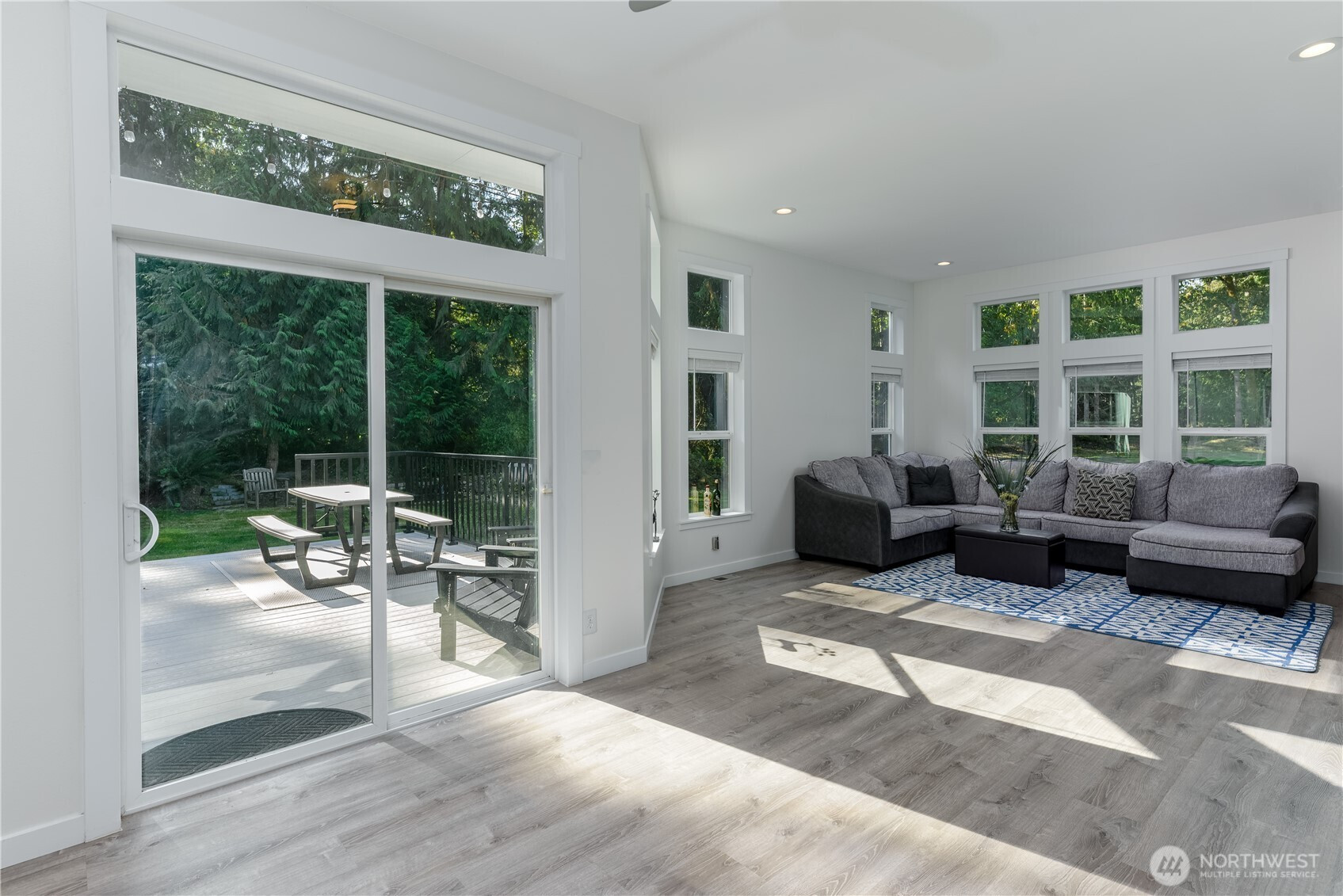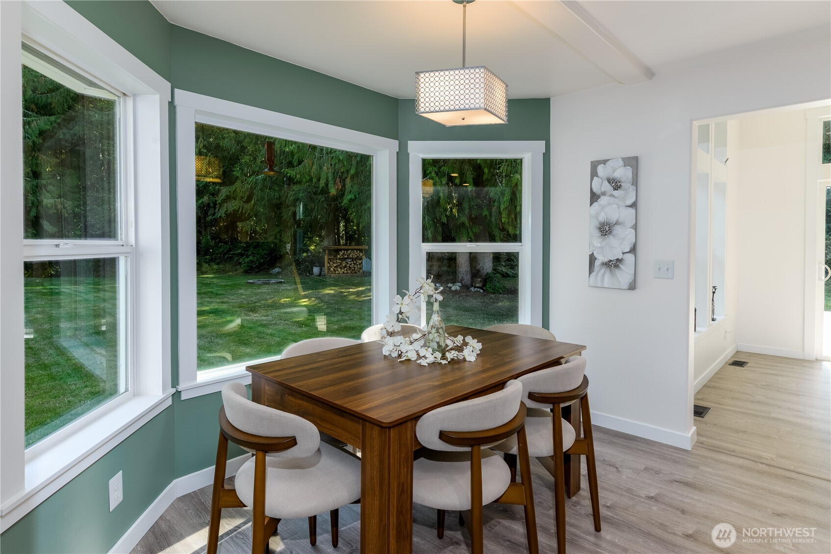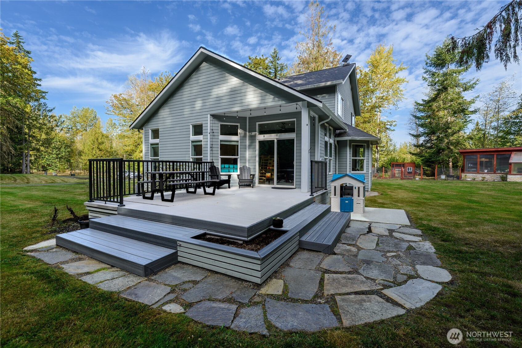 This custom built home on private 5-acre offers nature-filled lifestyle with modern comfort. Forested park-like setting. Expansive deck overlooking lively pond, firepit, greenhouse, fenced garden create a self-sustaining retreat. Features 3 bed 3 bath plus a flexible bonus room for guests, gym, office etc. Every detail is perfectly executed - simply arrive and enjoy the effortless elegance. High ceilings, high-end Bosch appliances, quartz counters, large island compliments fun gatherings. Primary suite with shower and soaking tub. Fully finished garage with EV charger. Heat pump plus propane fireplace. RV parking spot by circular driveway. NO HOA. Secluded yet minutes to amenities and countless outdoor attractions of Olympic National Park.