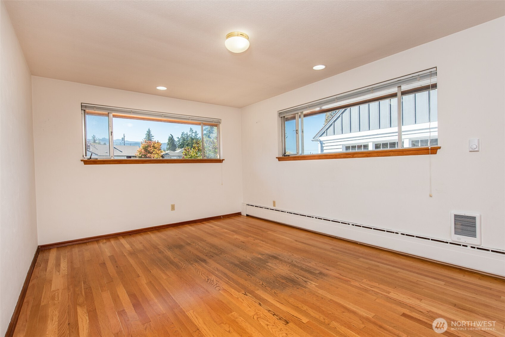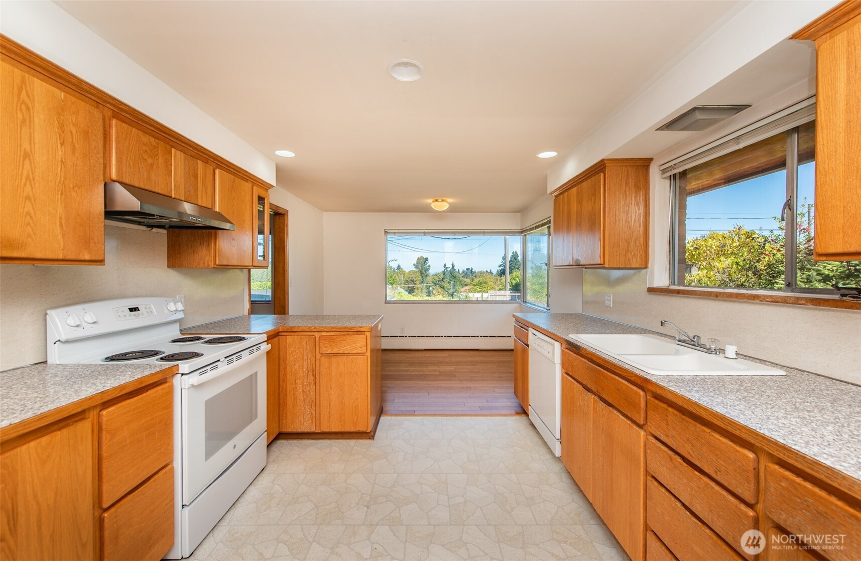 Beautiful home on oversized lot with mountain views. Built in 1955, this one-story home with a daylight basement has a Midcentury Modern feel. Spacious 2,248 square feet of bright living space. Main level includes 2 bedrooms + 1 full bathroom, large living room, dining room and kitchen with eating space. Lower level offers a second living room, office that could be used as a 3rd bedroom, 3/4 bathroom, sauna & soaking tub. Each level equipped with a ductless heat pump and wood stove. One car attached garage has tons of extra space for hobbies & storage, includes x3 220 outlets. Metal roof with solar panels offers longevity and a reduced utility bill. Private backyard has a patio, storage house and off-street parking. Great central location!