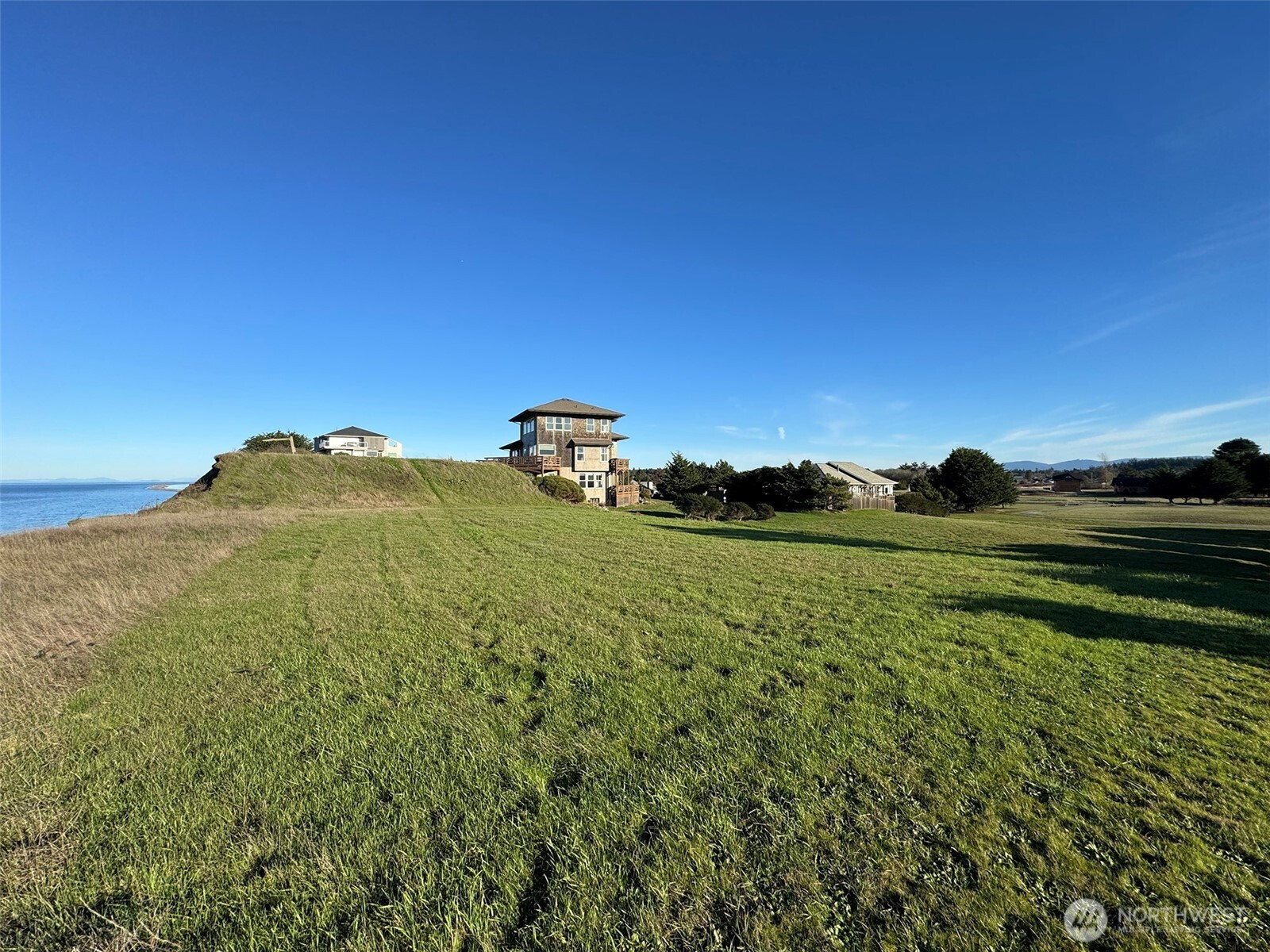 Experience extraordinary coastal living on this 2.5-acre high-bank waterfront parcel in Blue Ribbon Farms, an enclave of custom homes with access to a private grass airstrip. Set within Sequim’s renowned rain shadow, the property enjoys sunnier, drier weather and sweeping views of the Strait of Juan de Fuca, Mt. Baker, the San Juan Islands, Vancouver Island, and the Olympic Mountains. Eagles, hawks, seabirds, deer, and black-tailed rabbits are regular visitors, adding to the natural beauty and quiet rhythm of the setting. Outdoor recreation is exceptional with the Dungeness Recreation Area and Dungeness National Wildlife Refuge just moments away—offering miles of bluff-top trails, protected habitat, & the iconic walk along the Dungeness Spit to the lighthouse, a favorite local experience treasured by residents and visitors alike. The community’s private grass airstrip provides a rare amenity for aviation enthusiasts, blending naturally into the landscape. Much of the groundwork for building is complete: a preliminary stormwater plan, 2019 Geotech with 2024 county review confirming a 150' bluff setback, soils & site registration, and a pending 3-bedroom septic permit valid through March 2027. The property is served by PUD power and the Cascadia community water system, and CCRs help protect the character of this desirable waterfront community. A rare opportunity to build where sunshine, scenery, & coastal quiet come together in a truly exceptional setting.