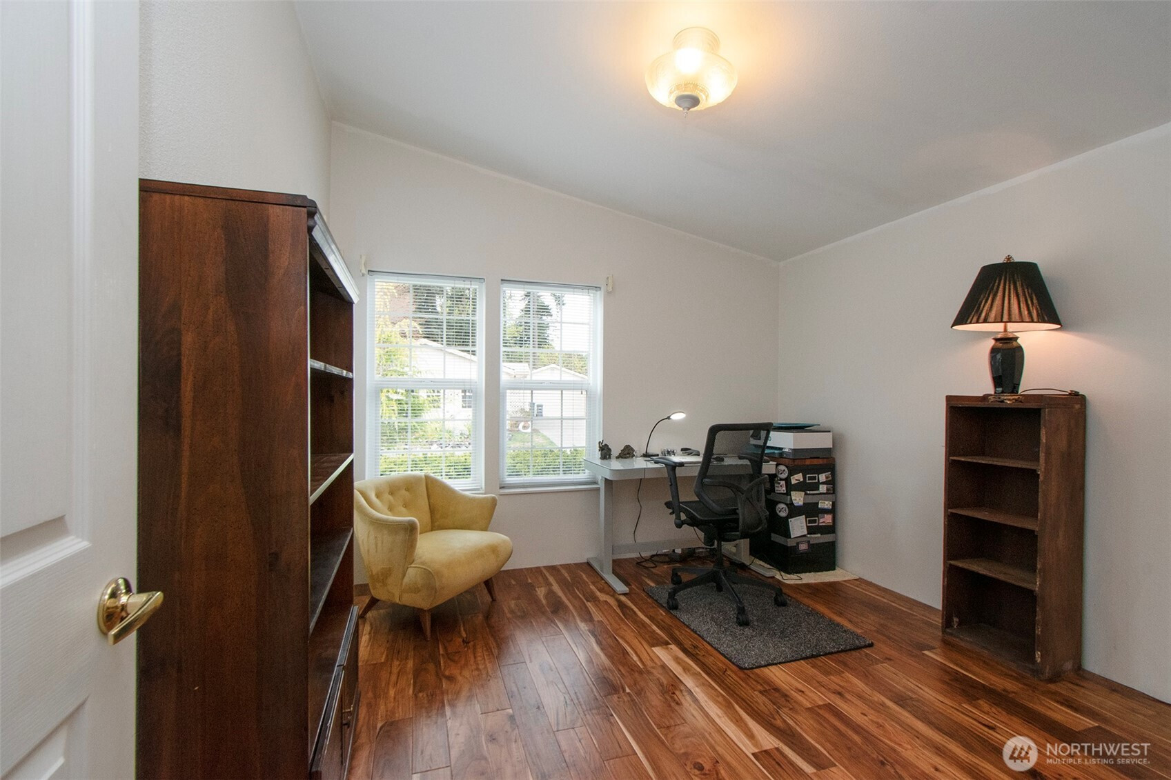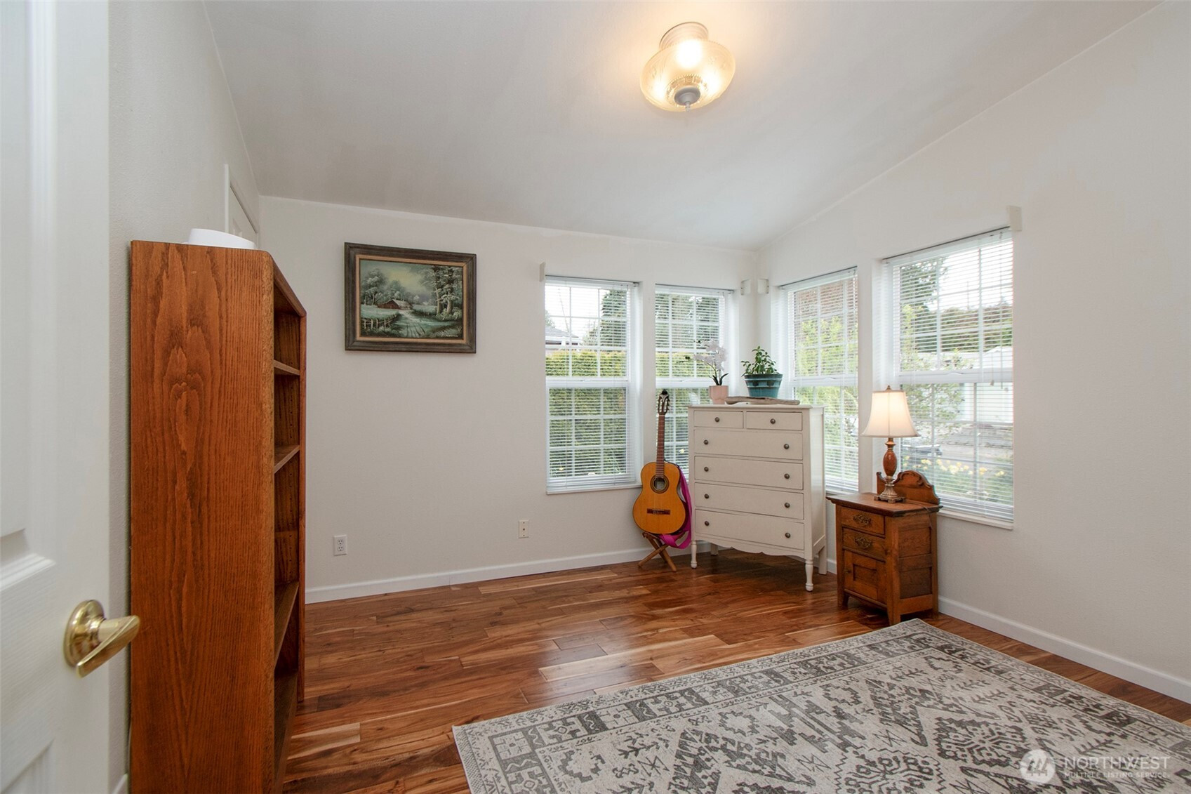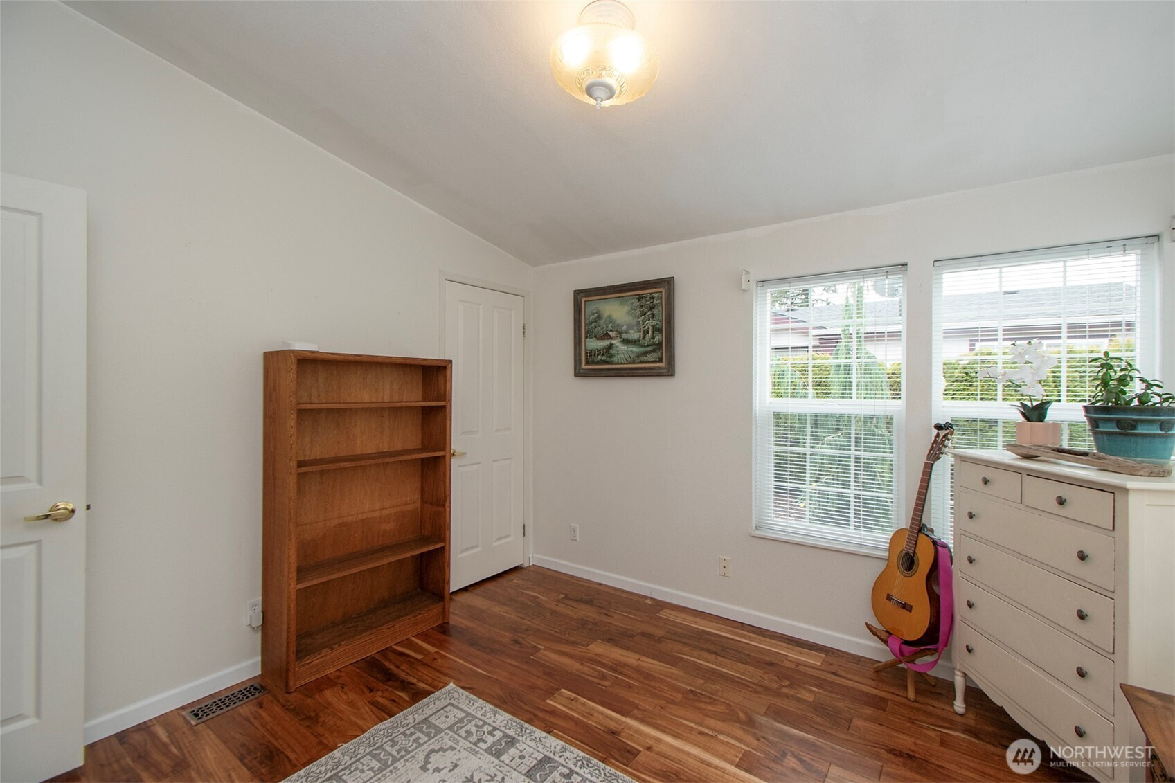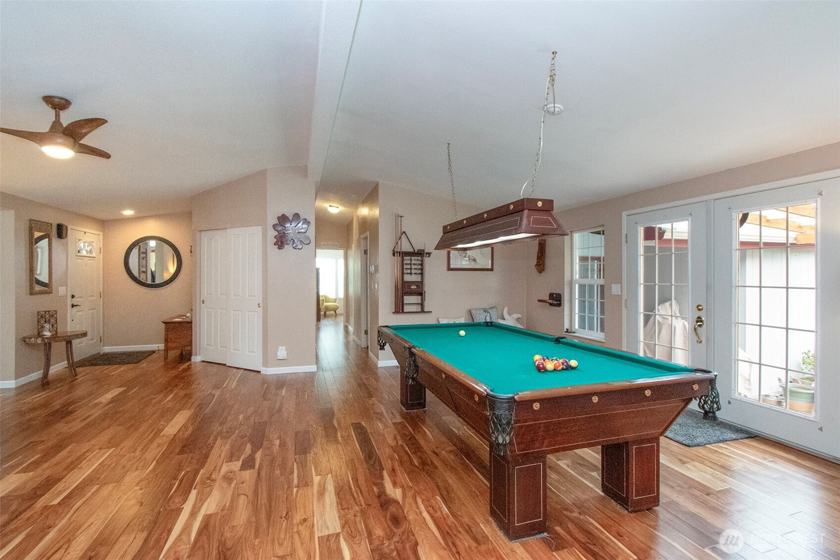 Newly updated, well maintained, and spacious triple-wide home, perfectly located in the quiet back corner of beautiful Parkwood. Light and bright home with an exceptional floor-plan, two large open living areas, updated kitchen with quartz countertops and skylight, primary suite has a walk-in closet, walk-in tiled shower, double sinks, and a jetted soaking tub. All new Acacia flooring throughout, new kitchen appliances, a new under-counter sink and faucet with instant hot water, new guest bathroom fixtures and tile, all new exterior covered porch/patio areas, new back and south side fencing, as well as mature landscaping with fig and pear trees, strawberries and blueberries. The large two car garage has an additional heated/finished shop area with workbench perfect for crafts and hobbies. The back yard with raised beds, flower garden and greenhouse/garden shed has a very private feel. The landscaping with drip irrigation, two covered and tiled outdoor living/patio areas, lush lawn and the homes location in the park add to the feeling of privacy. Parkwood offers many amenities including a clubhouse, BBQ area, exercise room, sauna, RV parking and trails.