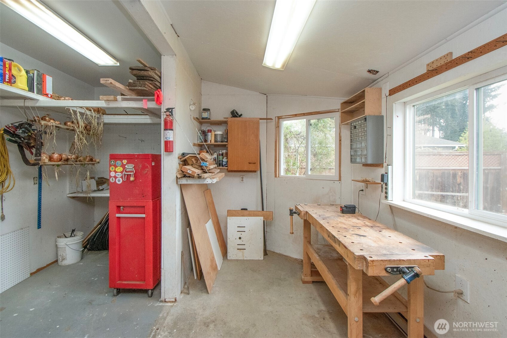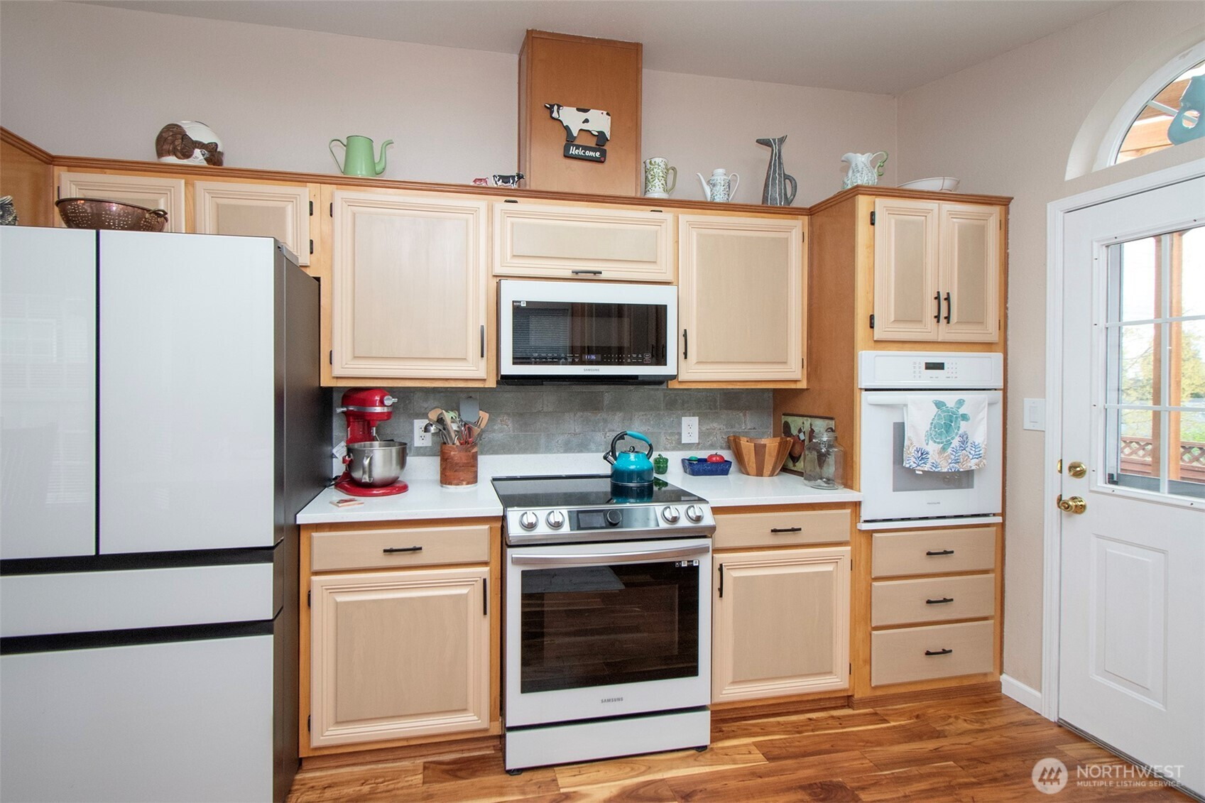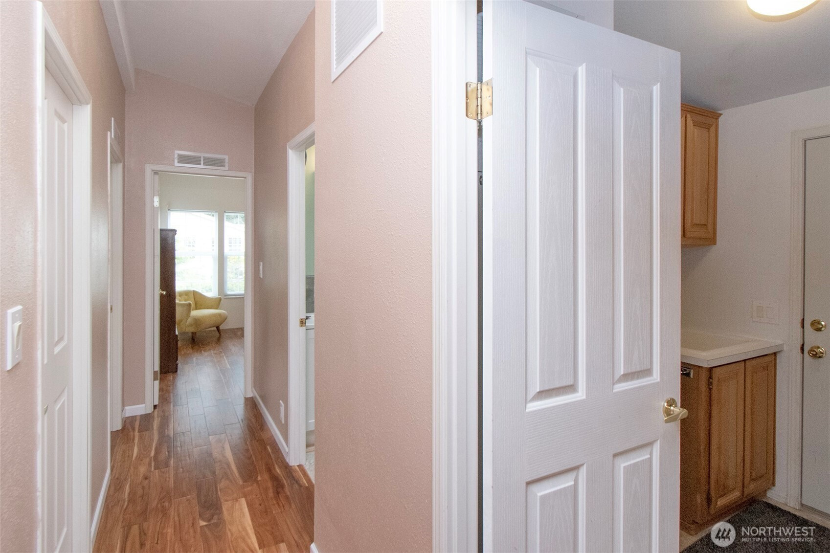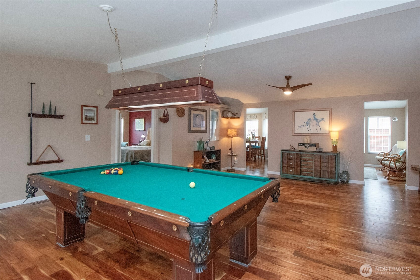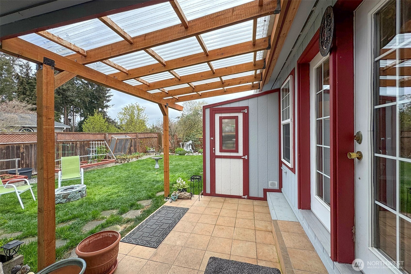 Newly updated, well maintained, and spacious triple-wide home, perfectly located in the quiet back corner of beautiful Parkwood. Light and bright home with an exceptional floor-plan, two large open living areas, updated kitchen with quartz countertops and skylight, primary suite has a walk-in closet, walk-in tiled shower, double sinks, and a jetted soaking tub. All new Acacia flooring throughout, new kitchen appliances, a new under-counter sink and faucet with instant hot water, new guest bathroom fixtures and tile, all new exterior covered porch/patio areas, new back and south side fencing, as well as mature landscaping with fig and pear trees, strawberries and blueberries. The large two car garage has an additional heated/finished shop area with workbench perfect for crafts and hobbies. The back yard with raised beds, flower garden and greenhouse/garden shed has a very private feel. The landscaping with drip irrigation, two covered and tiled outdoor living/patio areas, lush lawn and the homes location in the park add to the feeling of privacy. Parkwood offers many amenities including a clubhouse, BBQ area, exercise room, sauna, RV parking and trails.