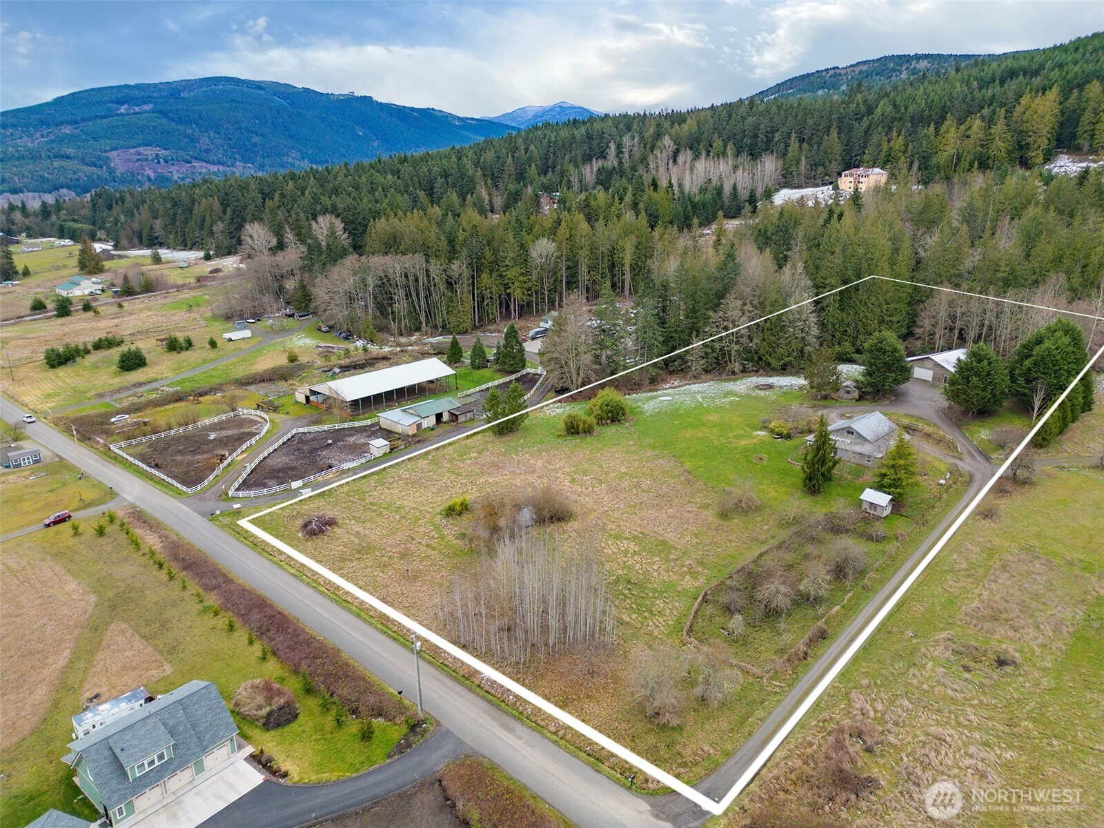Set on just shy of 5 serene acres, this inviting home captures sweeping views of the Strait of Juan de Fuca and Mt. Baker, offering the quintessential lifestyle buyers seek. Perfectly positioned between Sequim and Port Angeles, it provides easy access to all the outdoor recreation, trails, and coastal beauty the region is known for.Inside, vaulted ceilings and an open floor plan create a bright, airy living space anchored by a charming wood free-standing stove. The main level features three comfortable bedrooms, while the loft adds a flexible bonus area ideal for guests, an office, or creative studio. Large windows frame the surrounding landscape, bringing natural light and views into every corner.A spacious detached garage with a ¾ bath offers endless room for hobbies, projects, or storage. Additional outbuildings, RV/boat parking, and a well-established orchard with a chicken coop make the property feel like a private homestead. A small pond adds to the peaceful setting, creating a true retreat for nature lovers.Whether you're searching for homes with mountain views, a property with space to spread out, or proximity to the best of the Olympic Peninsula, this is a rare opportunity to own a slice of the Pacific Northwest lifestyle.