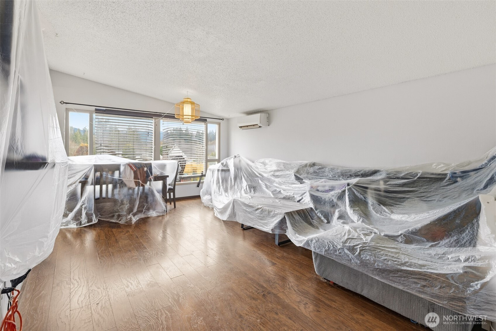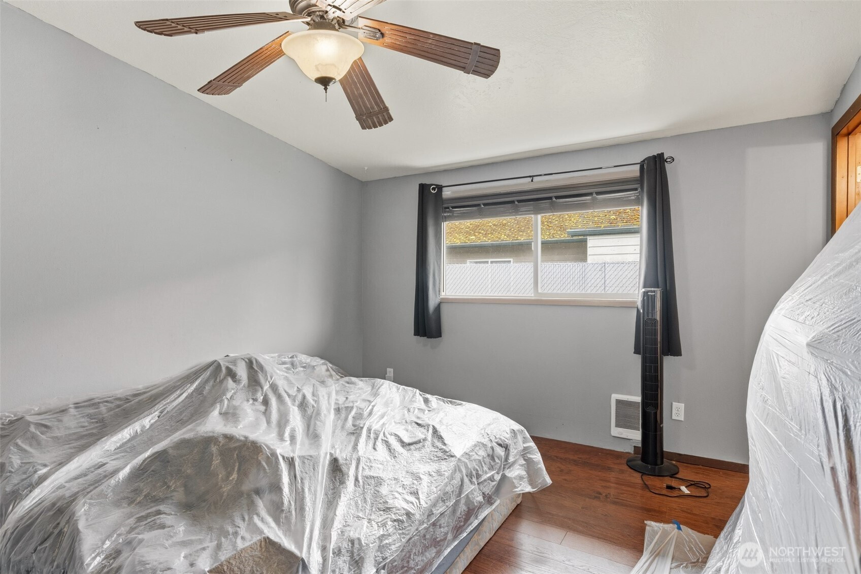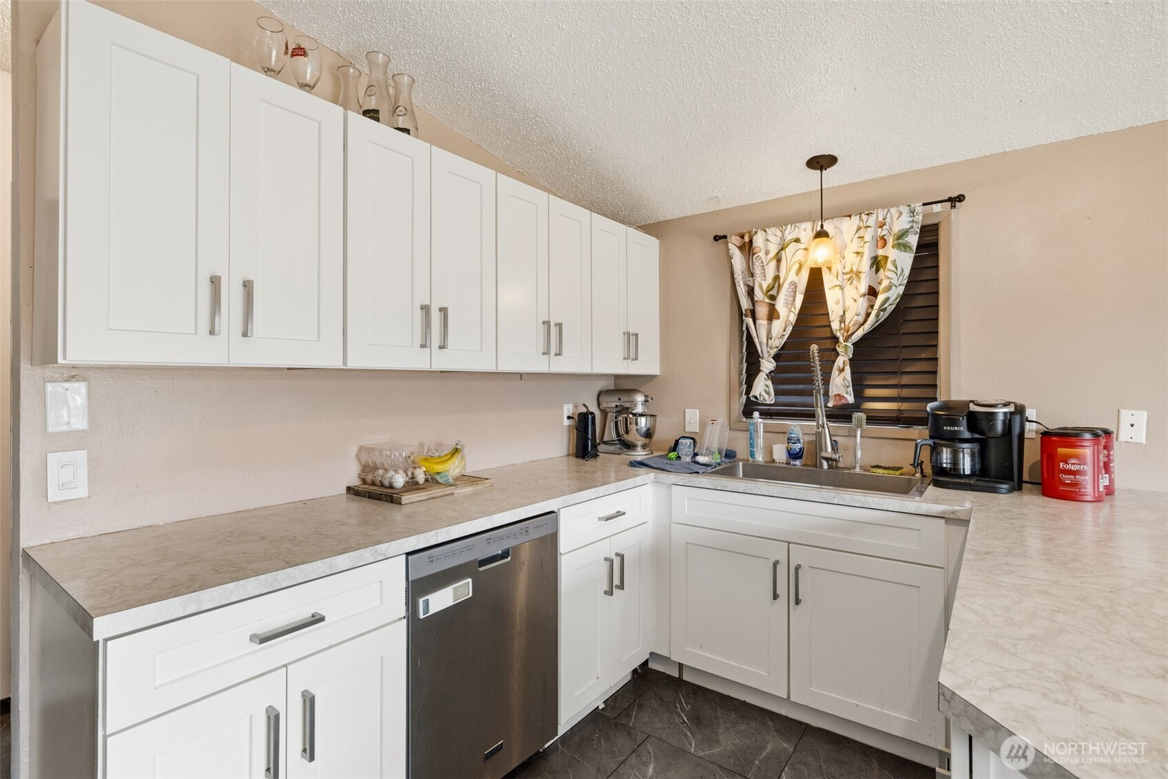 Tucked away on the quiet dead-end portion of West 13th, this mid-century inspired home offers a fantastic opportunity to build sweat equity in a solid, well-laid-out property. Concrete walkways lead to a fully fenced yard stretching from front to back, complete with gated alley access for added convenience. Inside, vaulted ceilings and a wood accent wall create an open, character-filled living space. The kitchen has already been thoughtfully updated with modern cabinetry, countertops, and tile flooring, and features a peninsula for casual seating along with a dining area that opens to the front deck through a sliding door. The flexible floor plan includes three bedrooms and one and a half baths, with the primary bedroom offering convenient Jack-and-Jill access to the half bath and nearby laundry area. A shared full bathroom serves the additional bedrooms. At the back of the home, a spacious rec room with fireplace opens to a concrete patio through another sliding door, perfect for indoor-outdoor living and easily adaptable as a fourth bedroom, guest space, or bonus room. Two ductless heat pumps provide efficiency from either end of the house, and vinyl windows are already in place. An attached one-car garage, fenced yard, and classic mid-century lines round out the property. With strong bones, a great layout, and several key updates already completed, this home is ready for someone to bring their vision and make it shine.
