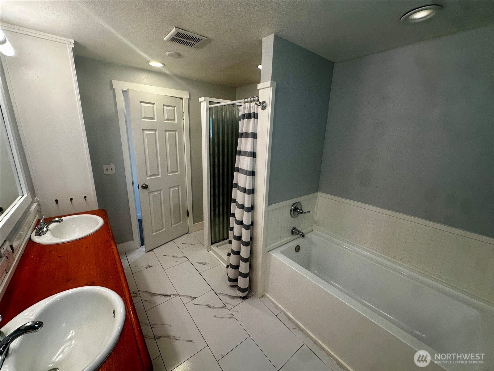 Charming Sequim Home with Modern Updates & Walkable Location Don’t let the size fool you—this beautifully updated 1,037 sq ft home offers an open, airy feel that lives larger than expected. Ideally located just steps from downtown Sequim, you’ll enjoy easy access to schools, parks, playgrounds, and dining. Inside, bamboo flooring (new 2020) flows through the main living spaces, complemented by updated baseboards and trim. The kitchen features concrete countertops, stainless range/oven and microwave, white refrigerator, and a unique antique wood cabinet sourced from a large ship—adding distinctive character. Major updates include new plumbing in the kitchen and bathroom (2023), new appliances (2023), new hot water heater, washer and dryer (2022), plus brand-new doors and interior paint (2026). Roof has been recently cleaned and gutters serviced making this home truly move-in ready. The spacious bathroom offers tiled flooring, dual sinks, a separate shower, full bathtub, and built-in shelving. Additional features include a single-car garage with laundry and hot water heater, plus extra off-street parking from the rear alley. Move-in ready with modern updates, charm, and a prime location.