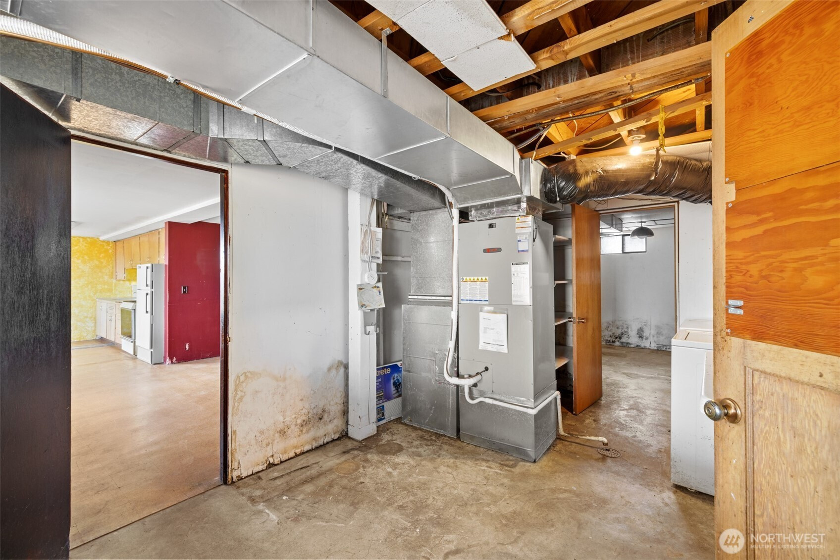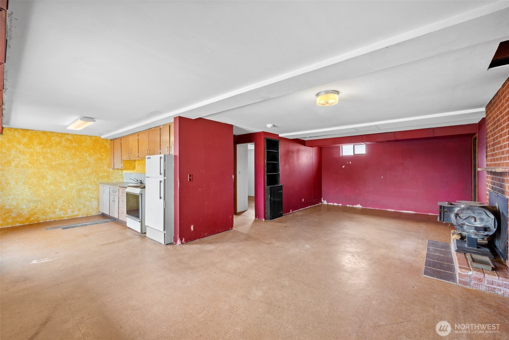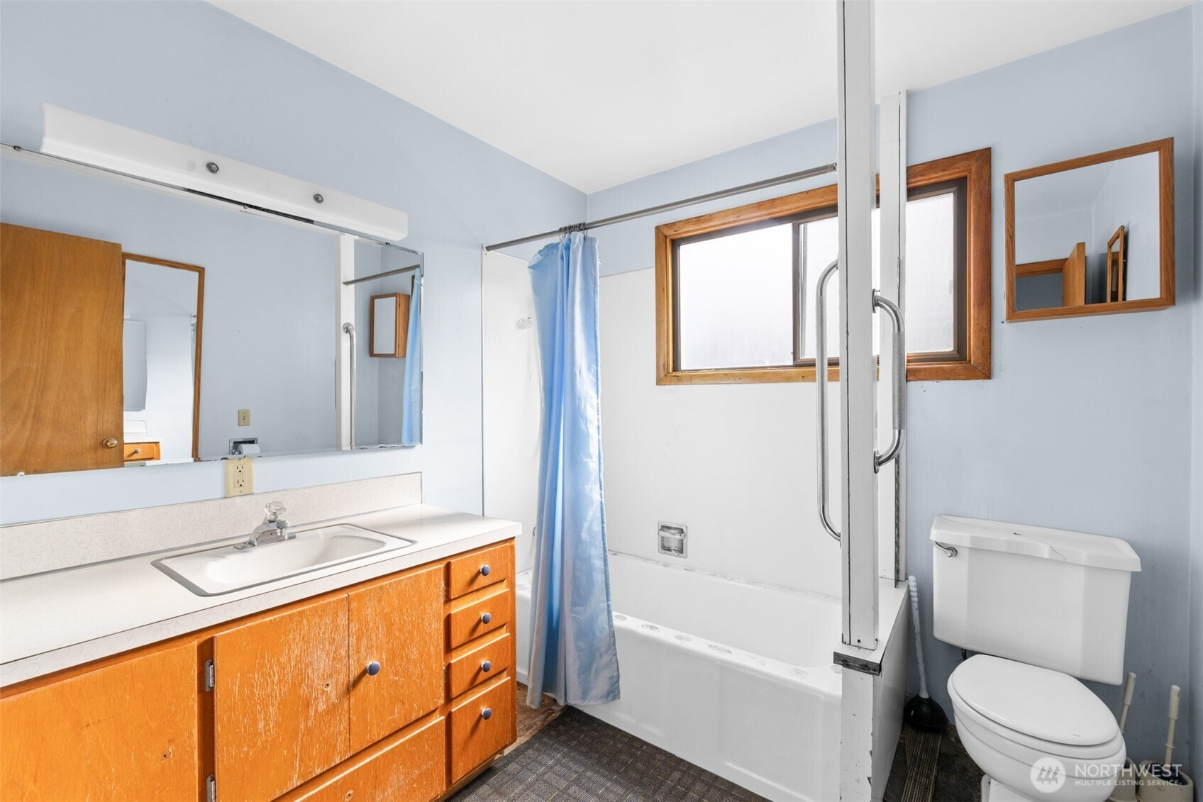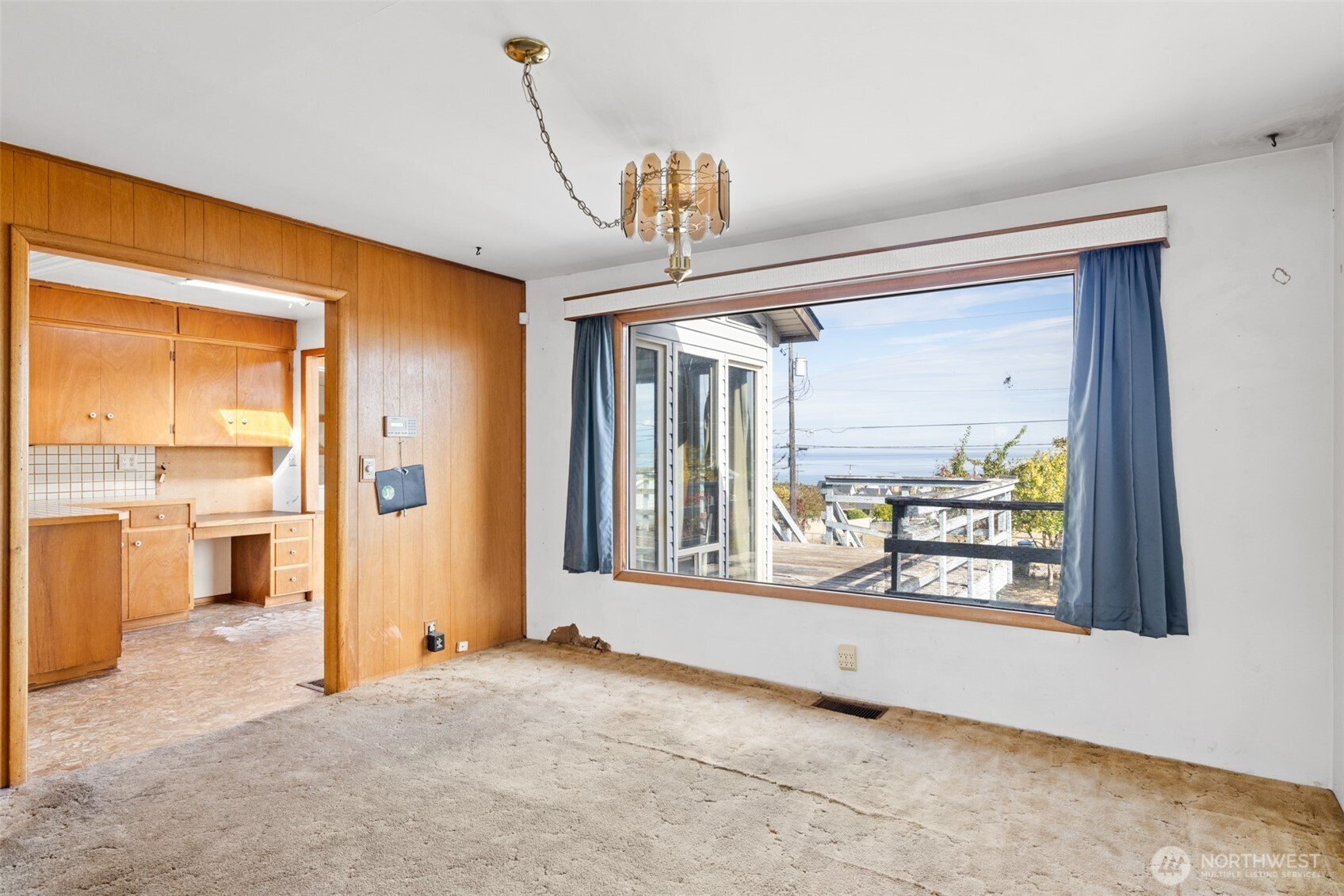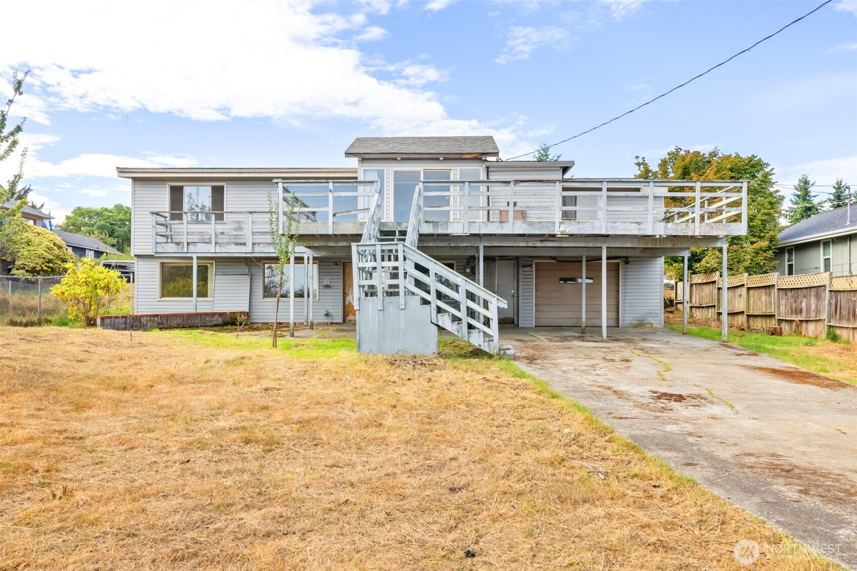 Two kitchens, two laundry rooms & a water view! Bring some tools & TLC to update this home that’s perfect for flexible living or work from home. Lower level is bright, open, with woodstove, kitchen, BR, bath, separate entrance & storage galore. Main level has mid-century fireplace, Beds & Baths at each end of the house. Former garage is workshop or storage area. So much potential, so much living space, plus apple trees & fenced yard. One of a kind fixer upper – ready to become a dream home.