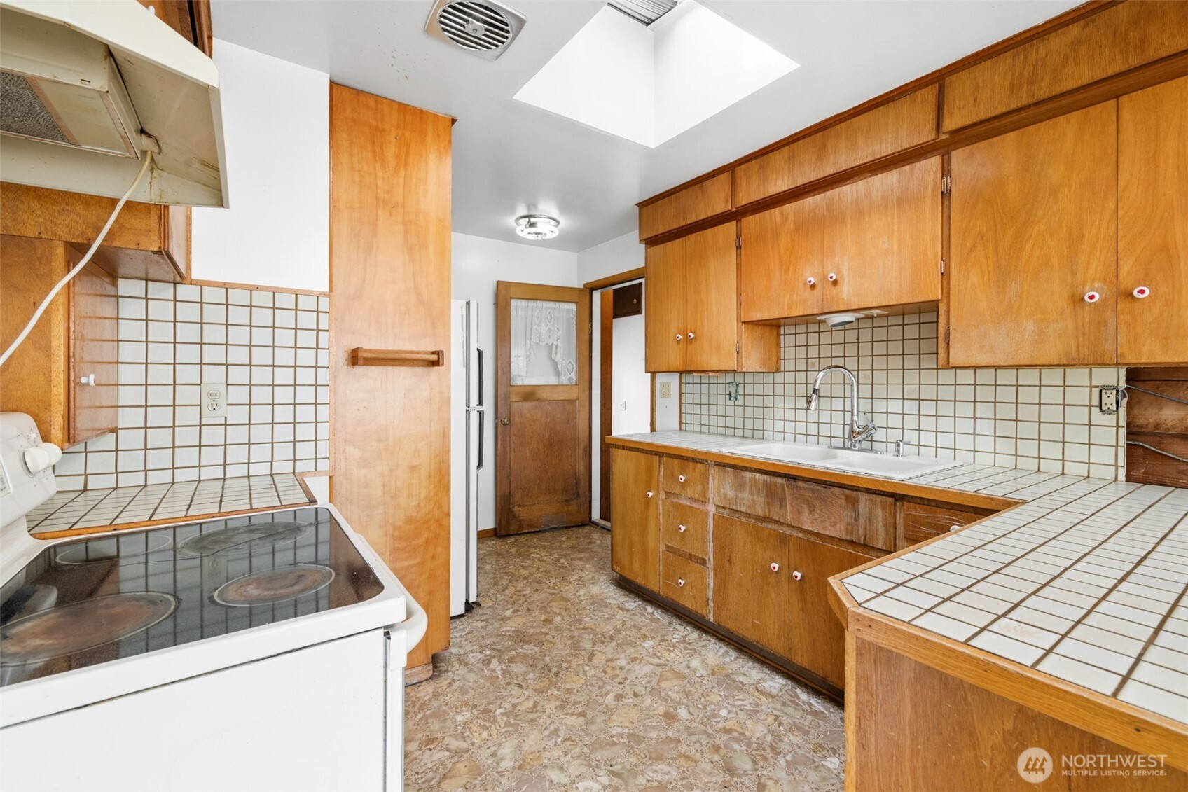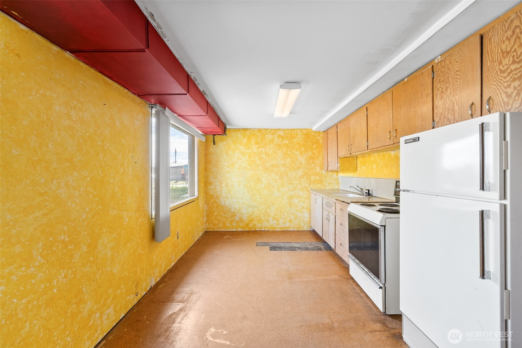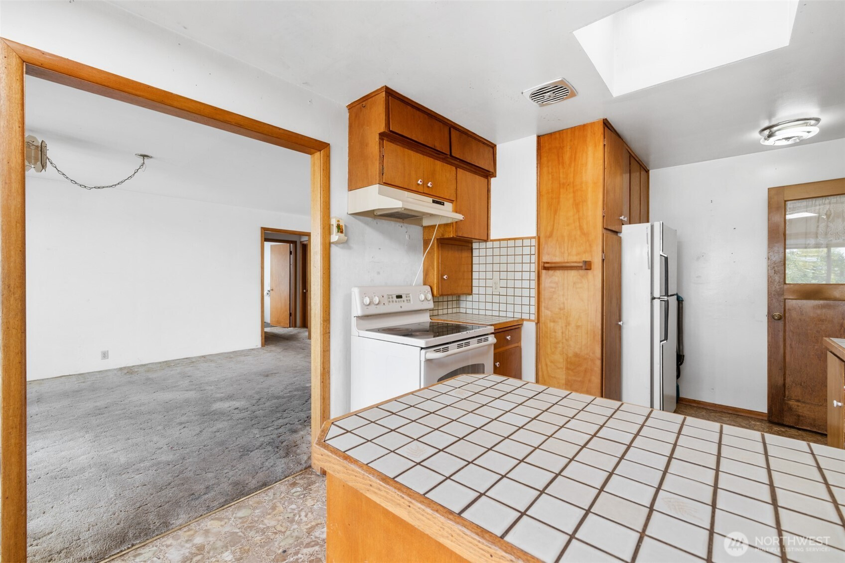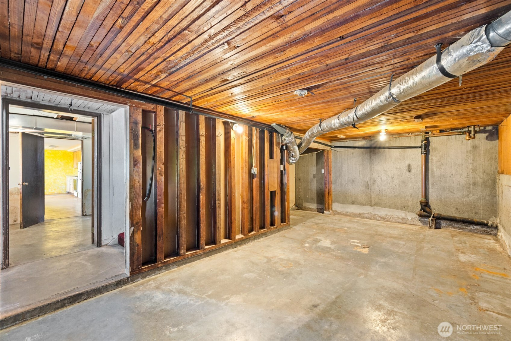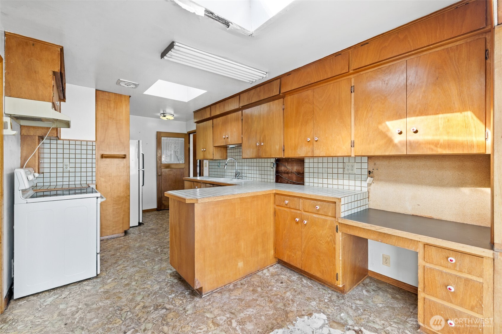 Two kitchens, two laundry rooms & a water view! Bring some tools & TLC to update this home that’s perfect for flexible living or work from home. Lower level is bright, open, with woodstove, kitchen, BR, bath, separate entrance & storage galore. Main level has mid-century fireplace, Beds & Baths at each end of the house. Former garage is workshop or storage area. So much potential, so much living space, plus apple trees & fenced yard. One of a kind fixer upper – ready to become a dream home.