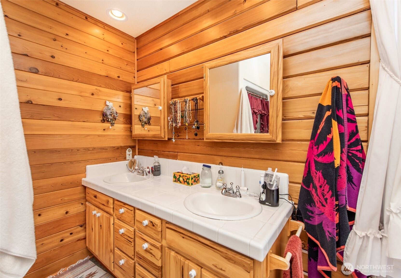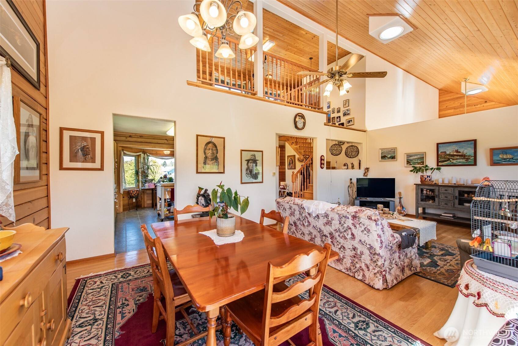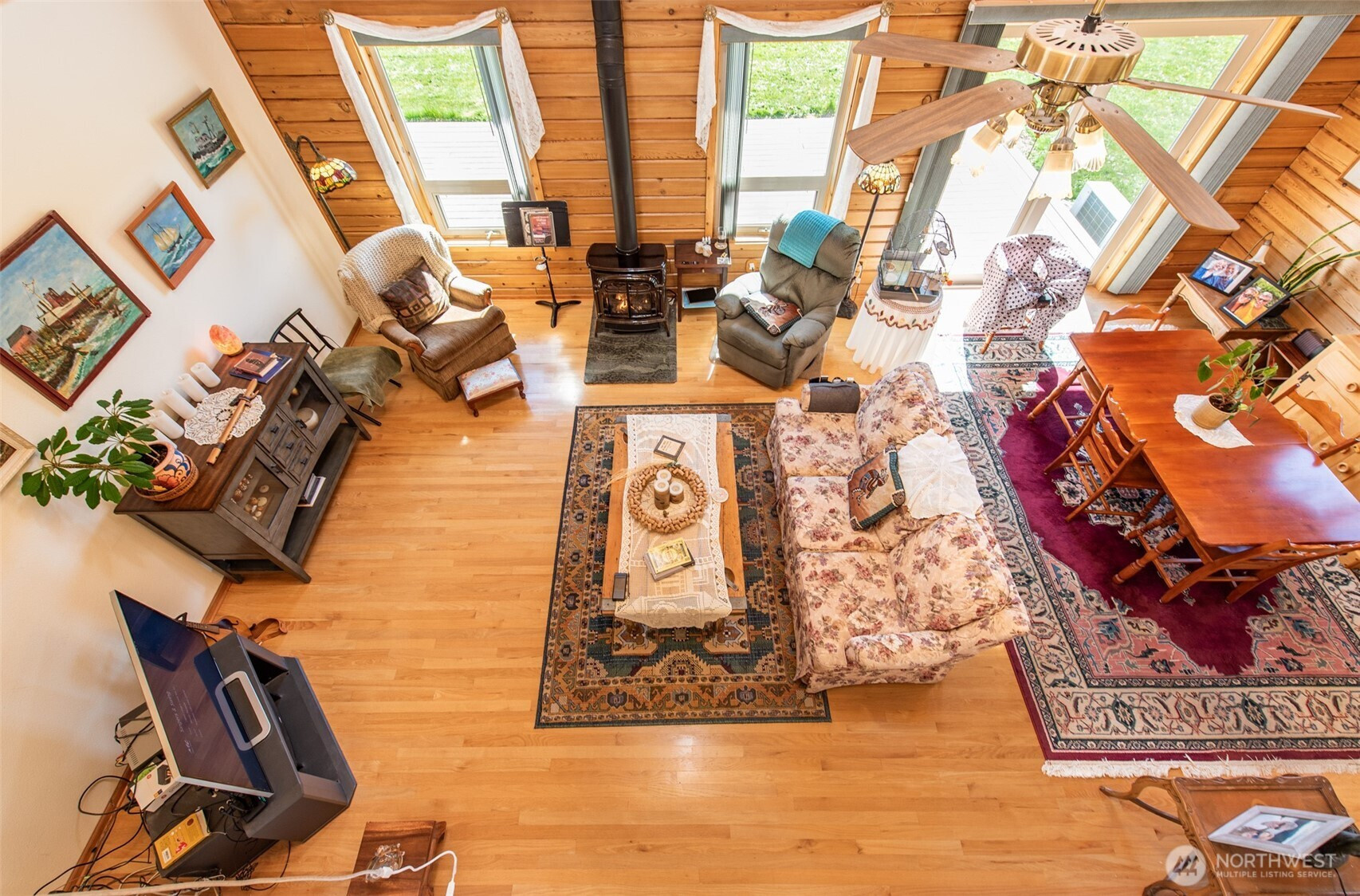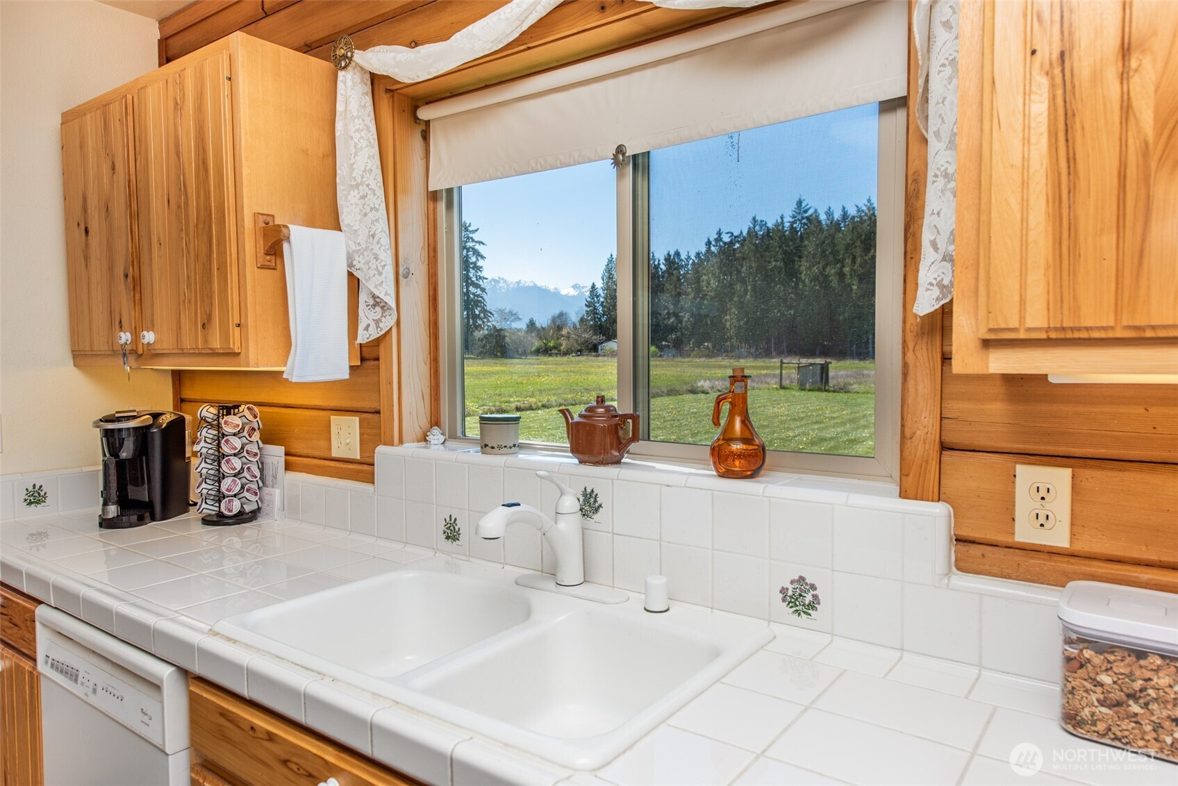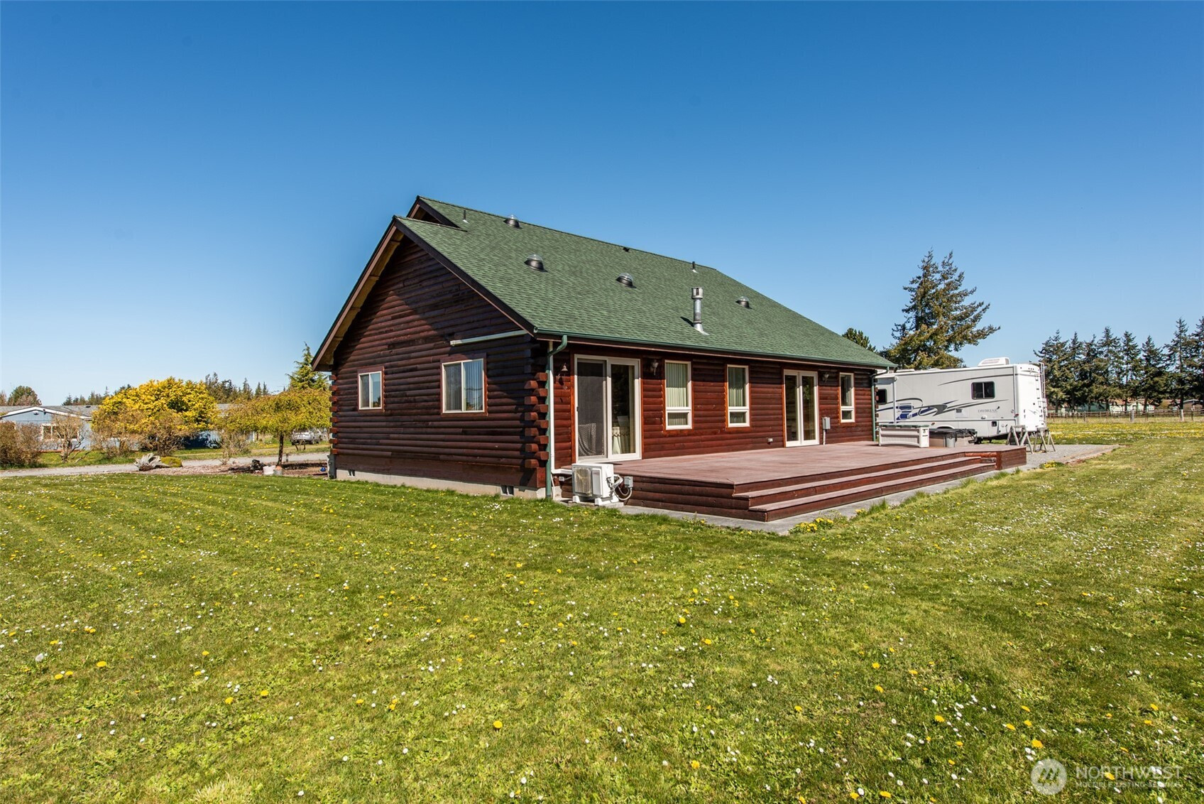 Beautifully maintained one-owner residence on 1.25 acres, showcasing mountain views and the natural beauty of the Olympic Mountain Range. Freshly stained and treated Yada log siding with a new roof! This 3-bedroom, 2.5-bath home offers 1,822 sq ft of refined living space with a thoughtful, functional layout designed for comfort and livability. Rich red oak hardwood floors and tile run throughout, enhanced by abundant natural light from three solar tubes and southern exposure. The inviting living space features a propane fireplace and ductless heat pump, providing efficient year-round comfort. The primary suite serves as a retreat, complete with a soaking tub, double vanity, walk-in shower, spacious walk-in closet and built-in bookshelves. Outdoor living is elevated with a newer hot tub and expanded Trex deck—ideal for relaxing or entertaining while taking in the serene surroundings and fresh Olympic Peninsula air. Attached 2-car garage plus a detached garage and two storage sheds offers exceptional space for hobbies, equipment and flexibility. Plenty of room for RV/boat parking. A rare opportunity to enjoy privacy, comfort, and Northwest living in a well-cared-for home surrounded by the natural beauty and recreational lifestyle of the Olympic Peninsula.