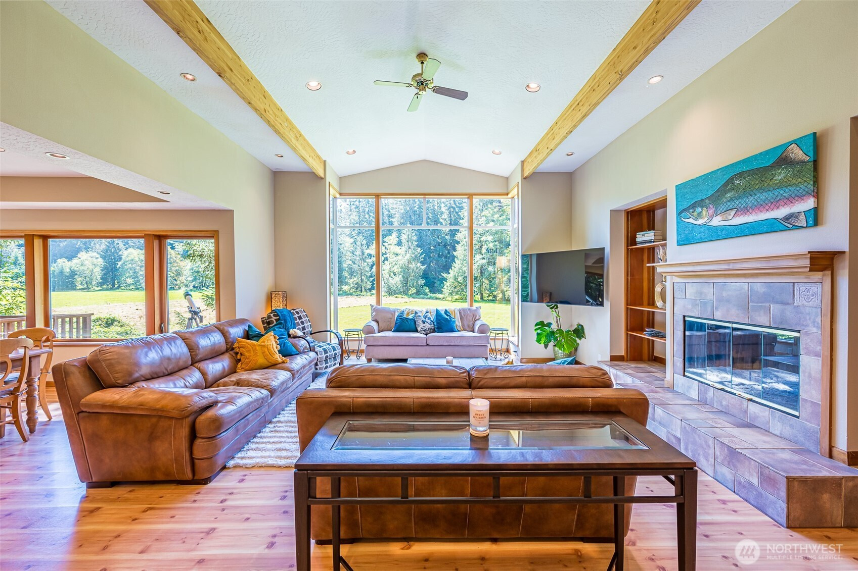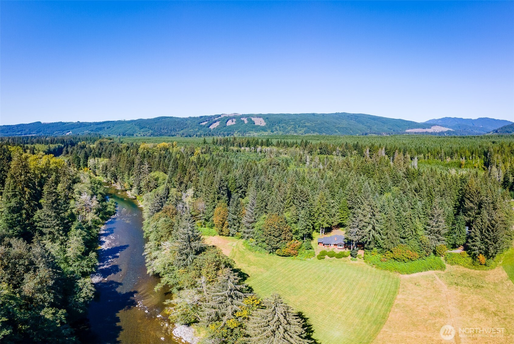 With vaulted ceilings and expansive windows overlooking your own private meadow along the Solduc River, this custom North West contemporary home on 10 acres, offers the utmost in craftsmanship & quality! Beautiful living room offers vaulted ceilings and a wall of floor to ceiling windows to enjoy the nature all around. Open concept layout to the dining area and eat in kitchen with . The primary bedroom is a dream with tons of natural light, built in woodwork, a walk in closet and full bathroom. Detached 3 car garage gives plenty of space for cars or toys and the surrounding timber gives privacy to enjoy and easy landscaping options. Nature lovers, fly-fishing enthusiasts and those seeking a serene retreat will marvel at soaring bald eagles, Roosevelt Elk grazing in the meadow below, and world-class fly fishing from the banks of the river flowing by the property. This home offers a short drive to local beaches, Lake Crescent, Solduc Hot Springs and the Olympic National Park!