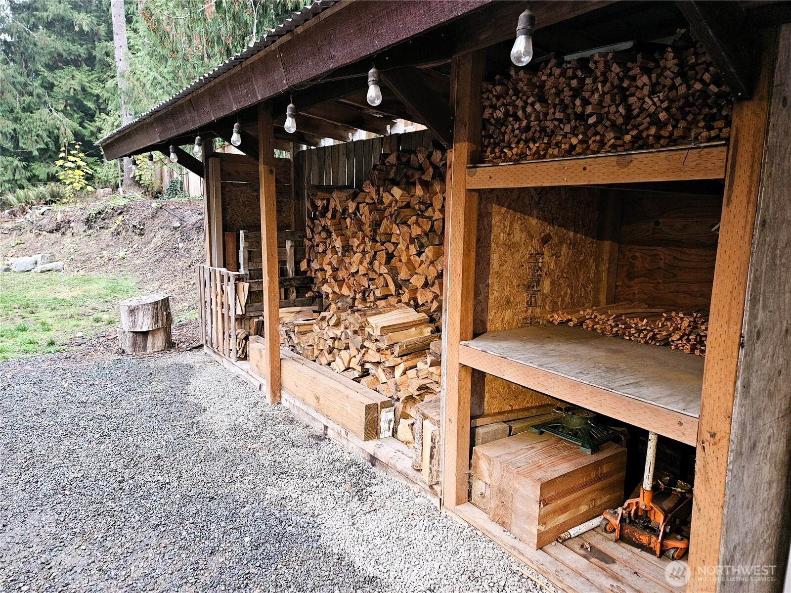 Charming home on almost a half acre. Fully fenced and conveniently located between Sequim & Port Angeles in the Deer Park area. Featuring a brand new roof w/30 year warranty & a new woodstove. Ductless heatpump provides efficient heat & A/C. Live edge wood & metal accents, main level bedroom and full bath. Private primary suite skylight and oversized half bath upstairs. Covered wood storage behind the house as well as 2 storage sheds providing ample space for tools, yard equipment and more. Fully enclosed chicken run and coop with easy, no-enter feeding system and egg collection. Level space for gardening and gathering around the firepit. Nestled between several Pacific Northwest copses, this home is a serene retreat for every day living.