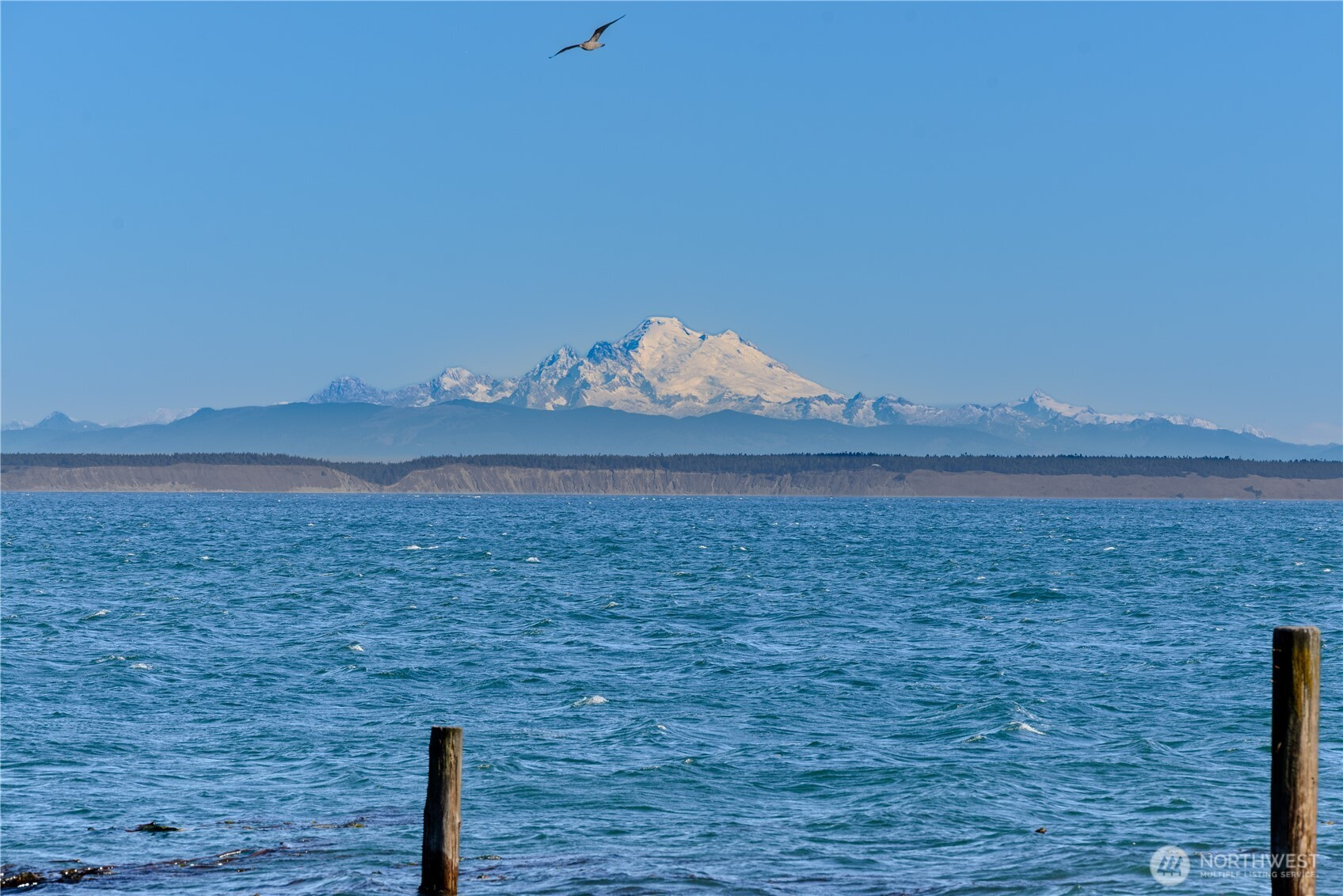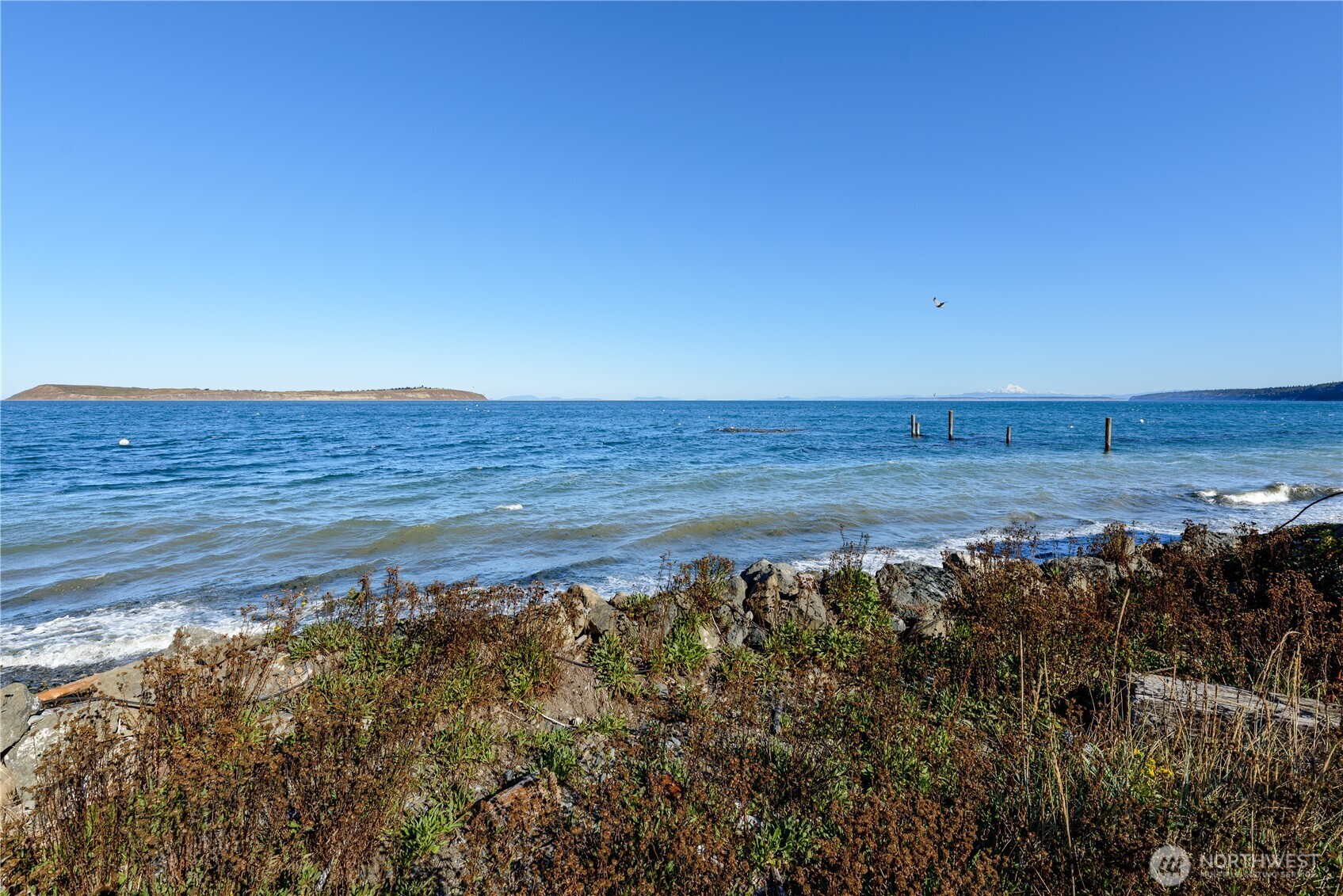 Own your own beach! This rare, no-bank waterfront home on the Strait of Juan de Fuca is move-in ready and features spectacular, panoramic views of the Strait, Protection Island, Mount Baker, and the shipping lanes from nearly every room. A recent investment was made into an engineered and permitted bulkhead for longevity and peace of mind. The freshly painted, 2-bed/2-bath contemporary boasts custom touches include Corian counters, a heat pump, and all appliances. The luxurious primary suite is a true retreat, offering a sitting area, a large ensuite bath, and a private balcony. Multiple expansive decks for watching marine wildlife and passing ships. You can't overstate just how therapeutic the sound of lapping waves is for your mind and spirit. Tie your boat right out front with the included mooring buoy and small boat ramp. A bigger boat launch for the neighborhood is a few hundred feet away. Situated near beautiful Miller State Park, offering miles of hiking and bike trails. Come see this special home set right on your own beach.