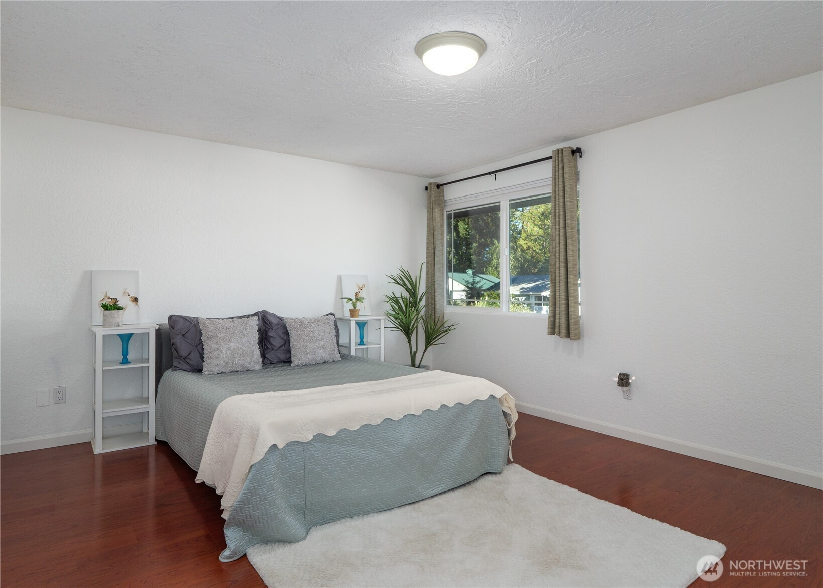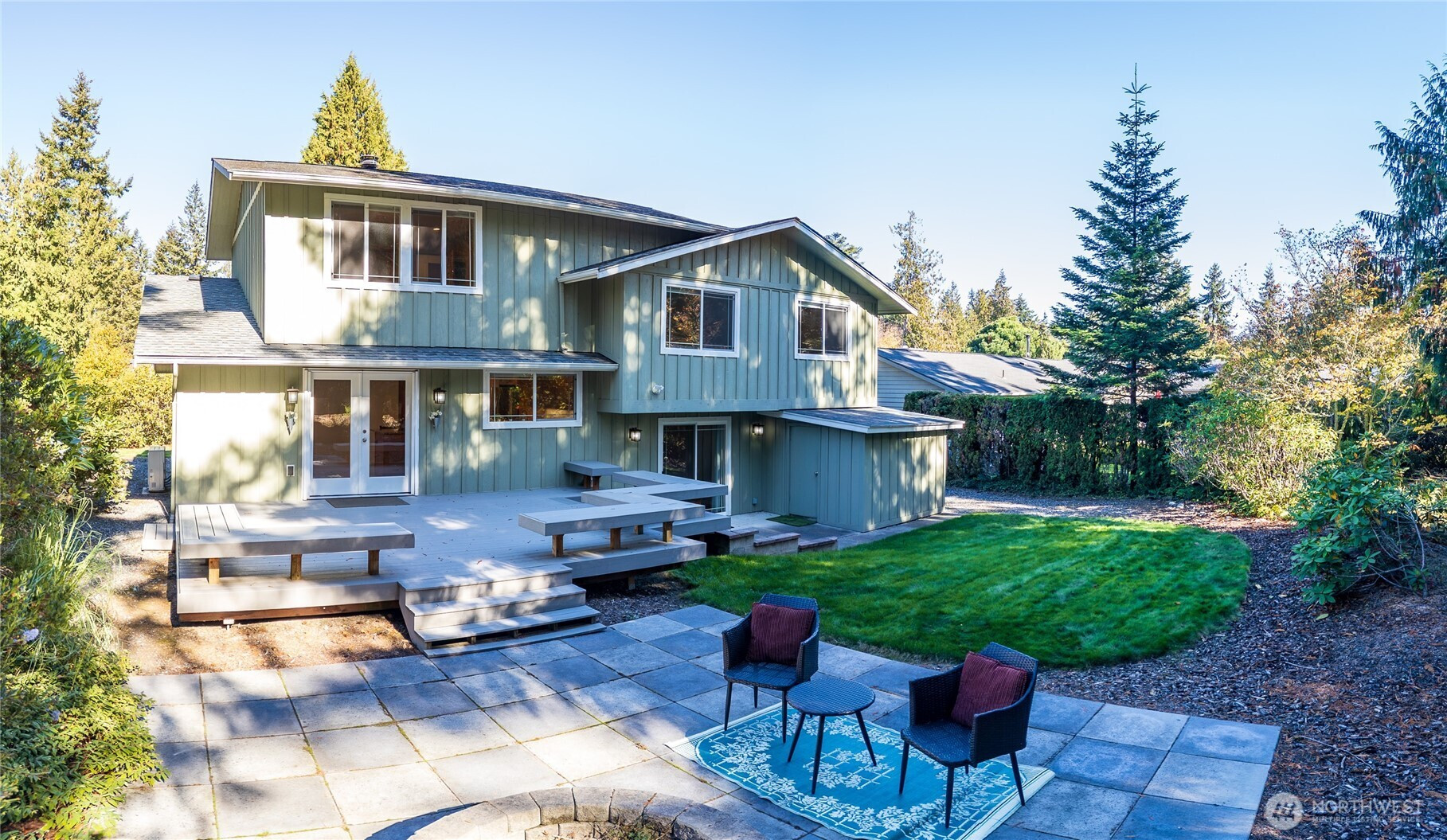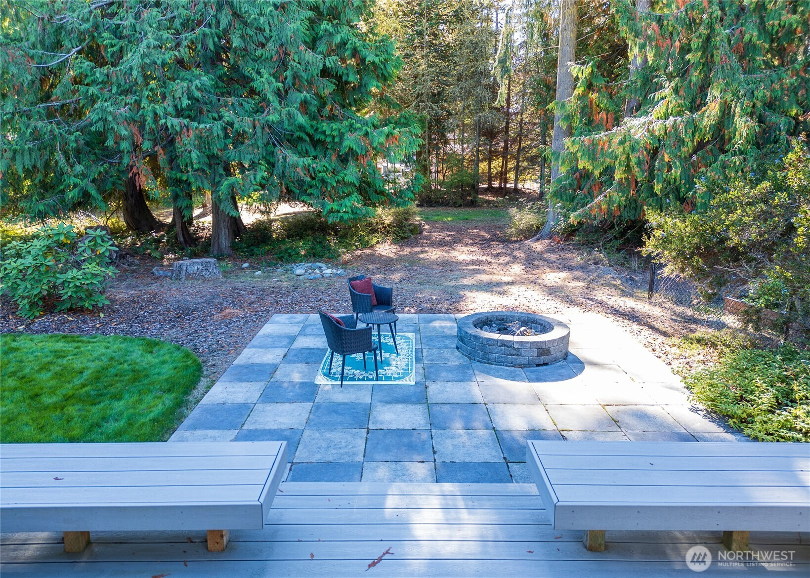 Tucked among the trees ! Spacious 2,512 square ft. multi-level home in Sequim’s Sunland community. 4 bedrooms, 3.5 baths, and a versatile layout. Open kitchen with granite counters, stainless appliances, and custom cabinetry. 2 main-floor living areas include wood-burning fireplace and access to the backyard deck. Upstairs find 3 bedrooms—one with an ensuite and heated floors—plus a full hall bath. Private primary suite occupies the top floor with a walk-in closet, double vanity, heated floors, and tiled shower. Bonus space off the two-car garage makes an ideal spot for gym or media room. Additional features include hardwood flooring, heat pump, and storage. Ample parking.Low-maintenance backyard with large deck, wood fire pit and privacy.