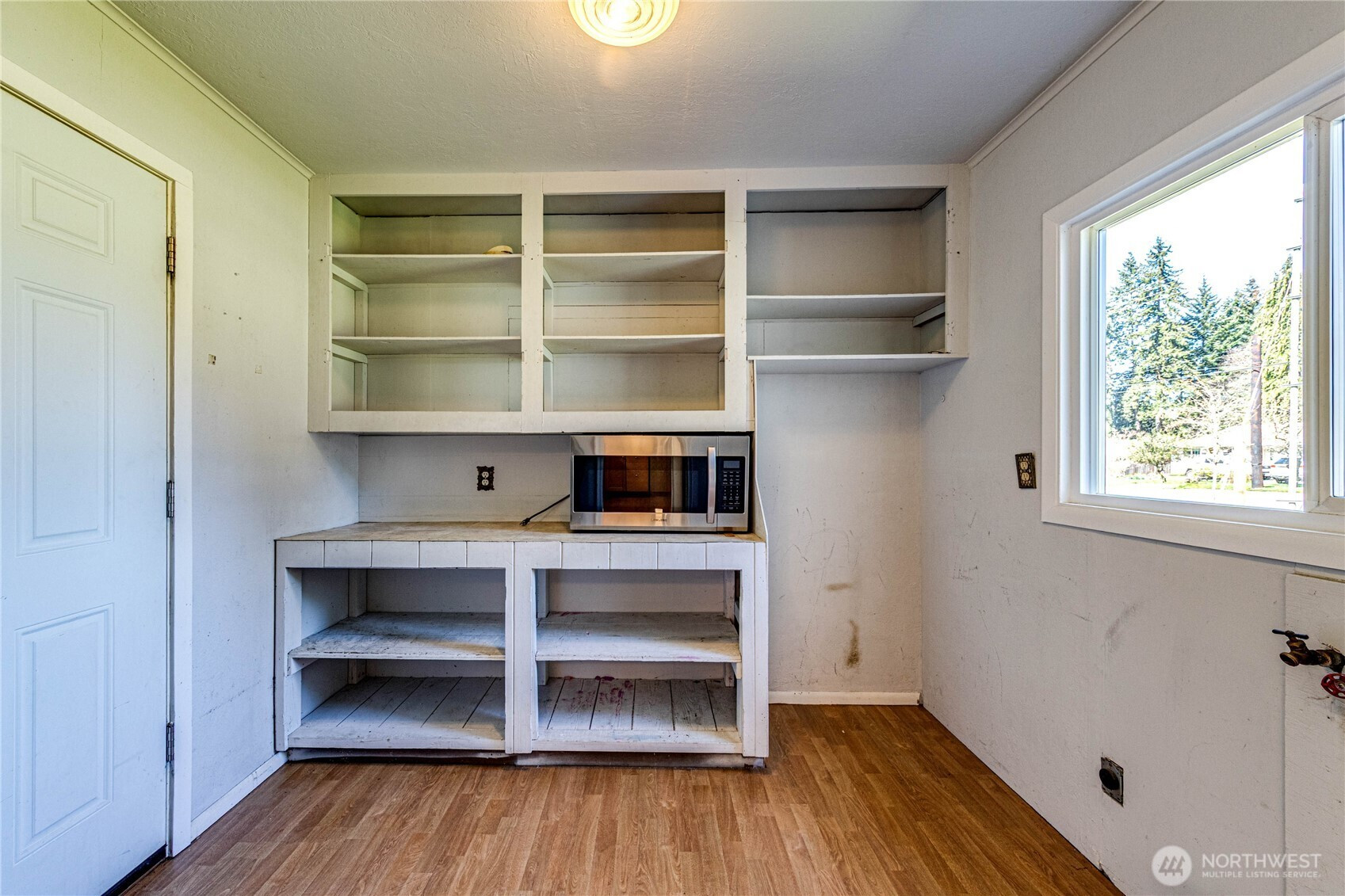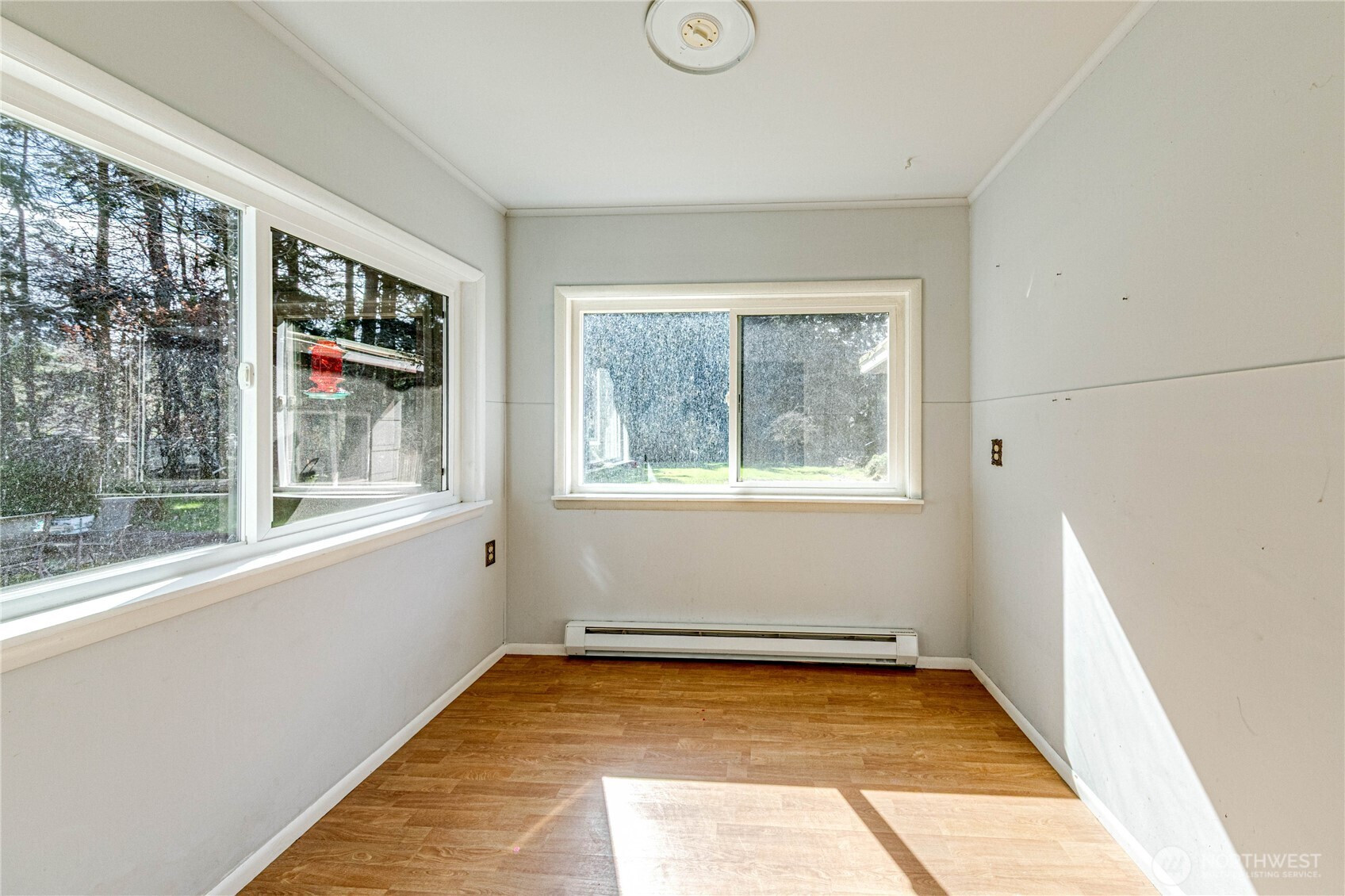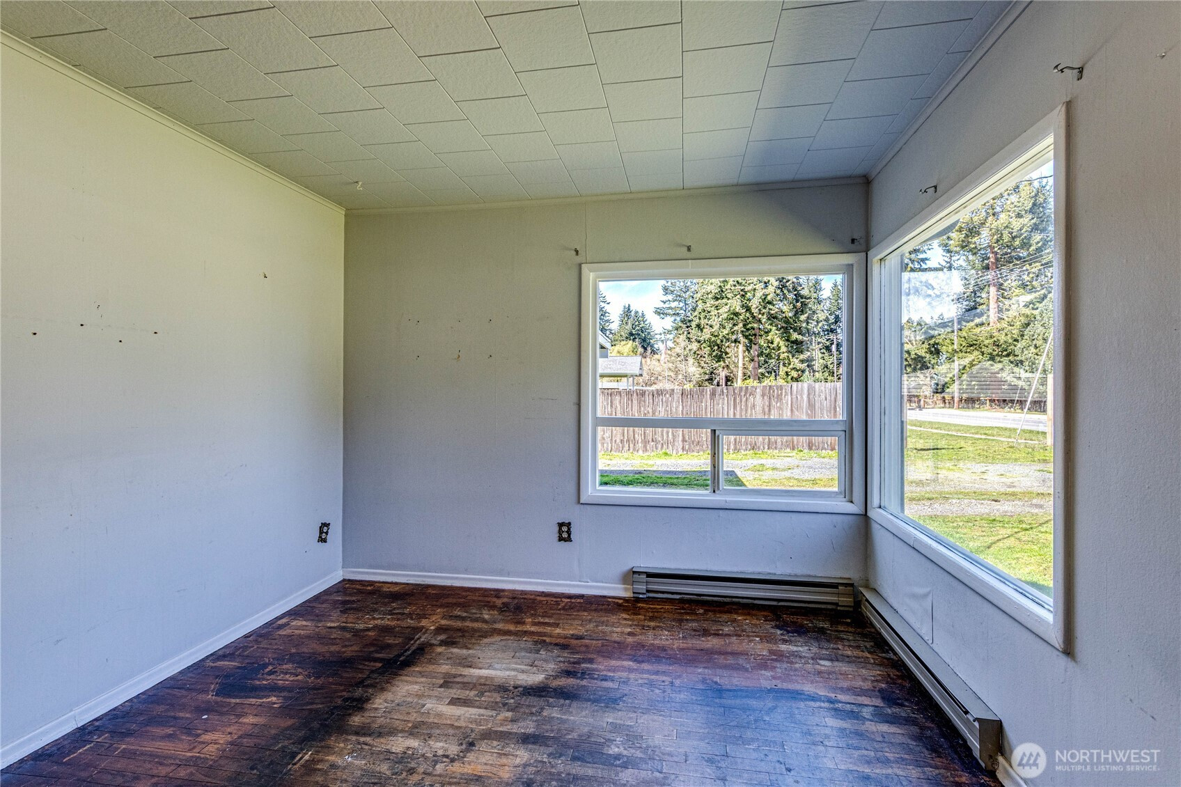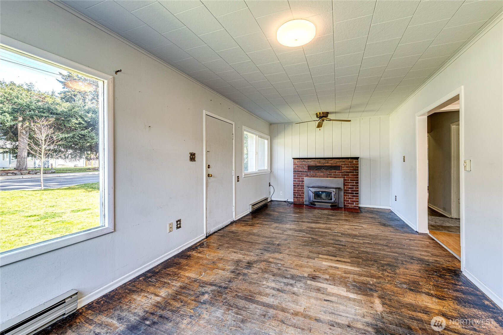 Charming home on just shy of one acre inside the city limits! This 2-bedroom, 1 bath home has LOADS of potential! Original hardwood floors anda cozy wood stove in the living room. Updated kitchen with a separate sunny dining nook, a large utility room, with walk in storage, pantry andlaundry. Don't miss the bonus room, perfect for an office, studio, game or craft room. Recent improvements include a new septic system anddrain field (2022), new exterior paint, new kitchen sink, and bathroom cabinet. The fully rebuilt bonus room features all-new flooring, electrical,internet, drywall, and windows, creating a versatile, move-in-ready space. The property backs to a greenbelt for added privacy, with ample roomto build a shop, garden, or park your toys. A rare opportunity for an extra large lot and close-to-town convenience.