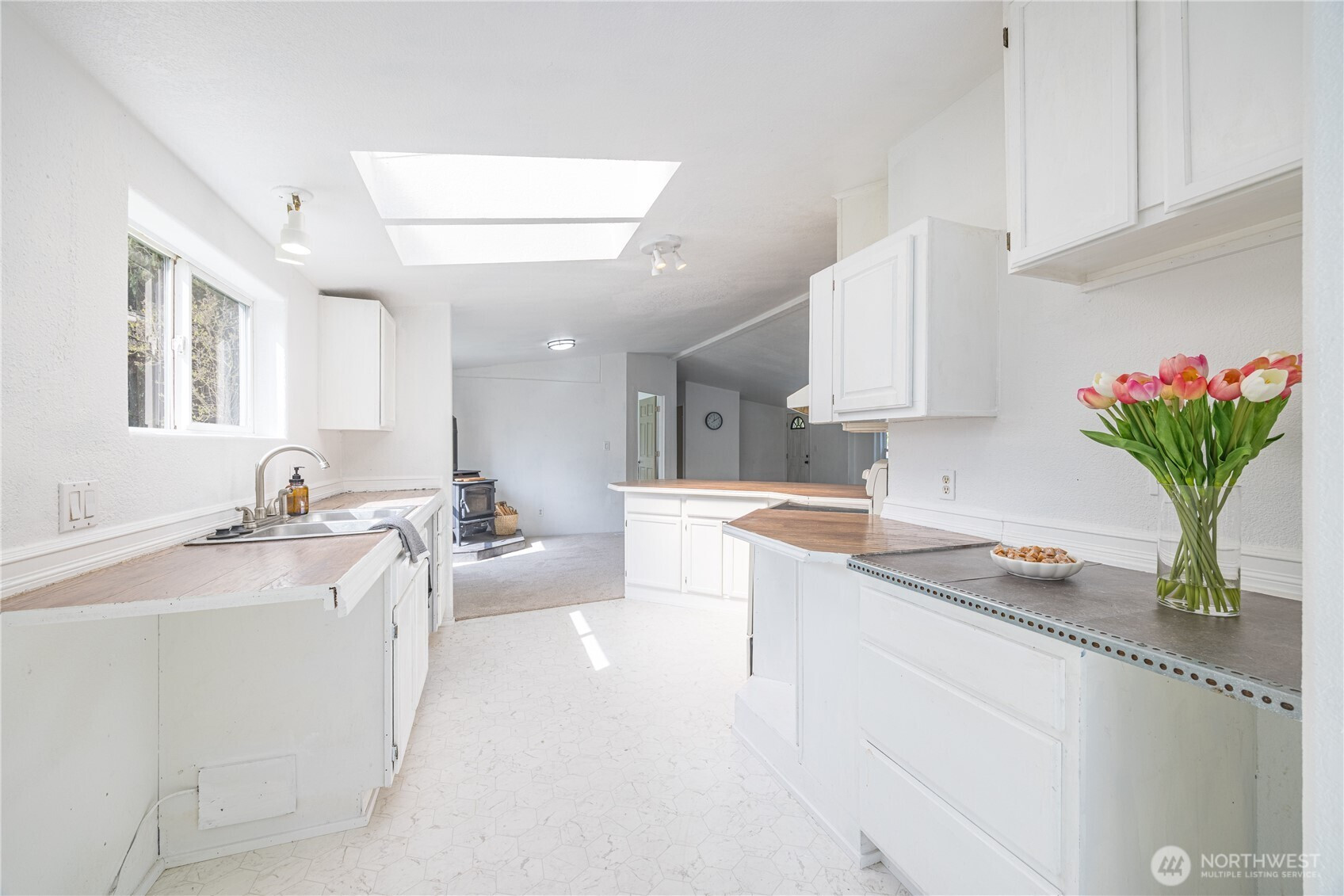 Tucked between Sequim and Port Angeles, this inviting property offers the perfect blend of country privacy and close-to-town convenience. Set on just over an acre of lightly wooded land, the home is surrounded by evergreens for seclusion while the cleared area around the house allows abundant natural light to pour through the many windows and skylights.Inside, the home feels warm and bright with a free-standing wood stove, vaulted ceilings, and an easy, comfortable layout. The kitchen and living spaces flow naturally, and the home includes 3 bedrooms and 2 full baths, ideal for anyone seeking a peaceful house with room to spread out. A spacious laundry/back room provides excellent flexibility for pantry storage or a mudroom.Outdoors, the acreage is well-suited for a small hobby farm with multiple outbuildings and a charming cabin that can serve as a studio, guest space, or workshop. Whether you're searching for homes with privacy, room for animals, or simply a quiet retreat near town, this is a rare opportunity in the Port Angeles real estate market.
