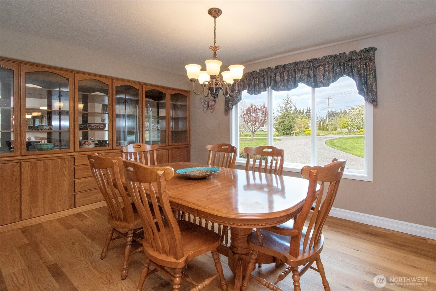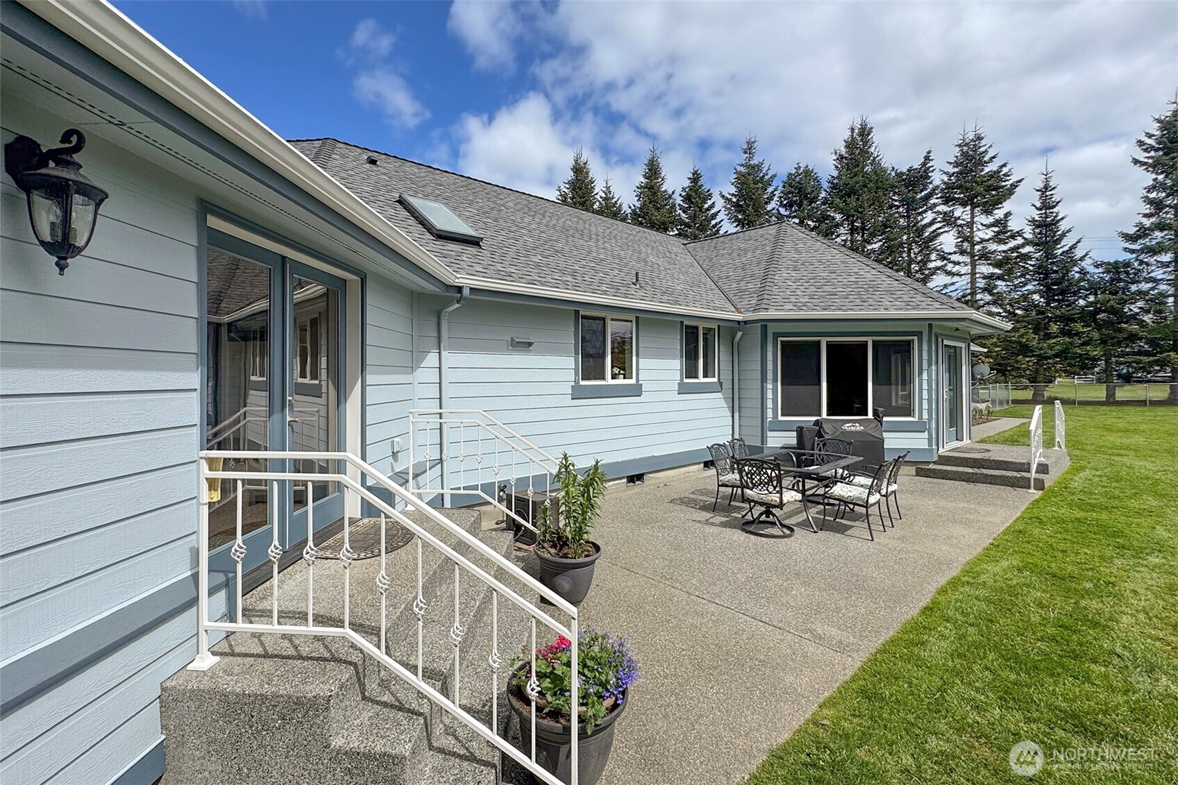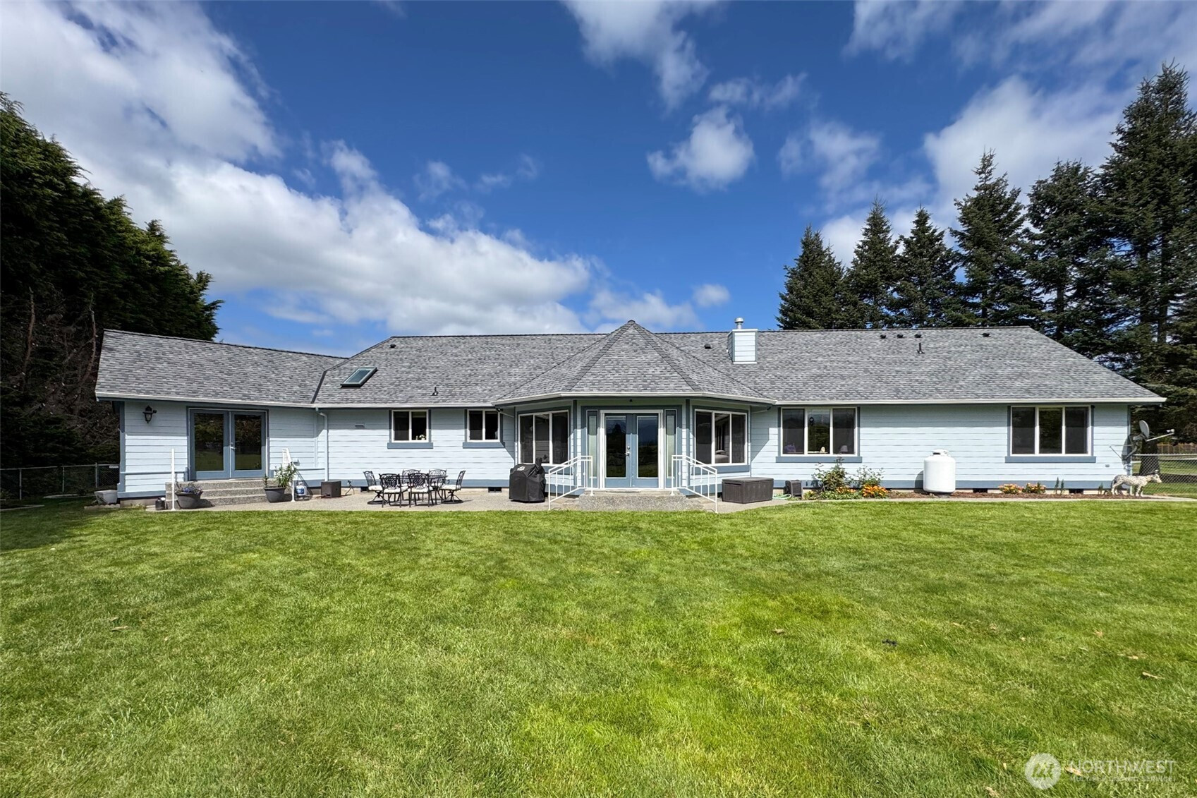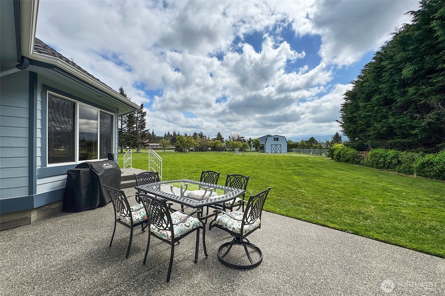 Welcome to this beautiful, custom single-level home set on 1.02 acres in one of Sequim’s sought-after neighborhoods. Meticulously maintained, 3042 sq ft home shines with over $100K in recent upgrades, including a new roof, HVAC system, exterior paint & stylishly updated bathrooms. Truly move-in ready. The great room offers expansive mountain views & features a cozy propane fireplace. The chef’s kitchen is designed with generous counter space, quality cabinetry with pull-out storage, double ovens & pantry, perfect for everyday living & entertaining alike. The spacious dining area has a large, built-in display cabinet. The primary suite is a serene retreat, positioned to capture stunning mountain views, appointed with a walk-in closet & a luxurious ensuite featuring Italian tile flooring, a soaking tub & a walk-in shower. Two bedrooms share a custom bathroom with a large stone walk-in shower. A versatile extension of the home offers a unique craft studio/office, a den & a custom bathroom with a stone walk-in shower. There is also a central vacuum system. You will enjoy the large patio & fenced backyard—perfect for outdoor dining, pets, or play. Enjoy gorgeous level yards, mature fruit trees, full sun for your garden & a sprinkler system. A shop with a finished loft provides space for hobbies & storage. The oversized, attached garage & RV parking provide convenience & flexibility. Located minutes to town, golf courses, Discovery Trail & other amenities. No HOA.