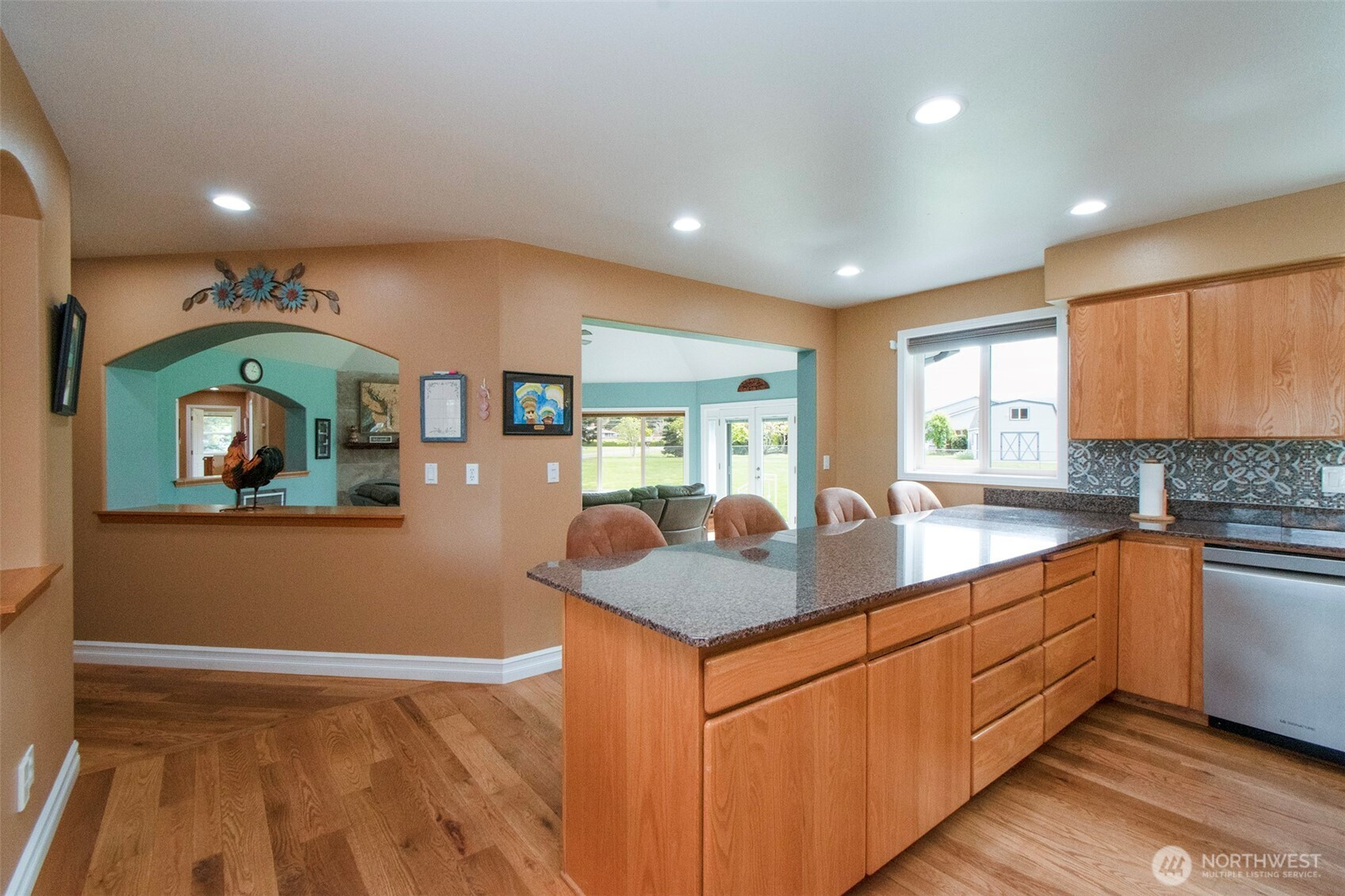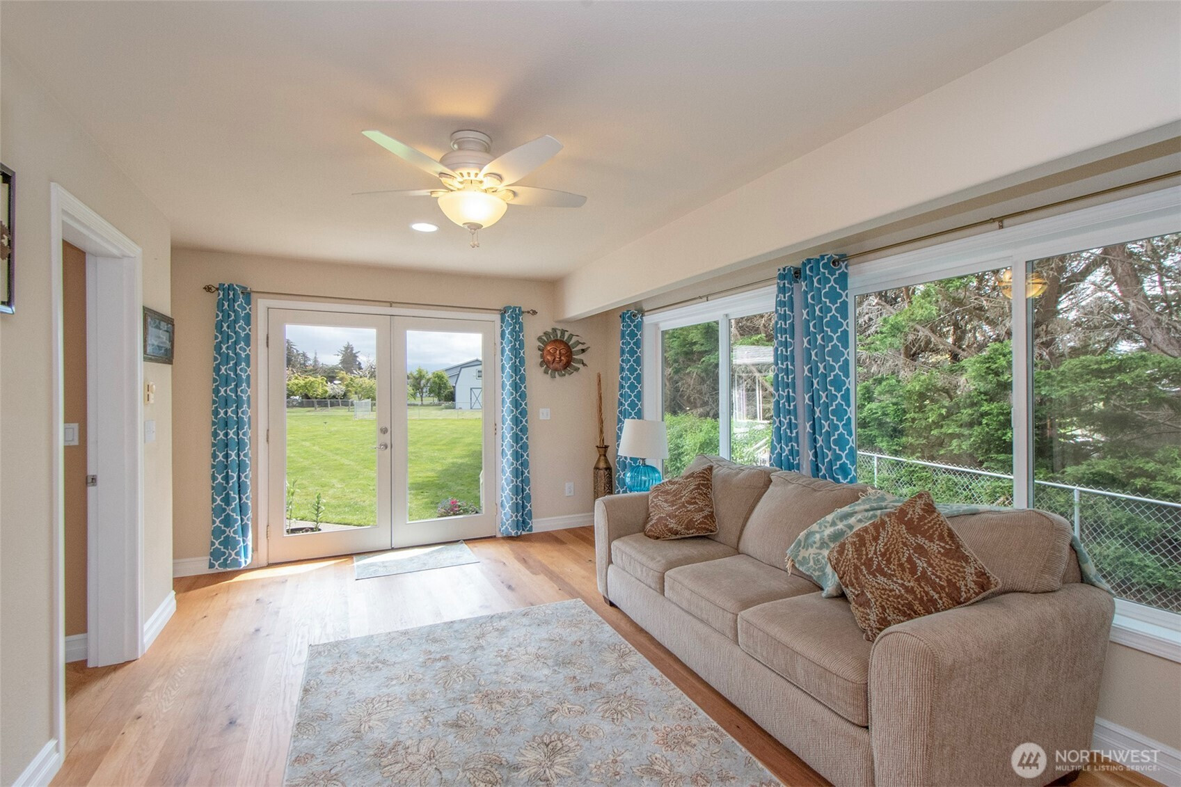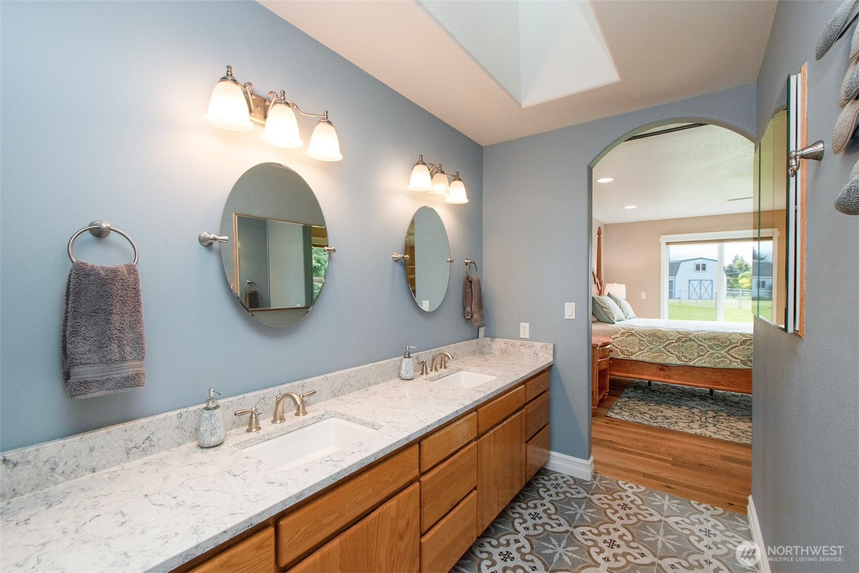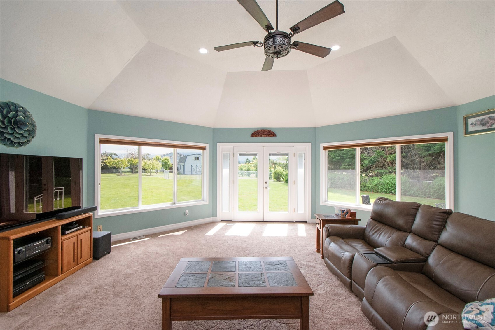 Welcome to this beautiful, custom single-level home set on 1.02 acres in one of Sequim’s sought-after neighborhoods. Meticulously maintained, 3042 sq ft home shines with over $100K in recent upgrades, including a new roof, HVAC system, exterior paint & stylishly updated bathrooms. Truly move-in ready. The great room offers expansive mountain views & features a cozy propane fireplace. The chef’s kitchen is designed with generous counter space, quality cabinetry with pull-out storage, double ovens & pantry, perfect for everyday living & entertaining alike. The spacious dining area has a large, built-in display cabinet. The primary suite is a serene retreat, positioned to capture stunning mountain views, appointed with a walk-in closet & a luxurious ensuite featuring Italian tile flooring, a soaking tub & a walk-in shower. Two bedrooms share a custom bathroom with a large stone walk-in shower. A versatile extension of the home offers a unique craft studio/office, a den & a custom bathroom with a stone walk-in shower. There is also a central vacuum system. You will enjoy the large patio & fenced backyard—perfect for outdoor dining, pets, or play. Enjoy gorgeous level yards, mature fruit trees, full sun for your garden & a sprinkler system. A shop with a finished loft provides space for hobbies & storage. The oversized, attached garage & RV parking provide convenience & flexibility. Located minutes to town, golf courses, Discovery Trail & other amenities. No HOA.