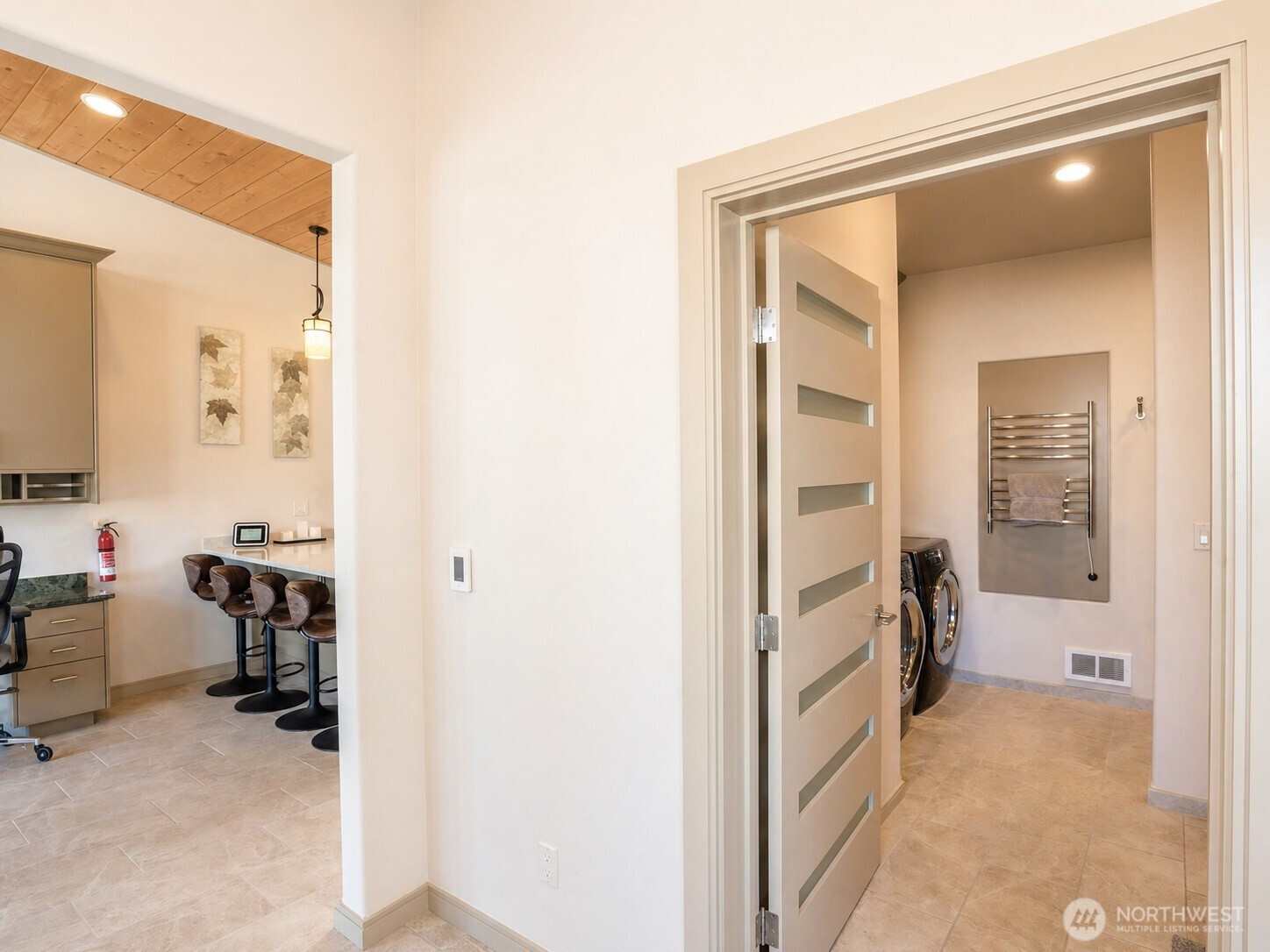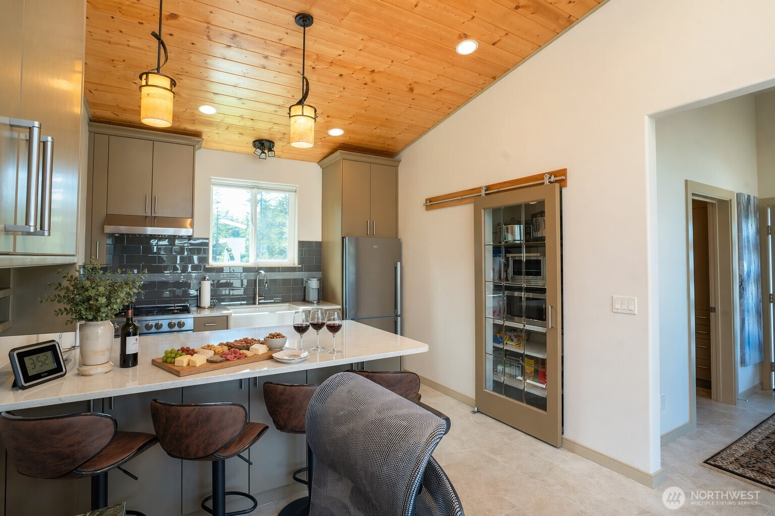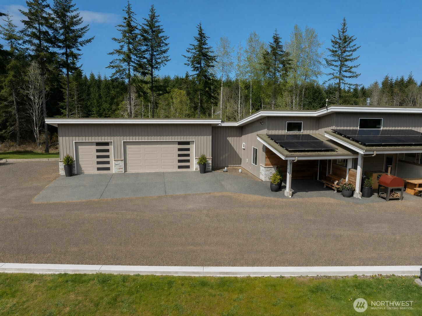 Custom craftsmanship & thoughtful design shine throughout this stunning 2 bed, 2.5 bath home on 7.25 private acres. Built in 2022, the 2,017sqft main home features radiant heated tile floors, granite countertops, & quality finishes throughout. Built w/ sustainability & efficiency in mind, this green-constructed home offers a thoughtful blend of durability & energy performance. A metal roof & integrated solar panel system reduces utility costs, while radiant heat provides consistent, efficient warmth. Designed for comfort & resilience & equipped w/ a whole-house generator for added peace of mind. Numerous energy-conscious finishes like triple pane windows & a Bosch on-demand water heater enhance efficiency w/o compromising quality or style. Connected to a 1,000-gal propane tank for year-round comfort/convenience. Additional features are a three-car attached garage, a covered outdoor dog washing station with hot/cold water & RV parking space with hook-ups. The beautifully crafted 800 sqft guest house is designed w/ the same quality & attention to detail. Vaulted ceilings w/ tongue-and-groove pine create an inviting atmosphere, while motorized blackout curtains provide comfort & privacy. A covered front porch extends the living space outdoors. Ideal for guests or potential income, this guest retreat is both functional & beautifully appointed. Ideally located near some of the area’s most sought-after destinations, including Salt Creek, Lake Crescent & Marymere Falls.