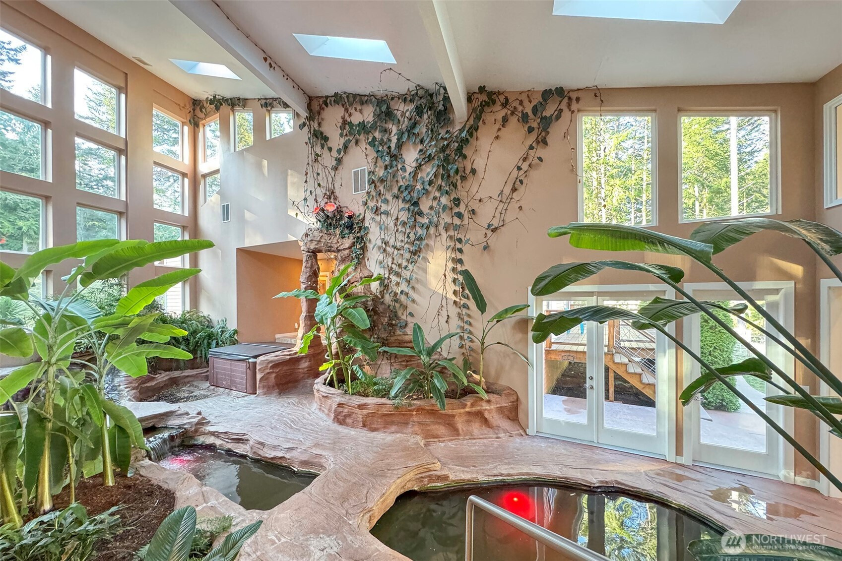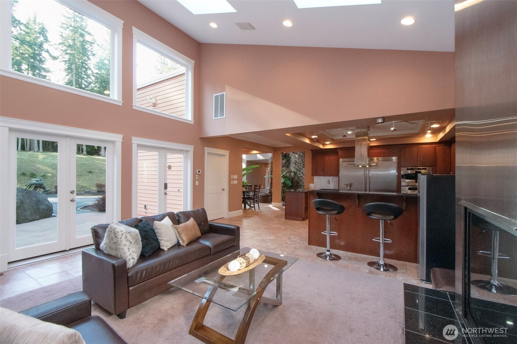 Should be on a magazine cover! You could travel the world and find little to compare with the peace and tranquility of this lovely spot. Custom home in Sequim Bay Acres in Panorama Vista on 5 private acres. This contemporary home has it all! 3900 square feet of living space with 4 bedrooms and 3 full bathrooms. When you open the door, you walk into an entertainers delight with a living room with a propane fireplace and built-ins. The chef's kitchen has a island with an induction cook top, a peninsula with bar stools, a Frigidaire professional series refrigerator and subzero freezer, wall oven & micro, an appliance garage, & large walk-in pantry. Off the kitchen is a formal dining room overlooking a large atrium with a hot tub & Koi pond. The primary bedroom has a propane fireplace, a large walk-in closet with built-ins, adjoining exercise room, and an en-suite with an oversized shower, double sinks, and separate toilet. There are 2 additional bedrooms on this end of the house with a full bathroom. Up the spiral staircase is an bonus area with built-ins. As you walk thru the atrium there is another office / entertaining space. The fourth bedroom is located off the living room with another full bathroom. A key feature of the home is a sound-proof theater with red leather seating. There are two heat pumps and five different zones for heat and three separate hot water heaters. The three car garage has 888 square feet for your cars and additional storage. Come see!