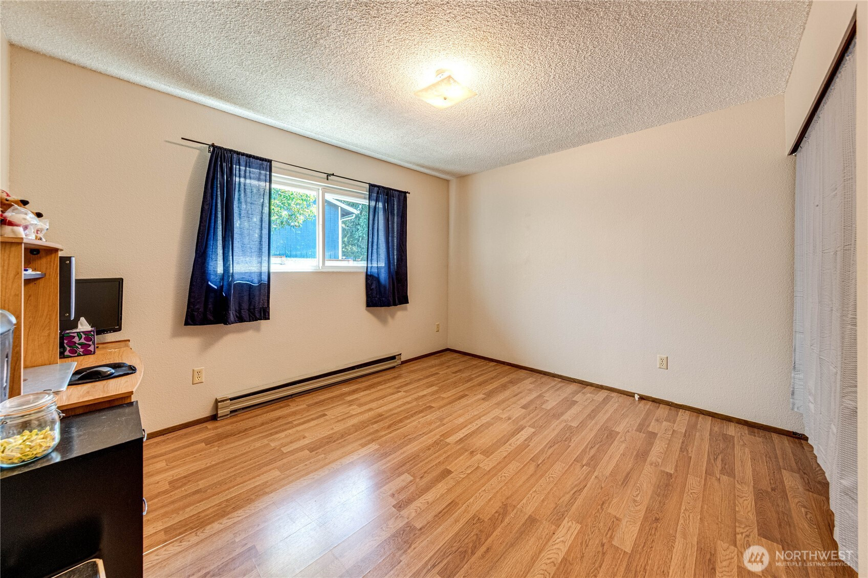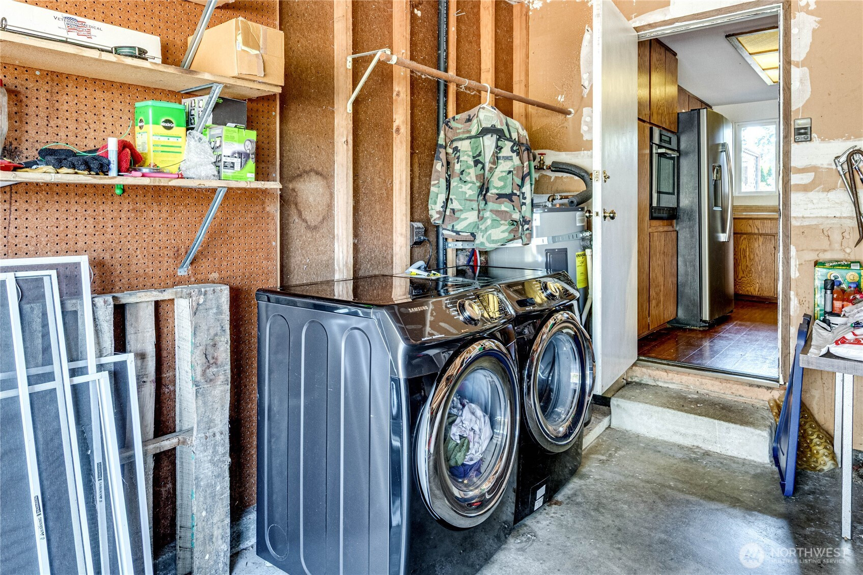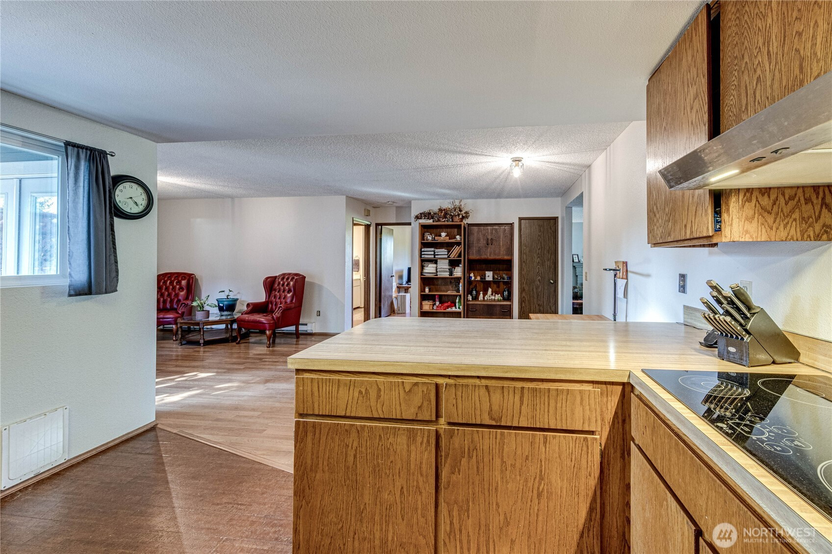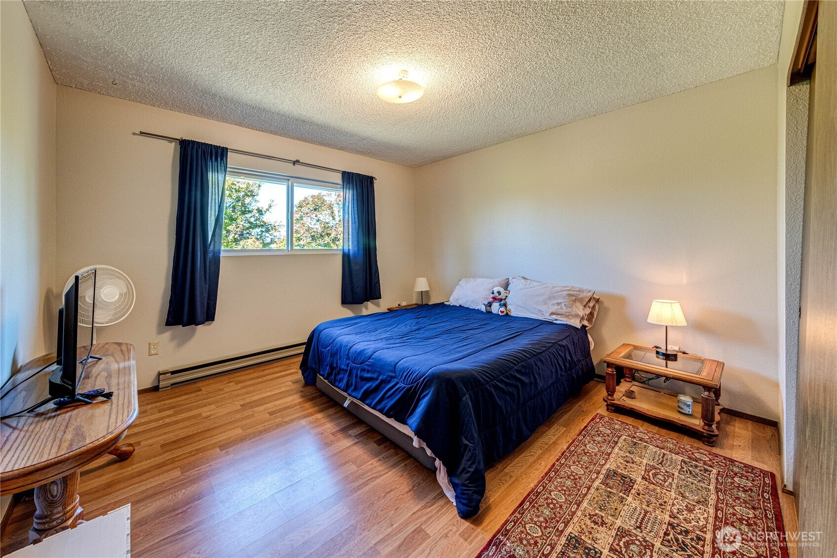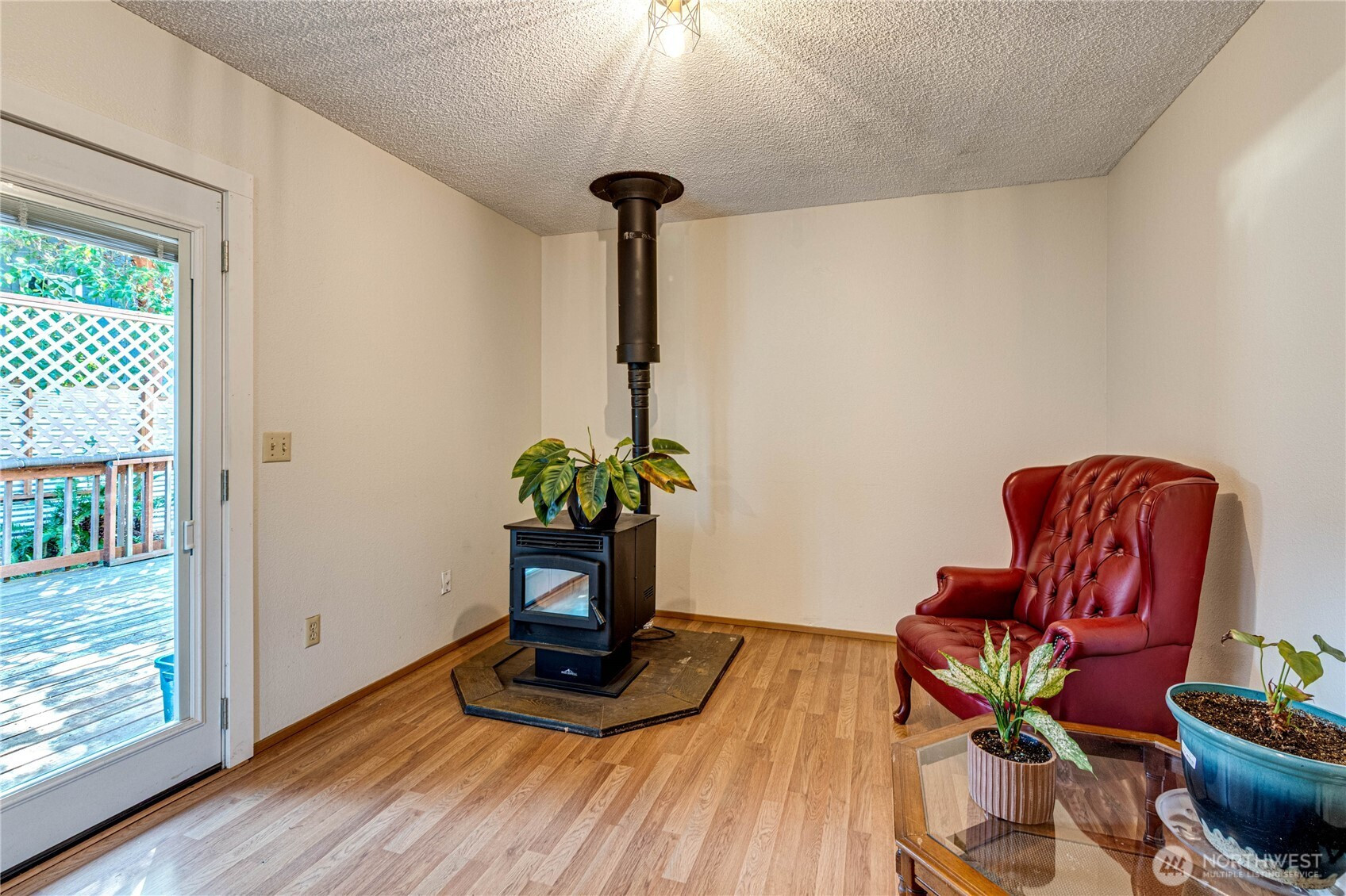 Charming single level home offering 3 bedrooms, 1 3/4 baths, and 1,530 sq. ft. of living space. Situated on a comer lot w/ a peek a boo water view from front yard, this home features new Hardi plank siding installed in 2022, an attached garage, a fully fenced backyard. Inside, enjoy both a spacious living room w/ a wood burning fireplace, a cozy family room w/a newer pellet stove installed in 2022, plus a kitchen w/ a convenient breakfast bar. The French doors from the family room open to a back deck, perfect for entertaining or relaxing outdoors. The thoughtful layout provides comfort and versatility. This home is close to the Olympic Discovery Trail and ready for its new owners!