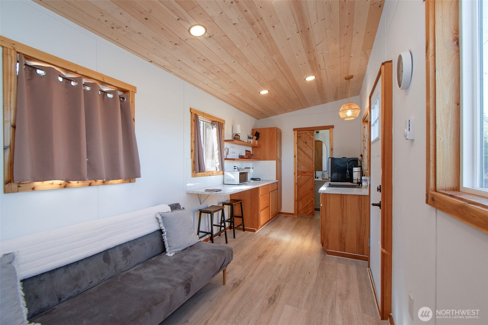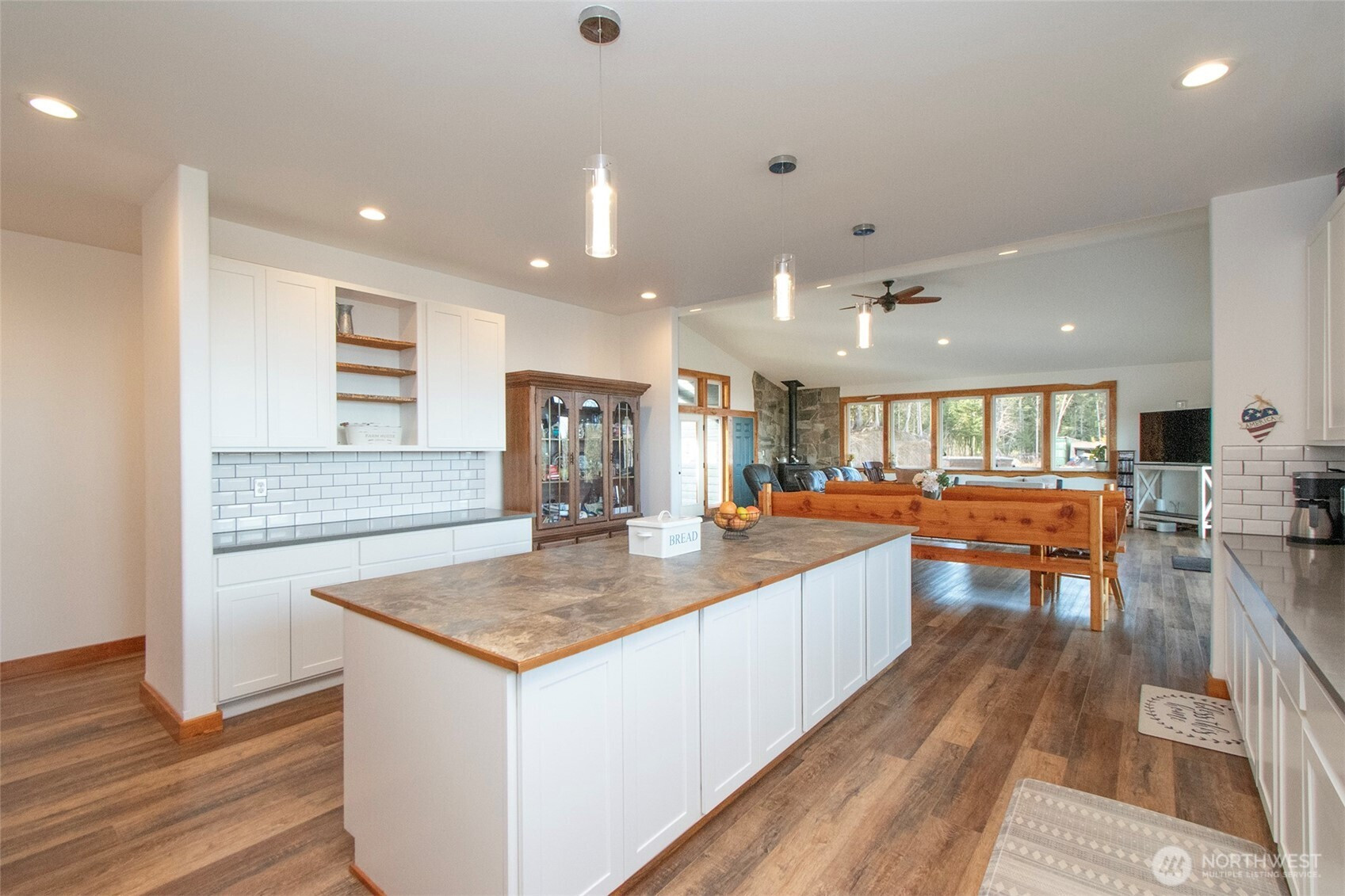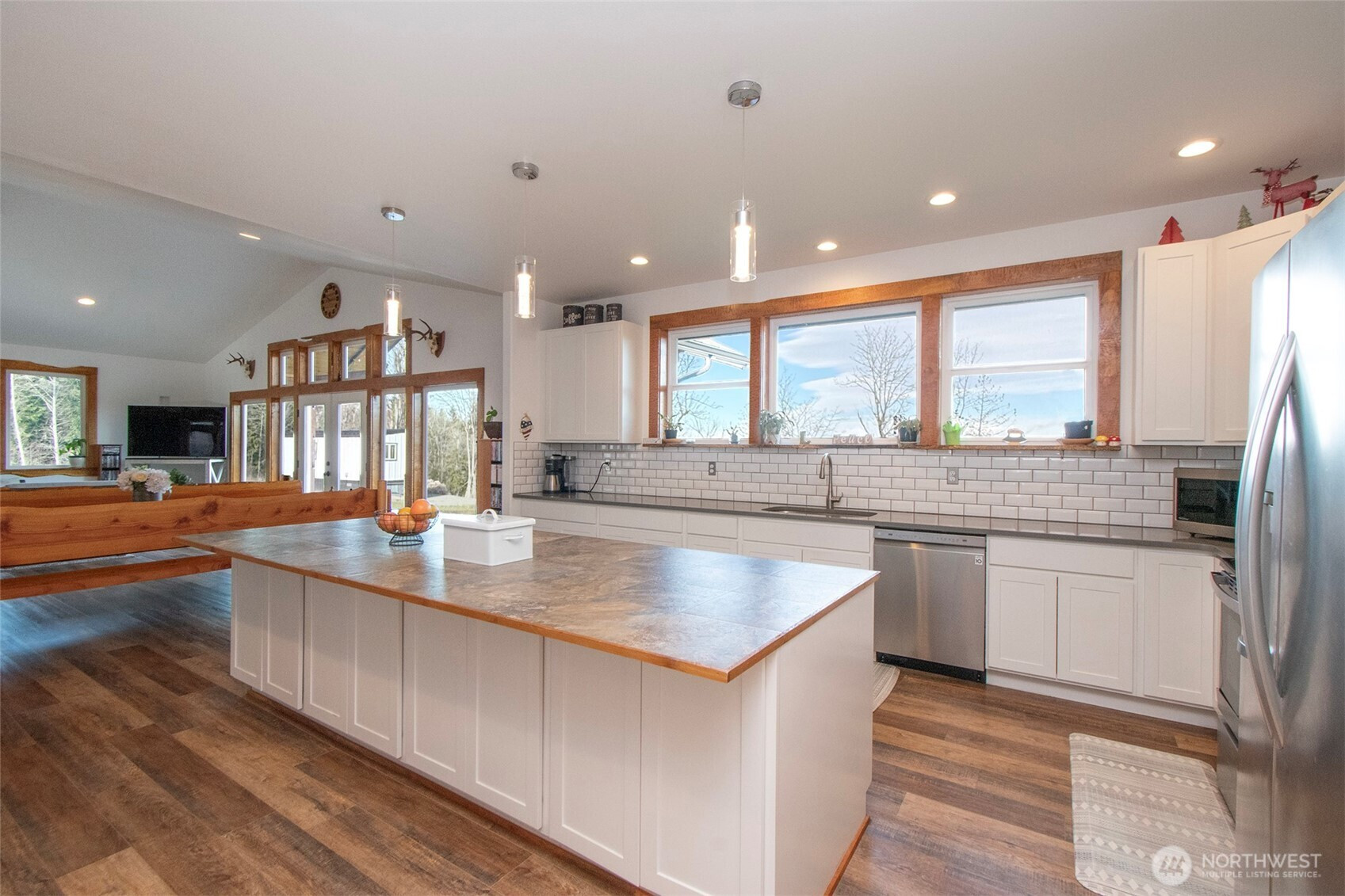 Morning light spills across 10 sun-drenched acres, where sweeping views stretch over the Strait of Juan de Fuca to Canada. Tucked between Port Angeles and Sequim in the Olympic Peninsula’s coveted sun belt, this is a place where days unfold with ease and possibility. A custom Craftsman home welcomes you beneath a grand covered entry. Inside, natural light fills the space, dancing across warm finishes and gathering around a cozy wood-burning stove, with a dedicated wood room ready for Northwest seasons. The kitchen is the heart of it all—anchored by a striking 10-foot island, walk-in pantry, and expansive windows that frame the water beyond. The primary suite offers a quiet retreat with serene views, a soaking tub, and walk-in shower. Below, a generous crawlspace invites ideas—canning, hobbies, or additional storage. Outside, the land opens wide with opportunity. Ten acres offer space for a future home, barn, or hobby farm, while the northern portion presents potential for income or investment. A portable vacation rental and full RV hookup create flexibility for guests or seasonal living. A year-round creek traces the western edge, where evenings bring stillness, star-filled skies, and the soft rhythm of nature. Thoughtful details—like invisible fencing, an exterior hot-water spigot, and quilted maple live-edge trim—complete the setting. Here, at the gateway to Olympic National Park, life feels both grounded and expansive.