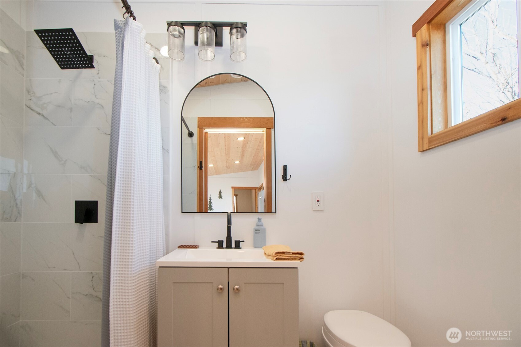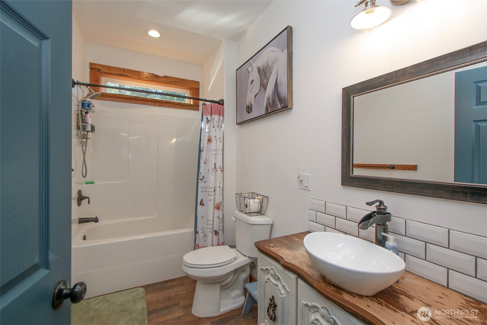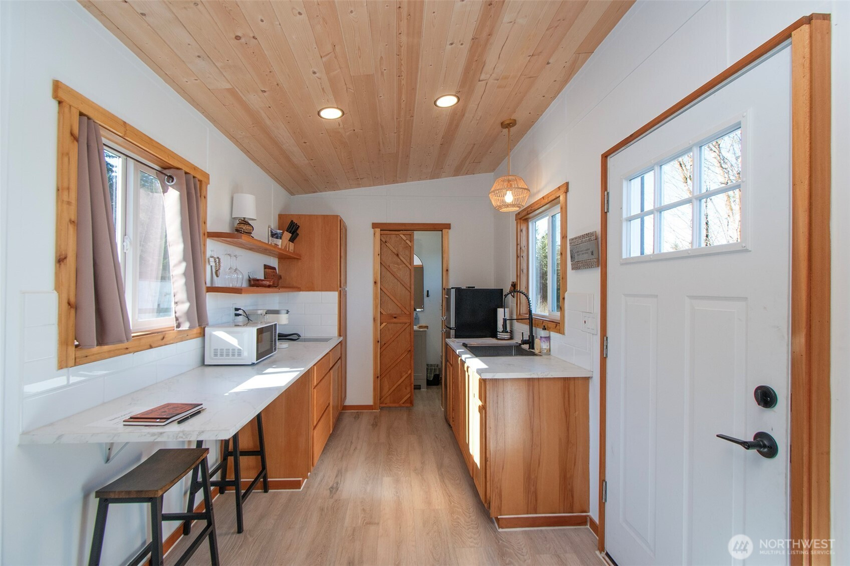 Morning light spills across 10 sun-drenched acres, where sweeping views stretch over the Strait of Juan de Fuca to Canada. Tucked between Port Angeles and Sequim in the Olympic Peninsula’s coveted sun belt, this is a place where days unfold with ease and possibility. A custom Craftsman home welcomes you beneath a grand covered entry. Inside, natural light fills the space, dancing across warm finishes and gathering around a cozy wood-burning stove, with a dedicated wood room ready for Northwest seasons. The kitchen is the heart of it all—anchored by a striking 10-foot island, walk-in pantry, and expansive windows that frame the water beyond. The primary suite offers a quiet retreat with serene views, a soaking tub, and walk-in shower. Below, a generous crawlspace invites ideas—canning, hobbies, or additional storage. Outside, the land opens wide with opportunity. Ten acres offer space for a future home, barn, or hobby farm, while the northern portion presents potential for income or investment. A portable vacation rental and full RV hookup create flexibility for guests or seasonal living. A year-round creek traces the western edge, where evenings bring stillness, star-filled skies, and the soft rhythm of nature. Thoughtful details—like invisible fencing, an exterior hot-water spigot, and quilted maple live-edge trim—complete the setting. Here, at the gateway to Olympic National Park, life feels both grounded and expansive.