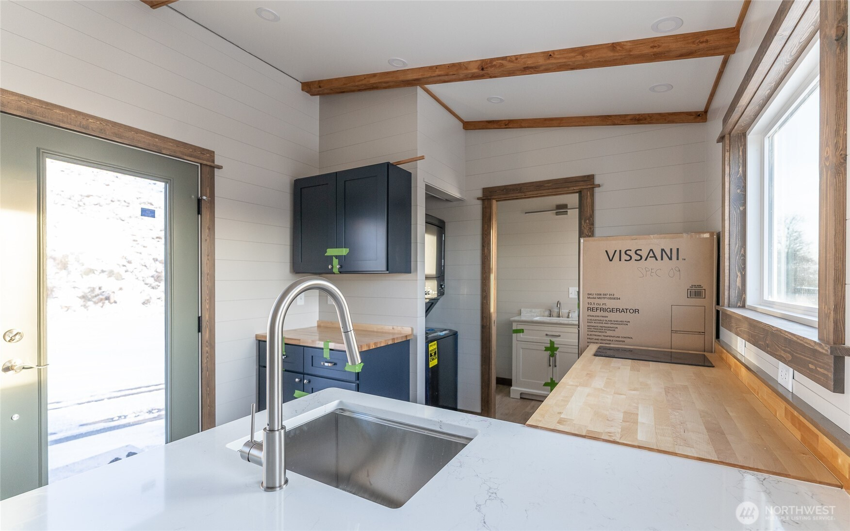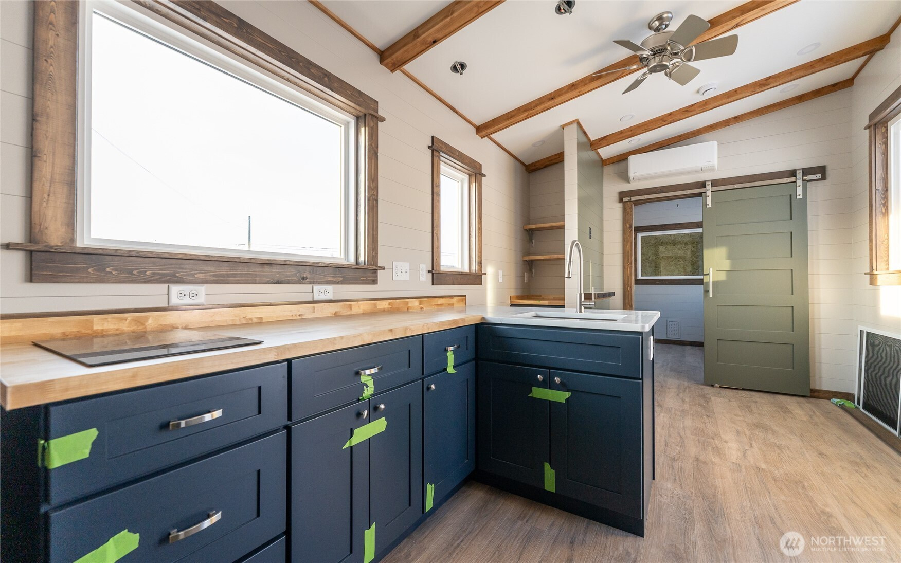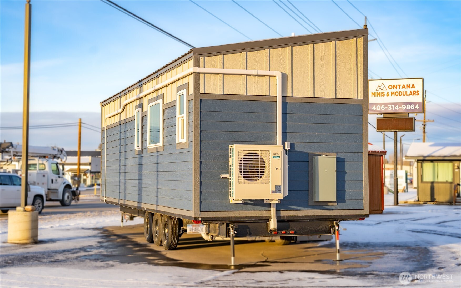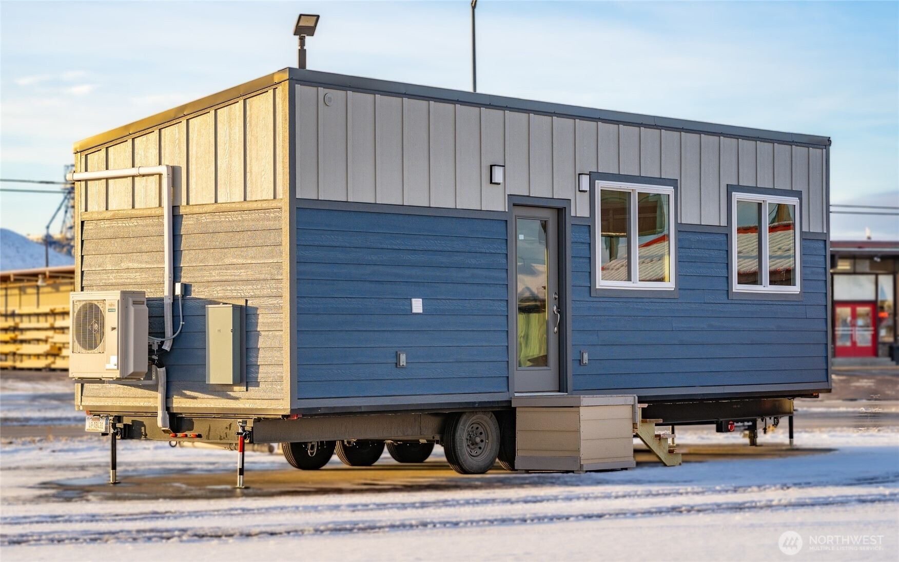 Experience big living in this custom tiny home! Built like a house & engineered for extreme climates, this home features a robust custom chassis, ZIP System sheathing, and premium closed-cell insulation for year-round comfort. Inside, enjoy luxury plank floors, custom LED lighting, a cozy fireplace, and abundant natural light from premium windows. The chef’s kitchen dazzles with custom quartz & butcher-block counters, induction cooking, and a breakfast bar. A rare find in tiny living: the bathroom boasts a full size vanity and shower. Comes with all appliances includes washer/dryer, induction cook-top, and refrigerator. Whether for an short-term rental or a minimalist dream home, this unit offers uncompromising quality with an on demand hot water and heavy-duty mini-split system. Built to last and ready for move in!