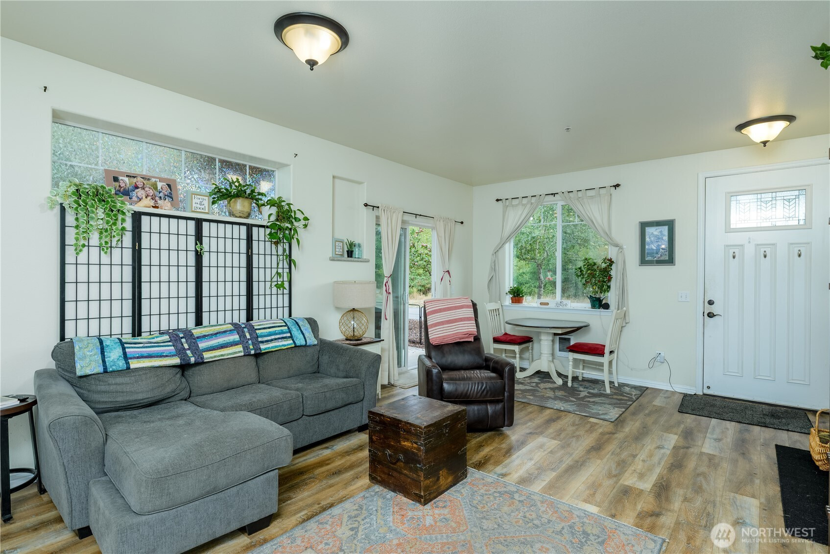 Enjoy low-maintenance, one-level living in this 1-bedroom, 1-bath condo with 884 sq. ft. plus a 364 sq. ft. private garage. Set in The Orchards on 14th, a 6.7-acre community with landscaped grounds, this condo has apple trees in the front yard and ample parking, offering comfort and convenience in a high-end neighborhood just two blocks from the bluff, where you can see the Straits of Juan de Fuca. The open-concept layout features wraparound kitchen counters and a covered patio perfect for relaxing outdoors or watching the deer roam. Community amenities include a 25-yard outdoor seasonal pool, clubhouse with fitness center, fireplace, commercial kitchen, and rentable guest studio for visitors. Best of all, the condo sits adjacent to the paved Olympic Discovery Trail, a rails-to-trails path stretching from Port Townsend to the Pacific Ocean—ideal for electric or regular bikes, running, or walking. Close to healthcare and downtown Port Angeles, this is a rare opportunity blending lifestyle, location, and community.