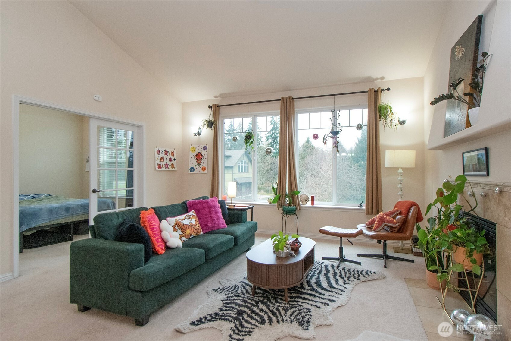 Experience effortless one-level living in this beautifully designed condo, where vaulted ceilings and a welcoming foyer set the tone for comfort and ease. The living room invites relaxation with its propane fireplace, built-in bookcase, and abundant natural light. The kitchen blends style and function with granite countertops, stainless appliances, cork flooring, a peninsula for casual dining, a built-in wine rack, and an adjacent dining area. French doors open to the guest bedroom, and the guest bath offers heated tile floors, full-height tile walls, a roll-in shower with grab bar and handheld showerhead, a skylight, and a pedestal sink—ideal for accessible, barrier-free living. The primary suite includes a walk-in closet and an ensuite with heated tile floors, granite vanity, jetted tub/shower combo, skylight, and linen cabinet. An art nook, additional skylight, tile-floored laundry room with storage, electric wall heat, interior fire-sprinkler system, and attached garage add convenience throughout. Life at The Orchards offers low-maintenance living in a landscaped, park-like setting with fruit trees, walking areas, and a clubhouse with stone-fireplace, commercial kitchen, fitness room, craft room, media lounge, rentable guest suite, and a year-round 25-meter pool and steam room. You’re also steps from the Olympic Discovery Trail and minutes to healthcare, downtown Port Angeles, Ediz Hook, and local shops. Tenants lease expires 4/30; she would love the opportunity to stay.