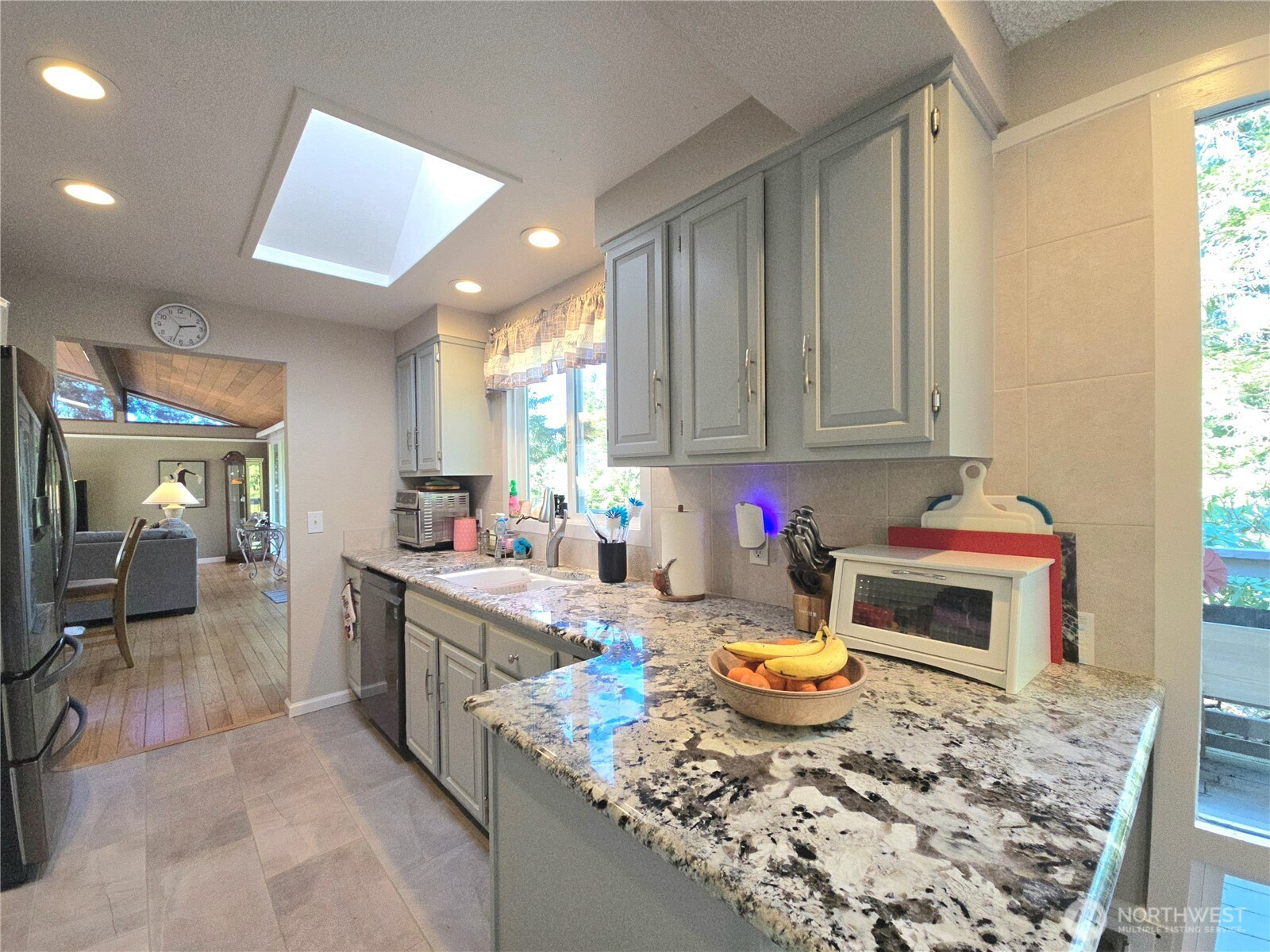 (503) 893-8874Fabulous single-story home in Sequim with approximately 2,600 sq. ft., including a finished daylight basement, all in superb condition. Enjoy stunning golf course views from the front deck and comfortable indoor living year-round with a heat pump providing heating and air conditioning, approximately six years old. The home features four bedrooms, oak hardwood floors in the main living areas, and a tasteful blend of tile and carpet throughout. Skylights fill the guest bedroom, kitchen, and living room with natural light. The main bedroom offers a walk-in closet and updated dual-pane windows (approx. five years old). All appliances stay, including stove, oven, microwave, dishwasher, and refrigerator, all approximately five years old. The finished garage includes cabinets and a newer ACORN chairlift for convenient access from the garage. Beautiful, low-maintenance landscaping, a private back porch deck, and pride of ownership throughout make this home truly move-in ready.