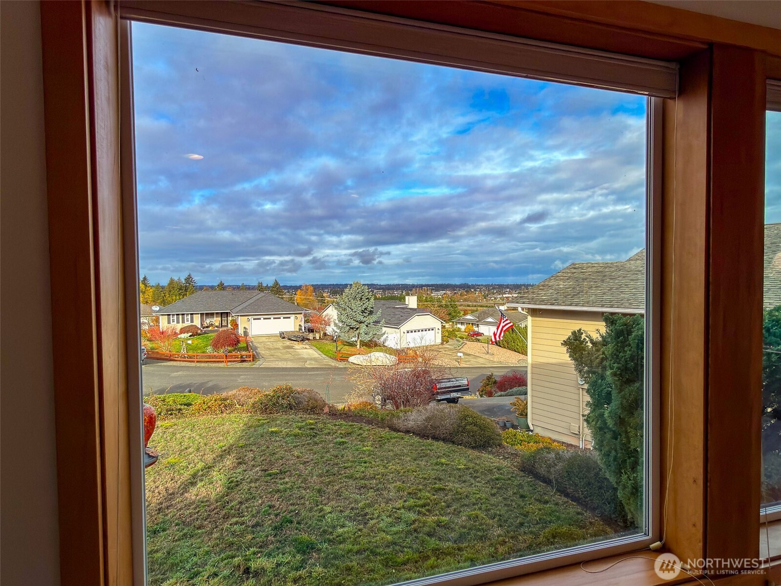 Behold panoramic views of the Strait of Juan de Luca, islands & Mount Baker from this one level, lovely, light filled home located on a cul-de-sac, in the desirable neighborhood of Emerald Highlands. Adorned with an art niche, glass blocks, large view windows, leaded glass, skylights, solar tube & sunroom, it also features a spacious primary bedroom possessing a walk-in closet & ensuite bathroom showcasing a jetted tub & separate shower. Gorgeous granite countertops & custom cabinetry in the kitchen with a variety of eating options: at the bar, in the dining room or sunroom. Two additional bedrooms, full bath, half bath, laundry room & additional closets round out this comfortable, quality home. Patio access via a back door ramp or sunroom.