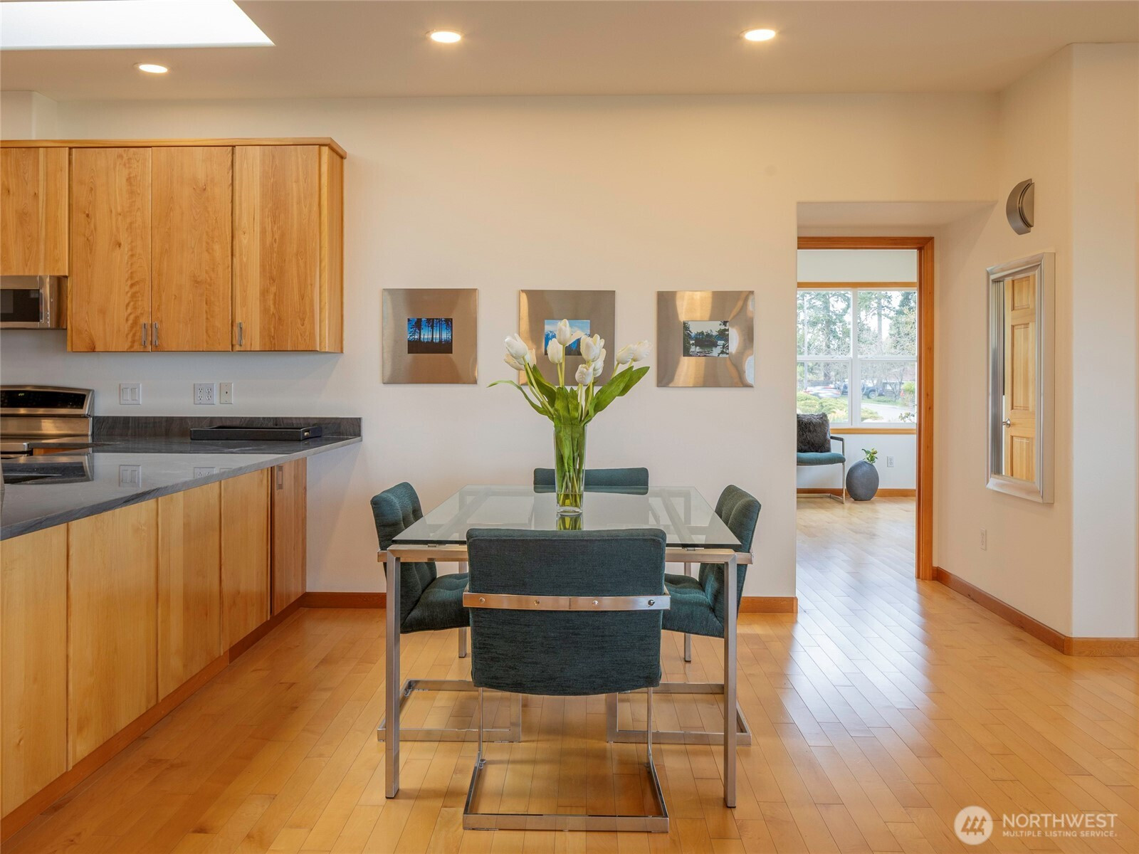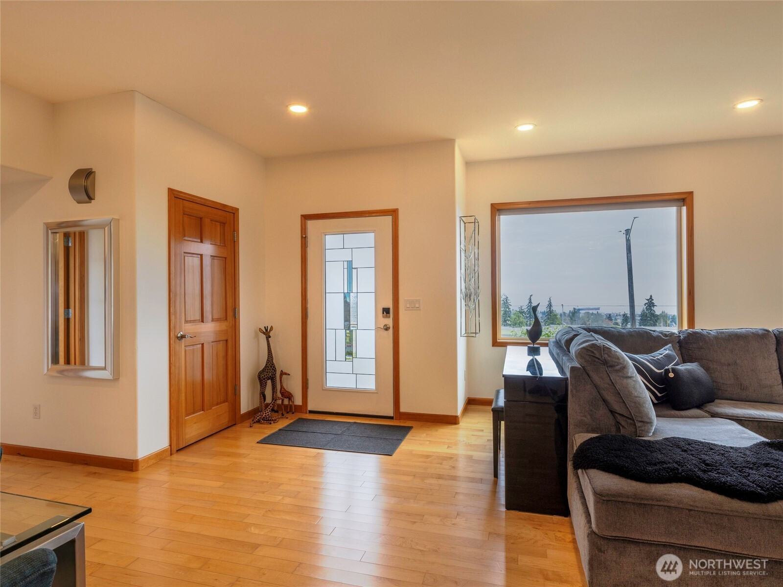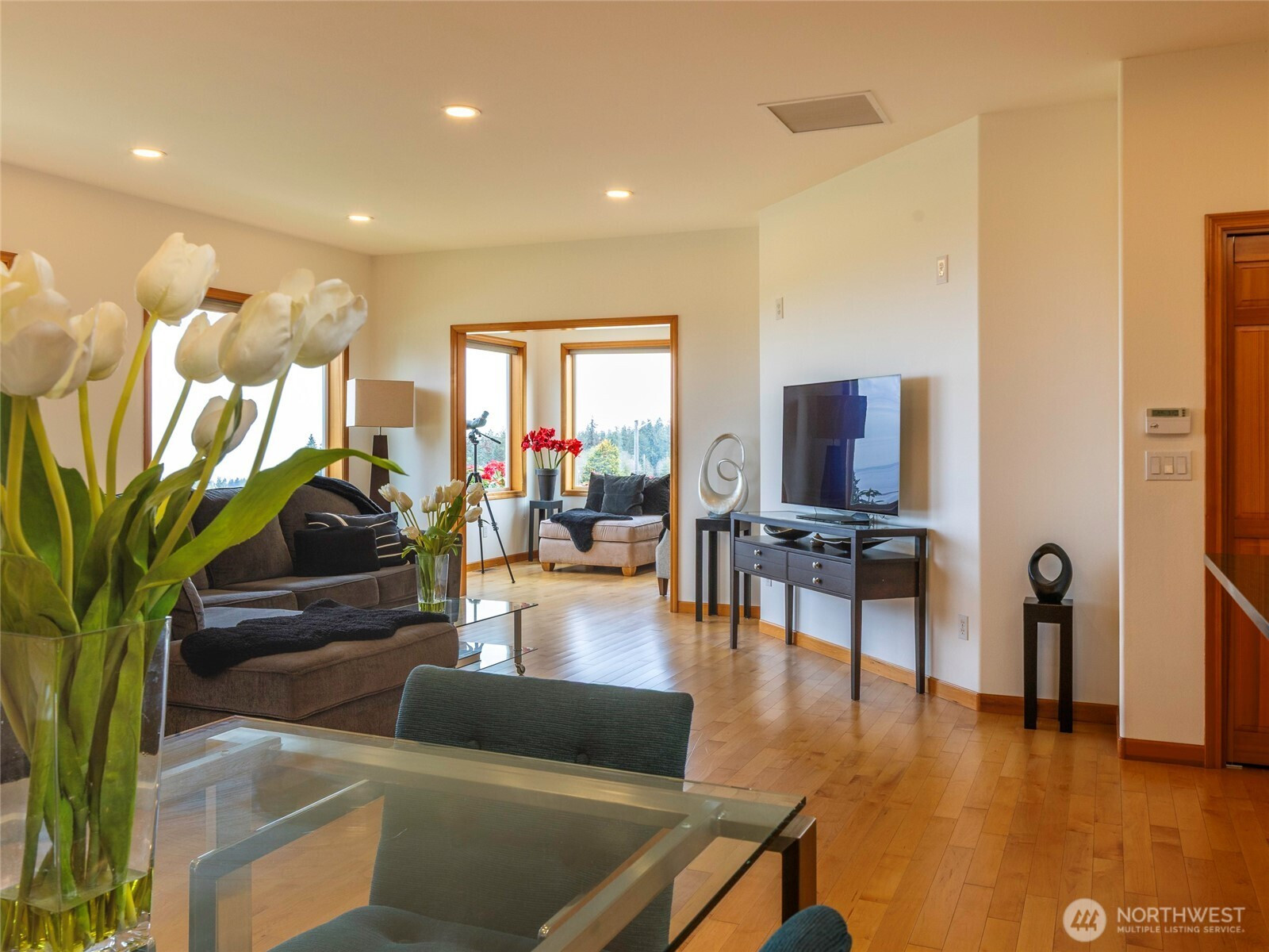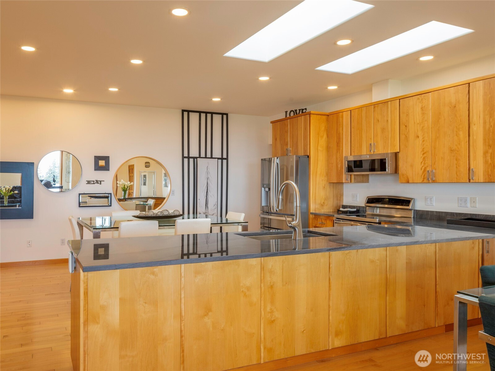 Perched in a sought-after location, this beautifully updated 3-bedroom, 2-bath home offers breathtaking, panoramic views of the Strait of Juan de Fuca, Vancouver Island and Port Angeles. 9 foot ceilings, skylights and large front windows flood the home with natural light, while you enjoy stunning vistas from multiple rooms, including the kitchen. Built in 2004 and thoughtfully updated between 2019 - 2023, this home blends timeless design with modern touches. Rich maple wood flooring and elegant ceramic tile flow throughout, creating a warm & inviting atmosphere. The kitchen is a standout, featuring luxurious natural quartz countertops, ample workspace, & a layout ideal for both everyday living and entertaining, all while enjoying the view from your kitchen sink. The spacious primary suite is a private retreat, complete with heated floors & a soaking tub perfect for unwinding at the end of the day. The second bathroom offers a sleek walk-in shower, heated tile floors & granite countertops. Step outside to a peaceful patio surrounded by your garden and well planned landscaping, an ideal setting to relax, entertain, or simply watch ships across the water. An extra-large 2-car garage provides plenty of room for storage, hobbies, or a dedicated work area. This home combines comfort, quality, and unforgettable views.