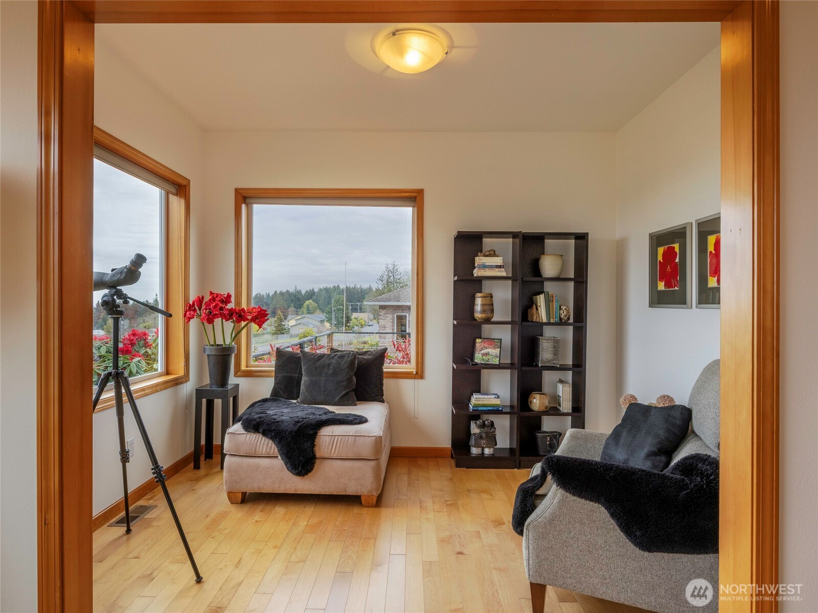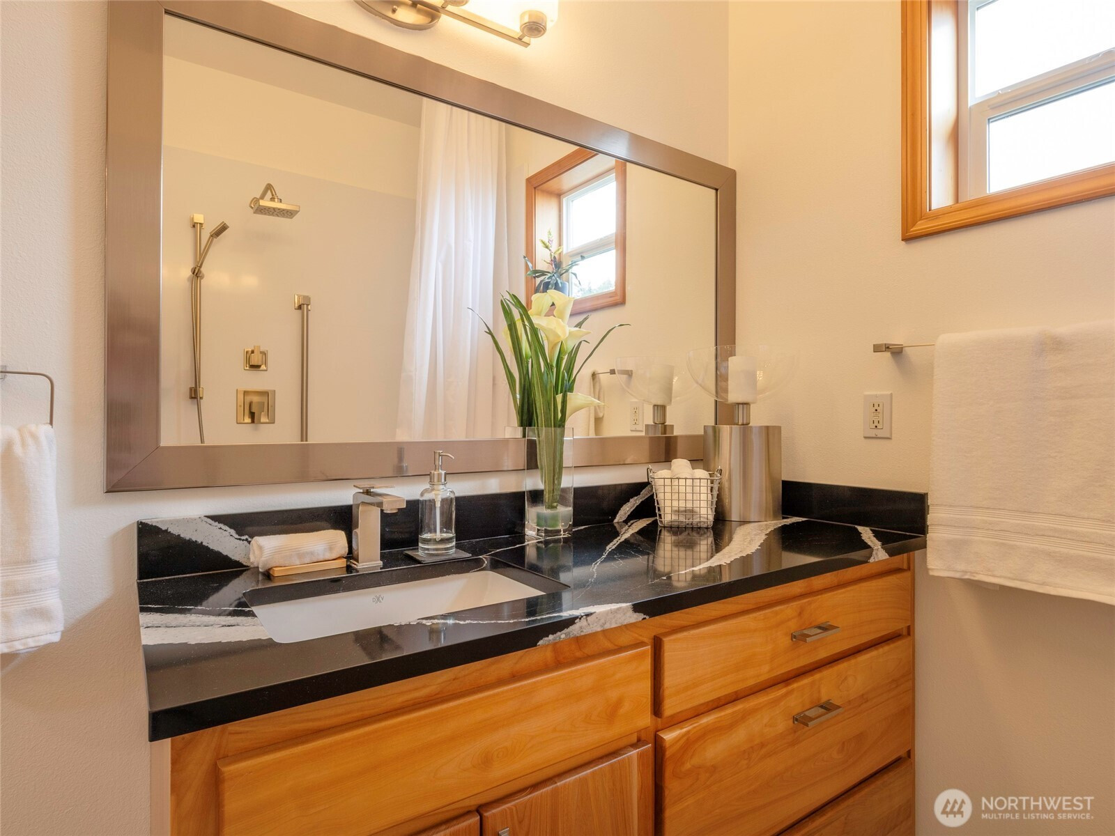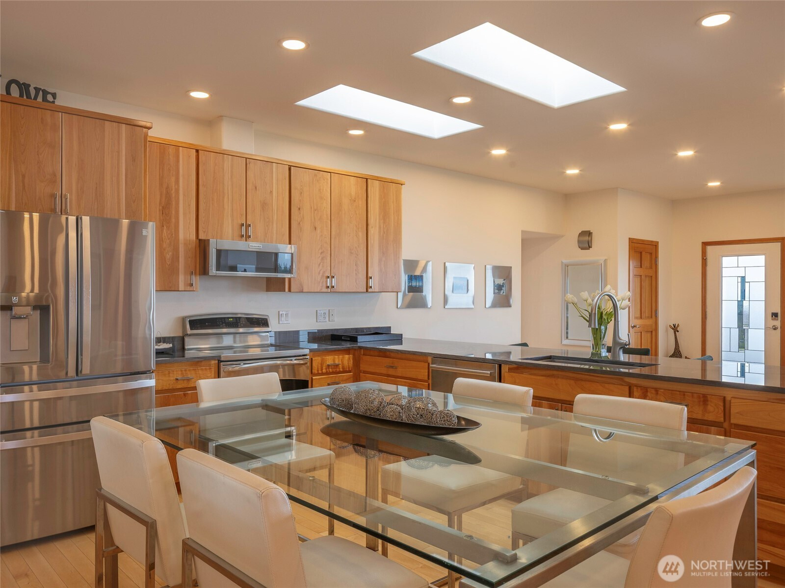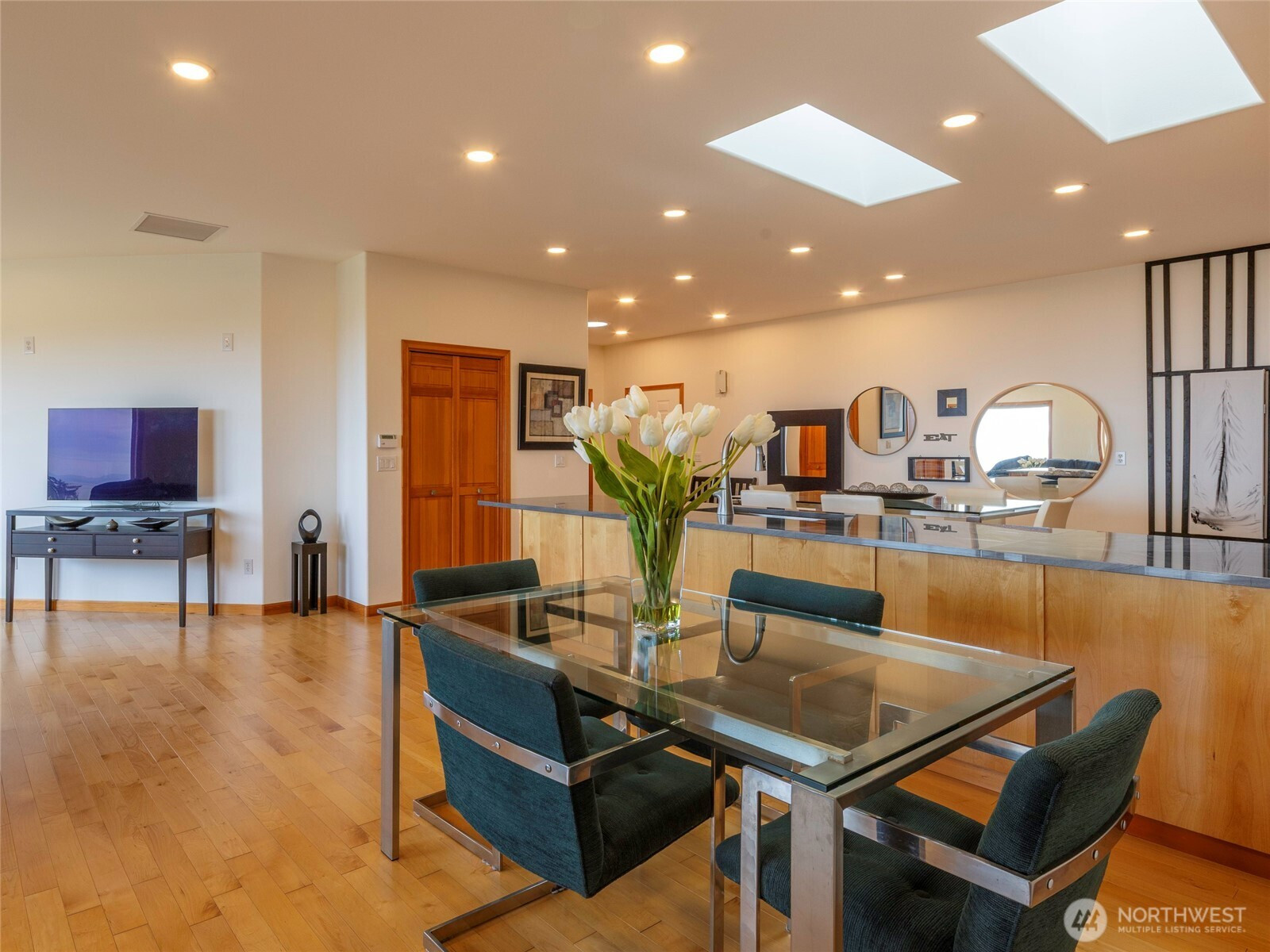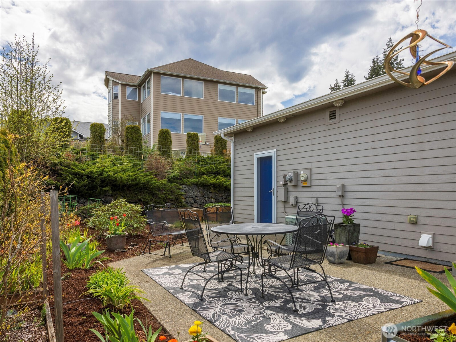 Perched in a sought-after location, this beautifully updated 3-bedroom, 2-bath home offers breathtaking, panoramic views of the Strait of Juan de Fuca, Vancouver Island and Port Angeles. 9 foot ceilings, skylights and large front windows flood the home with natural light, while you enjoy stunning vistas from multiple rooms, including the kitchen. Built in 2004 and thoughtfully updated between 2019 - 2023, this home blends timeless design with modern touches. Rich maple wood flooring and elegant ceramic tile flow throughout, creating a warm & inviting atmosphere. The kitchen is a standout, featuring luxurious natural quartz countertops, ample workspace, & a layout ideal for both everyday living and entertaining, all while enjoying the view from your kitchen sink. The spacious primary suite is a private retreat, complete with heated floors & a soaking tub perfect for unwinding at the end of the day. The second bathroom offers a sleek walk-in shower, heated tile floors & granite countertops. Step outside to a peaceful patio surrounded by your garden and well planned landscaping, an ideal setting to relax, entertain, or simply watch ships across the water. An extra-large 2-car garage provides plenty of room for storage, hobbies, or a dedicated work area. This home combines comfort, quality, and unforgettable views.