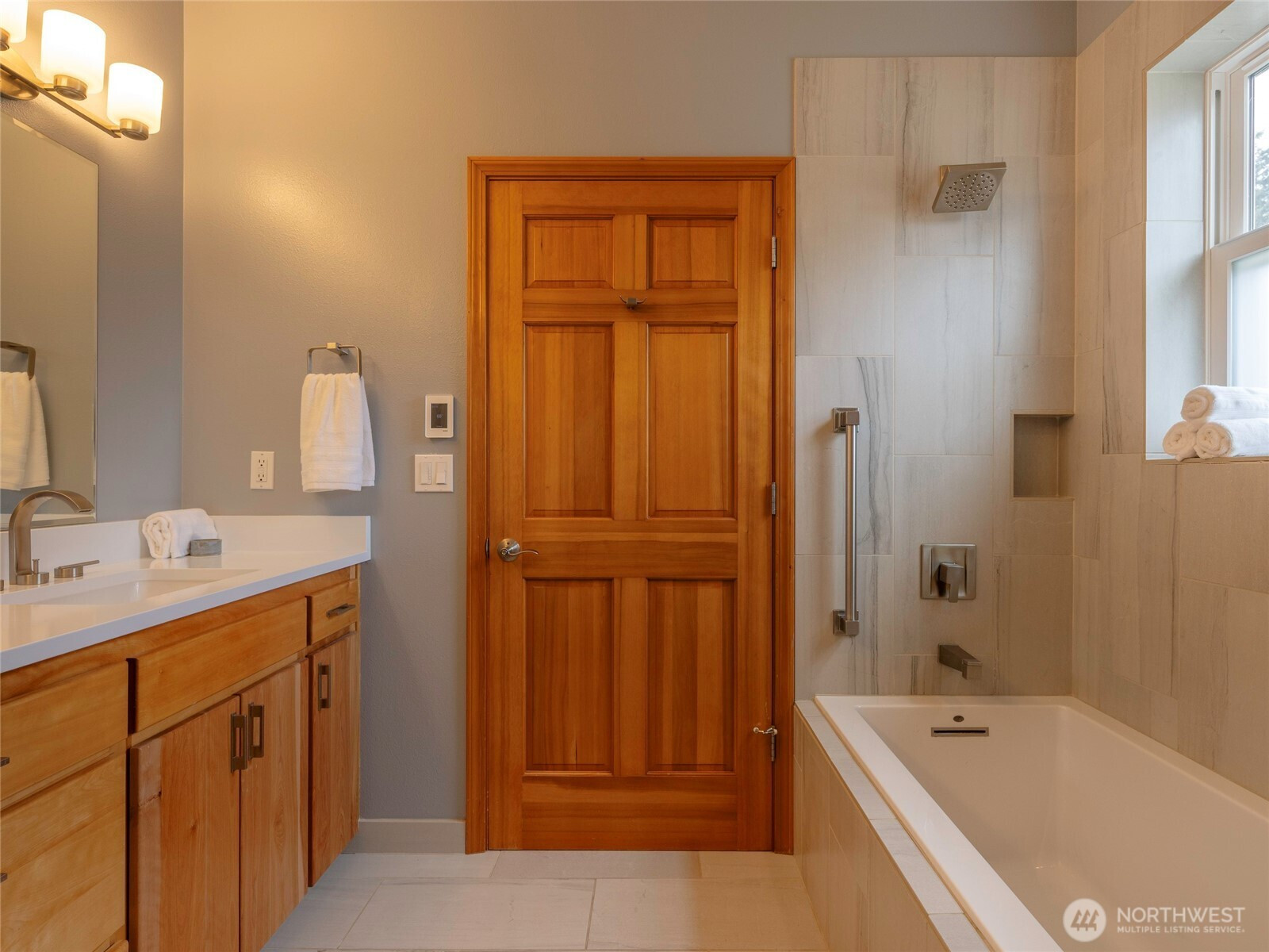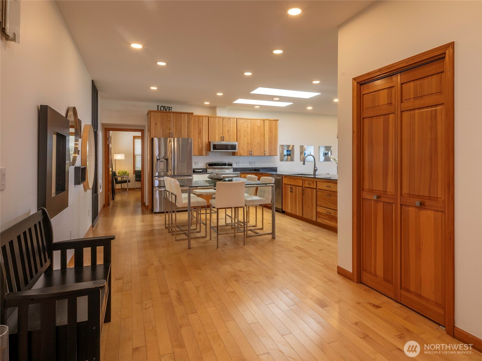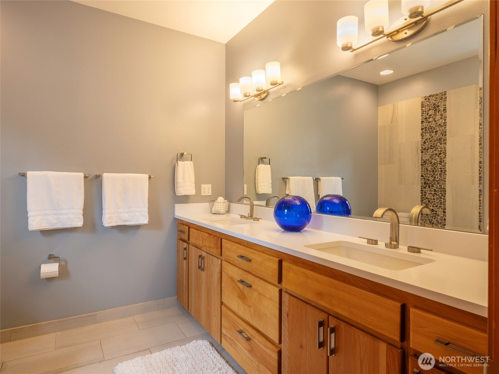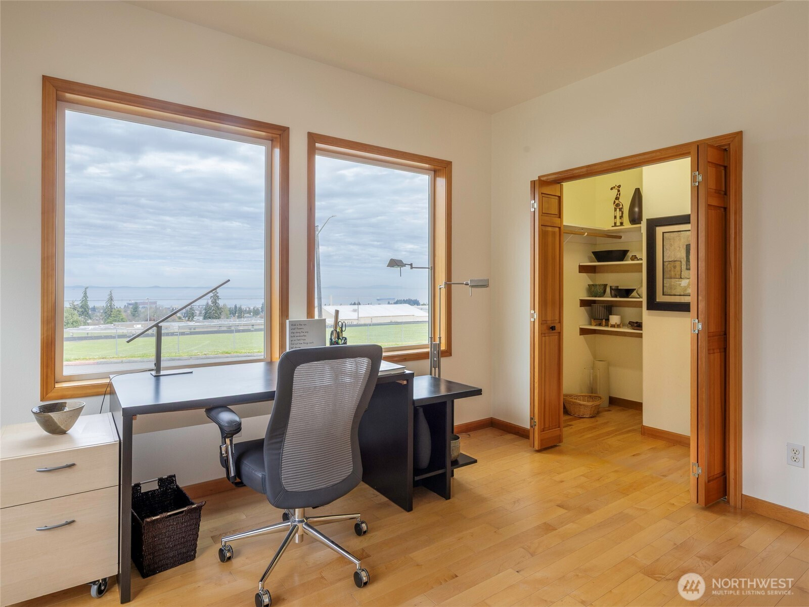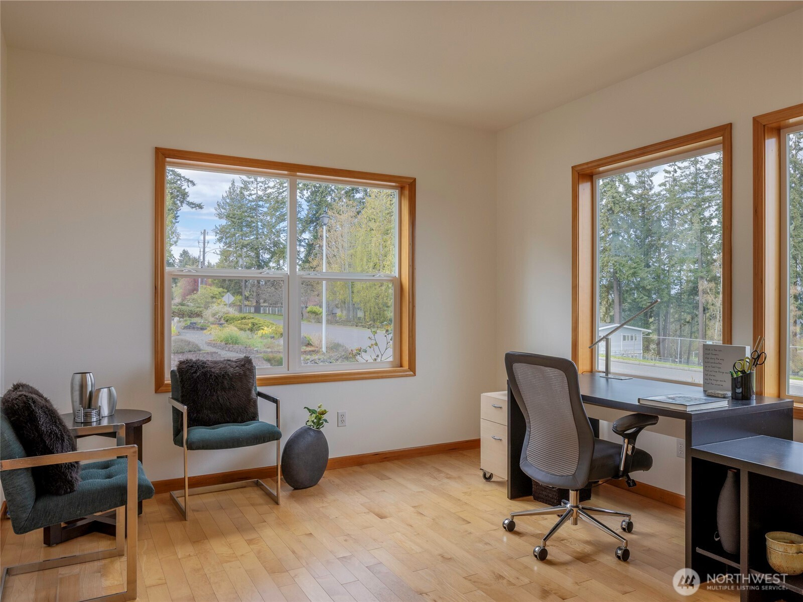 Perched in a sought-after location, this beautifully updated 3-bedroom, 2-bath home offers breathtaking, panoramic views of the Strait of Juan de Fuca, Vancouver Island and Port Angeles. 9 foot ceilings, skylights and large front windows flood the home with natural light, while you enjoy stunning vistas from multiple rooms, including the kitchen. Built in 2004 and thoughtfully updated between 2019 - 2023, this home blends timeless design with modern touches. Rich maple wood flooring and elegant ceramic tile flow throughout, creating a warm & inviting atmosphere. The kitchen is a standout, featuring luxurious natural quartz countertops, ample workspace, & a layout ideal for both everyday living and entertaining, all while enjoying the view from your kitchen sink. The spacious primary suite is a private retreat, complete with heated floors & a soaking tub perfect for unwinding at the end of the day. The second bathroom offers a sleek walk-in shower, heated tile floors & granite countertops. Step outside to a peaceful patio surrounded by your garden and well planned landscaping, an ideal setting to relax, entertain, or simply watch ships across the water. An extra-large 2-car garage provides plenty of room for storage, hobbies, or a dedicated work area. This home combines comfort, quality, and unforgettable views.