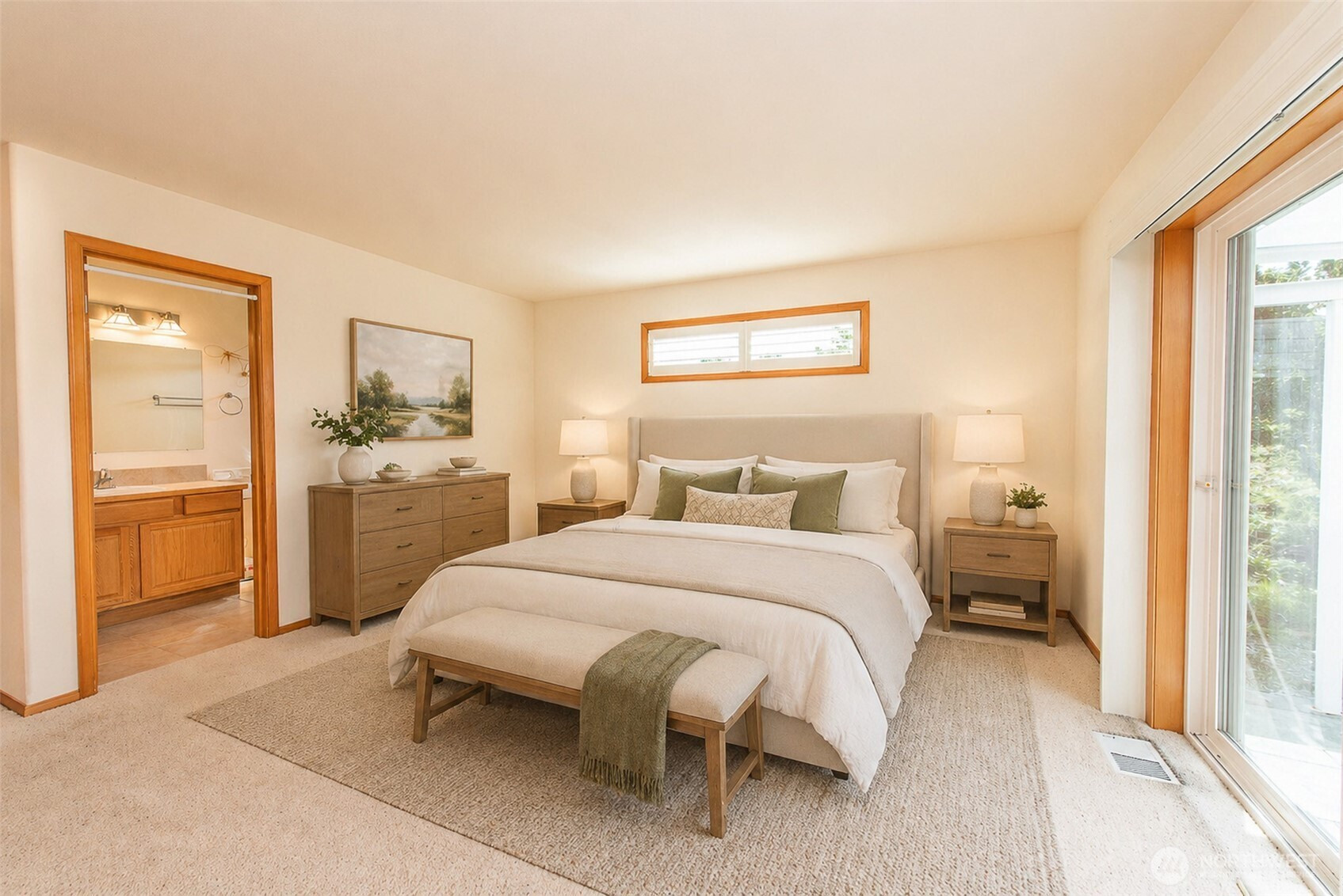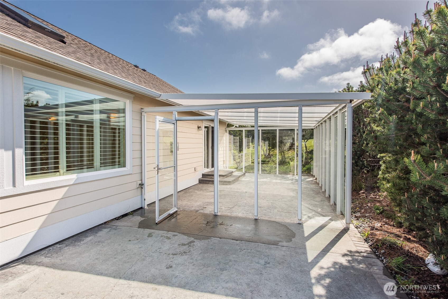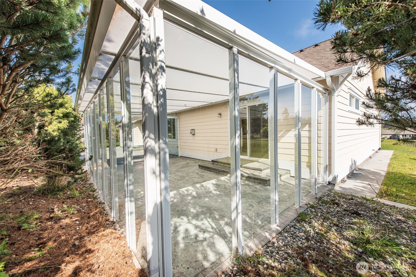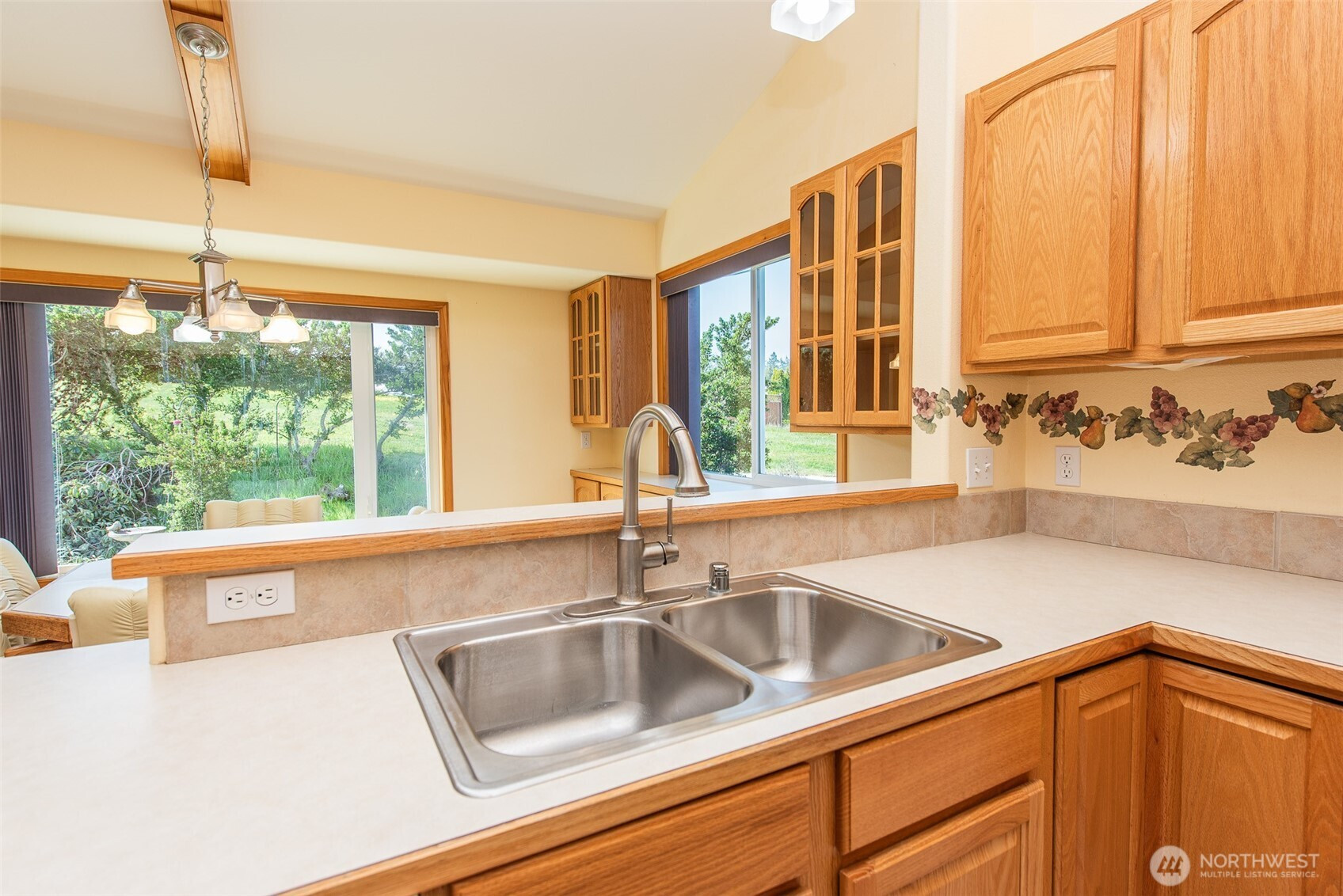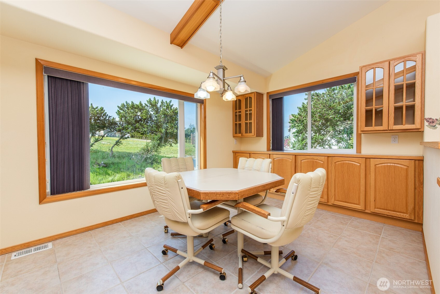 Enjoy peaceful Sequim living with stunning Olympic Mountain views in this beautifully maintained 2 bed, 2 bath + dedicated office, ~2,100 sq ft single-level home near the Dungeness Wildlife Refuge. Tucked in a quiet cul-de-sac, this property offers a rare blend of privacy, space, and convenience. Inside, vaulted ceilings with exposed beams and skylights create a bright, open living area centered around a cozy stone fireplace. The layout flows seamlessly into the dining space and kitchen, designed for both everyday living and entertaining. The spacious primary suite features an ensuite bath and direct access to a bright enclosed sunroom—perfect for year-round relaxation. A second bedroom and dedicated office provide flexibility for guests, remote work, or hobbies. Step outside to a generous yard with mature landscaping, room for gardening, and space to unwind. The attached 573 sq ft garage and oversized driveway offer ample parking and storage. Located just minutes from downtown Sequim, medical facilities, walking trails, and outdoor recreation. This home delivers comfort, functionality, and the peaceful lifestyle the Olympic Peninsula is known for.
