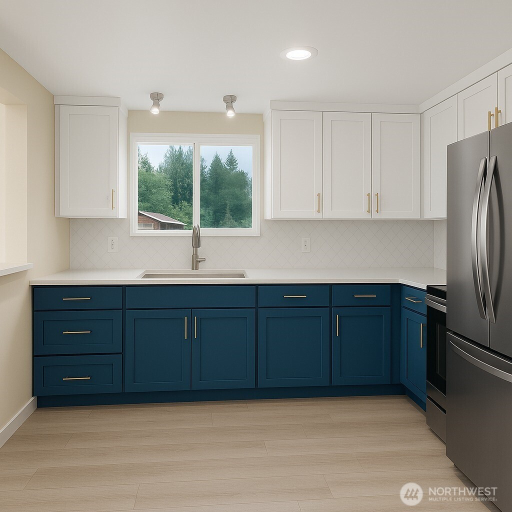 Tucked in natural landscape, just steps from the soothing sounds of Morse Creek with trails surrounding, this 3 bed, 1.75 bath home offers a peaceful retreat in a quiet neighborhood. Built in 2012, the home features 980 sqft of contemporary living space, including vinyl laminate flooring, an open-concept kitchen accented by a warm, live-edge countertop with an abundance of natural light streaming through large windows. The guest bath conveniently doubles as the laundry area, while the primary suite includes its own private 3/4 bath. Outside, enjoy a spacious fenced yard with a chicken coop and multiple utility sheds for storage, a recently replaced septic tank (2022), and ample space to park your RV next to the main structure.