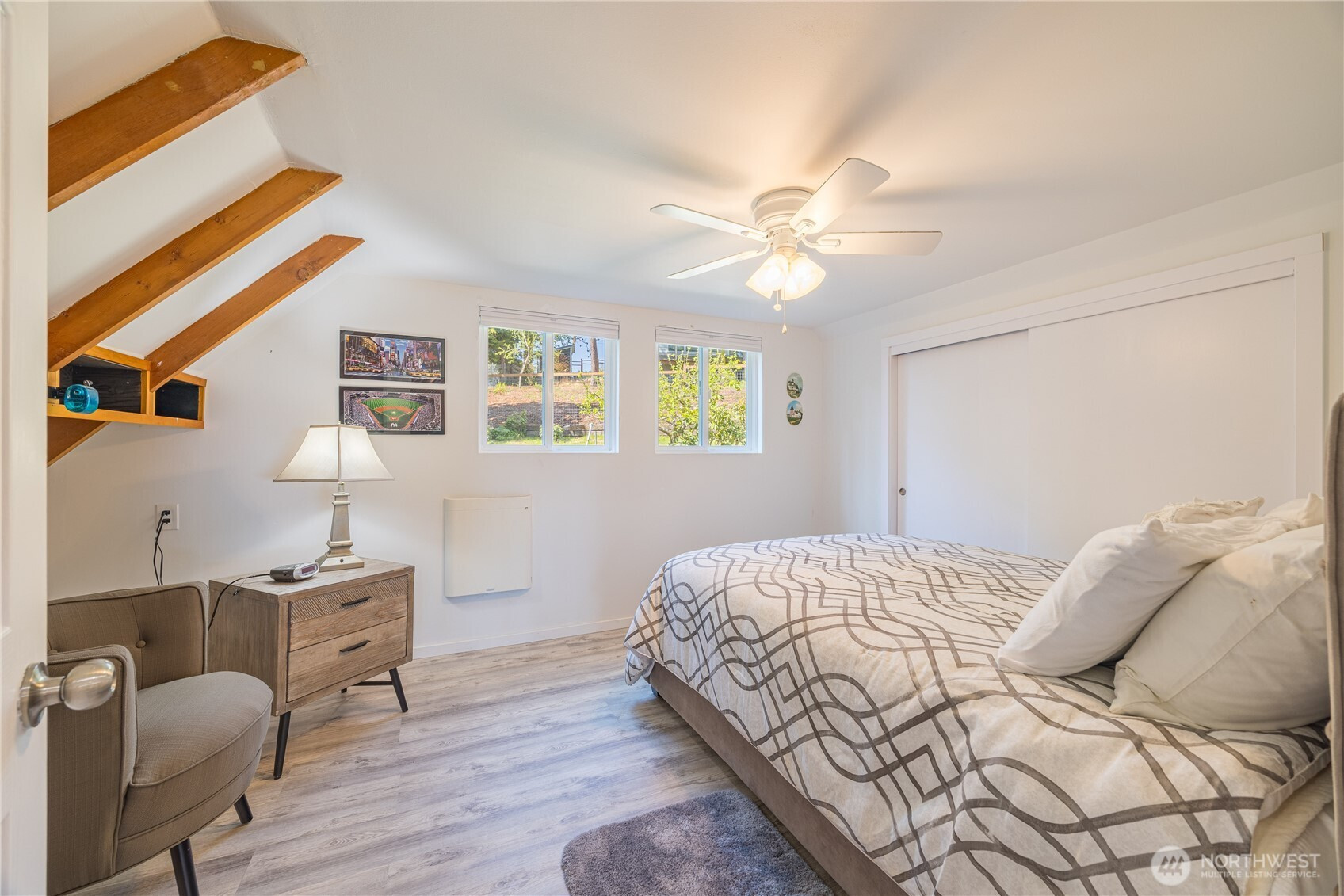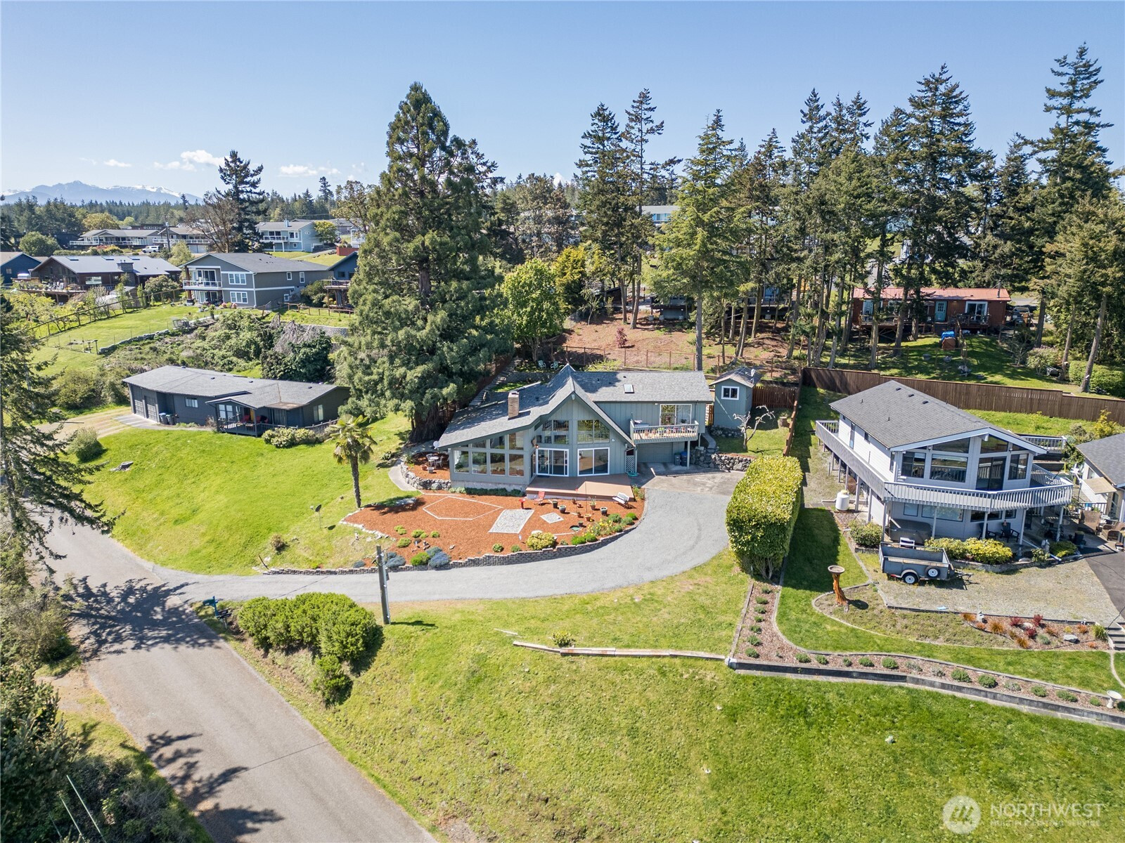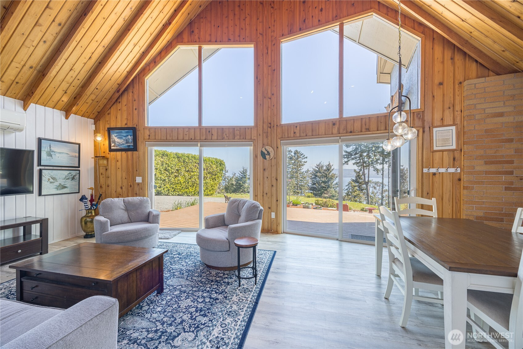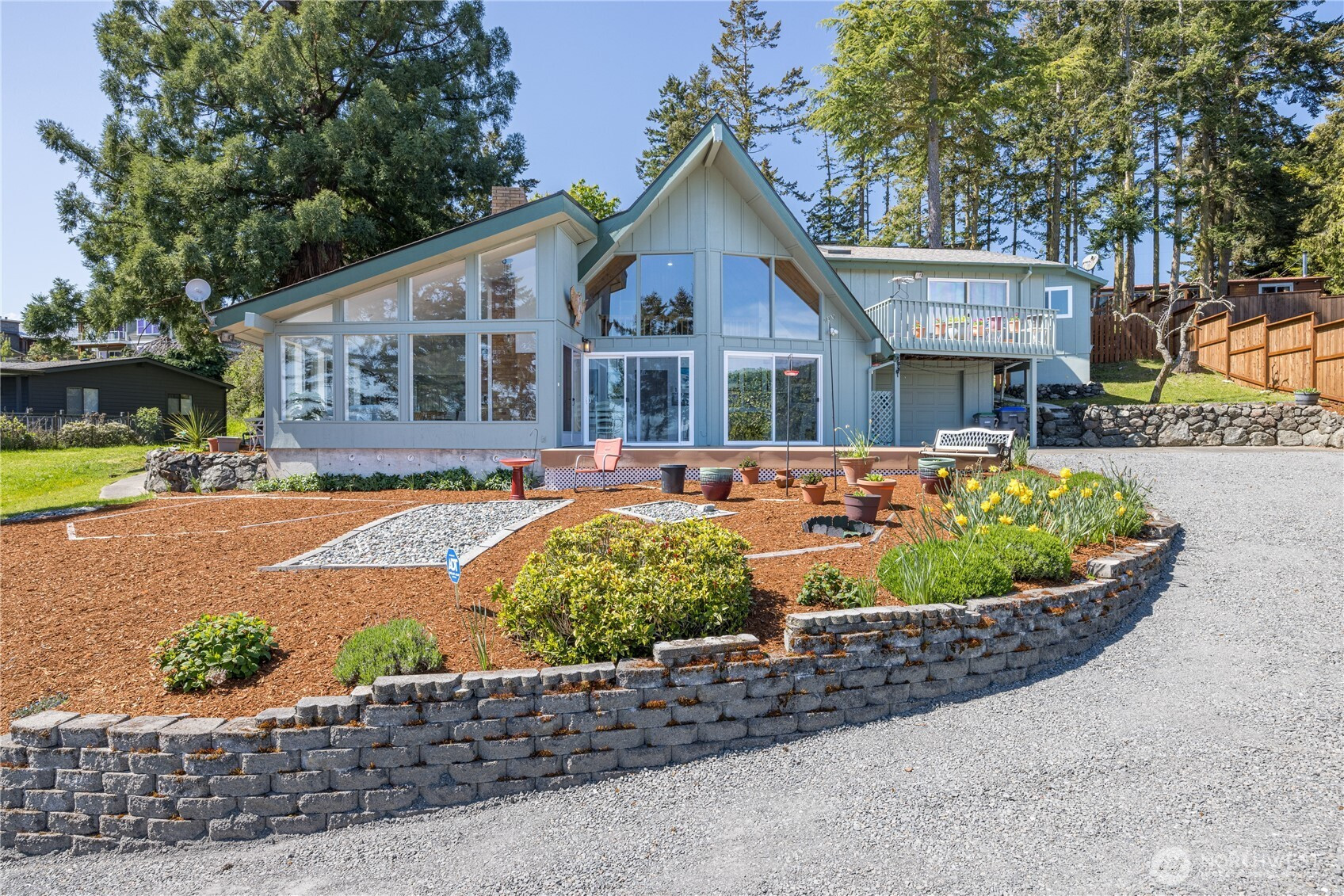 Perched in a peaceful, friendly neighborhood, this light-filled retreat captures stunning bay views from nearly every window. The moment you step inside, soaring vaulted ceilings and warm wood detailing create an inviting, airy space designed to impress and unwind. Expansive windows flood the home with natural light, while the sunroom and indoor greenhouse offer year-round spaces to relax and recharge. The thoughtfully designed layout is ideal for both everyday living and entertaining. The spacious living area flows seamlessly to a Trex deck and beautifully landscaped grounds, creating a natural indoor-outdoor connection. The primary suite offers a private escape with its own balcony and ensuite bath—perfect for quiet mornings with a view. Extensive updates provide style and peace of mind, including fresh interior and exterior paint, new upstairs flooring, a remodeled kitchen, and 22 new windows, including all bay-facing windows. Additional upgrades include refreshed bathrooms, solid core interior doors, upgraded outlets, and new wall heaters. Six retaining walls and meticulous landscaping enhance both function and curb appeal, complemented by a freshly graveled driveway. Additional features include two water heaters, a ductless heat pump, woodstove, and abundant storage throughout. As a rare bonus, enjoy 1/44 ownership of a private beach—offering exclusive access to the shoreline just moments away. A perfect blend of comfort, light, and coastal charm.