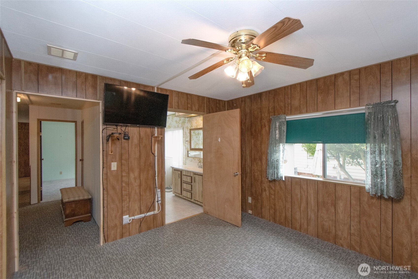 Welcome to your new home at Juniper Mobile Estates, a 62+ park located in sunny Sequim. This spacious, well maintained doublewide comes equipped with solar panels and 8 batteries. Kitchen features a water filtration system and brand new dishwasher. Bathroom off primary bedroom has a walk in tub with mounted TVs in bedroom and bathroom. Enjoy the covered porch and patio with wheelchair ramp, or the garden area with a green buffer for privacy. There is plenty of storage inside and out, with a shed just off the covered carport. Furniture and TVs convey with purchase. Just a block from groceries, bank, shopping and the new location for the senior center - minutes from all other amenities. Pets allowed with park approval.