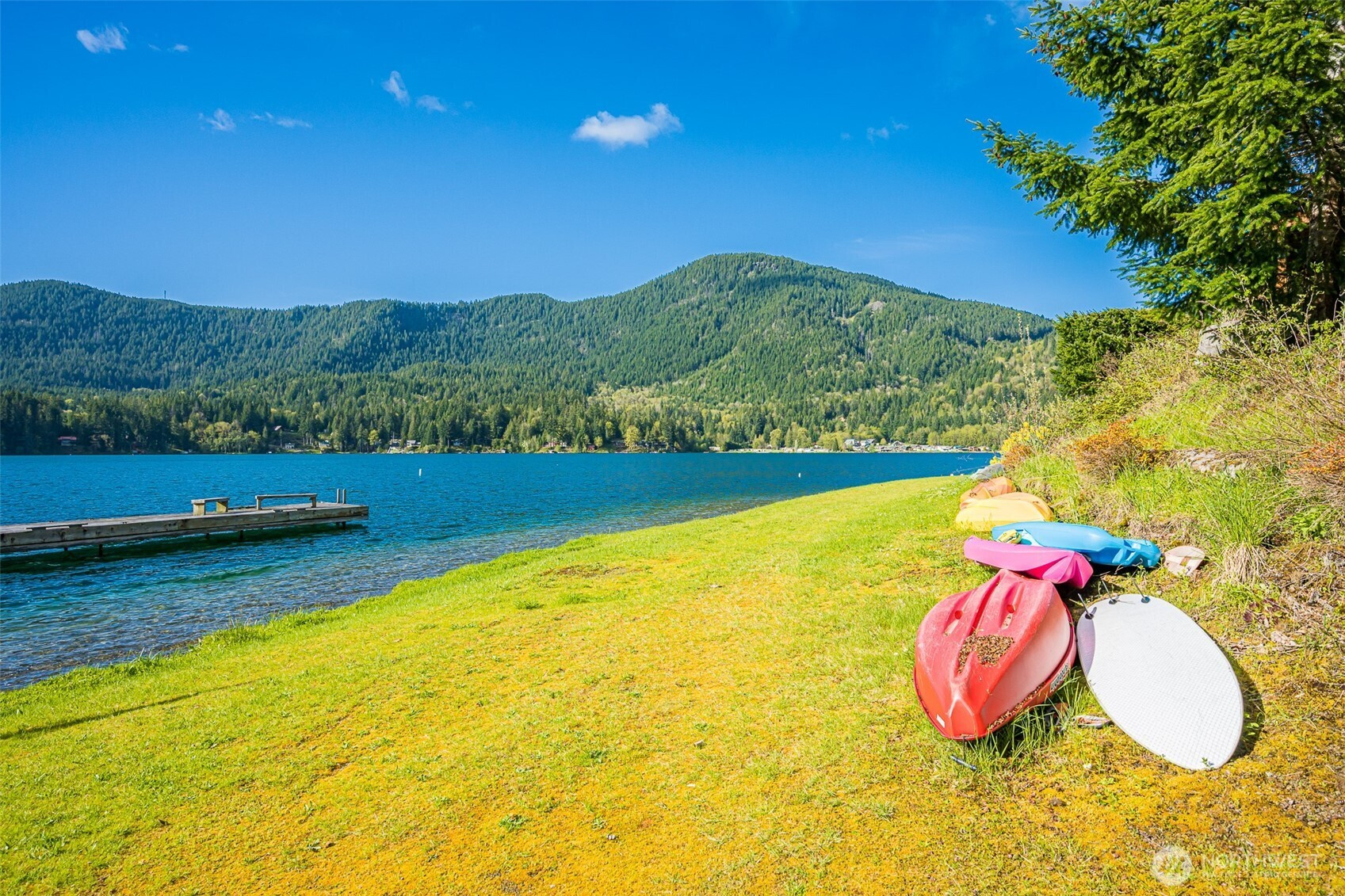 Welcome to lake life at Mallard Cove on Lake Sutherland! This 2 bed 2 bath LEVEL ENTRY lake home was once two separate suites in the original Mallard Cove Resort. Tastefully updated and converted to a single residence, the home now features panoramic lake view, a newer metal roof, ample parking, and newer exterior paint. The new owners will also get to enjoy ~350 feet of lake Sutherland waterfront, a boat dock, a swimming dock, a pool w/ Lanai, a meadow, waterfall and pond. Mallard Cove also has its own community water system that is not dependent on drawing water from the lake. Sold furnished if desired. The property has been a successful Air BNB for the last 5+ years, books available upon request. Too much to list, come see for yourself!