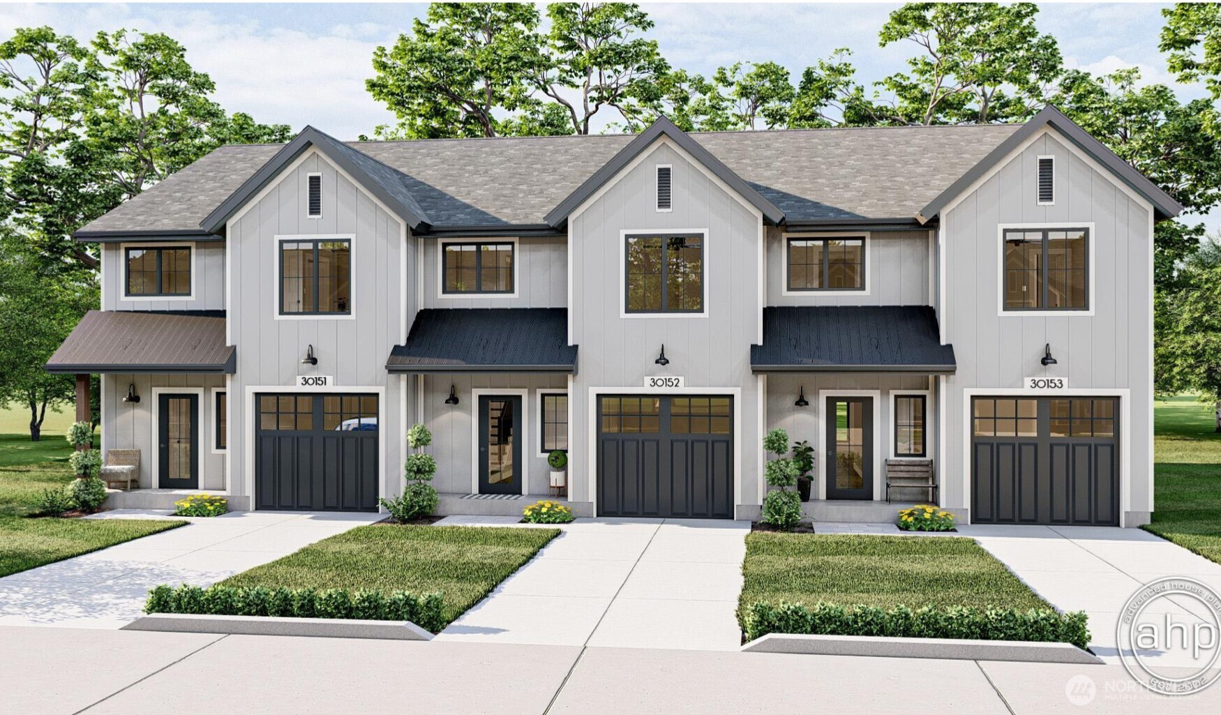 Experience high-quality living at an affordable price, perfectly situated between Sequim and Port Angeles. These brand-new condos feature a versatile layout with two primary bedroom suites plus a dedicated home office, all finished with a beautiful modern aesthetic. Extra-deep garages provide ample storage, while private fenced backyards and expansive windows create a bright, airy retreat. In addition to the driveway, guest parking is effortless with plenty of street space. Enjoy being walking distance to the best of Carlsborg, including the Olympic Discovery Trail, transit, and local favorites for shopping and dining.