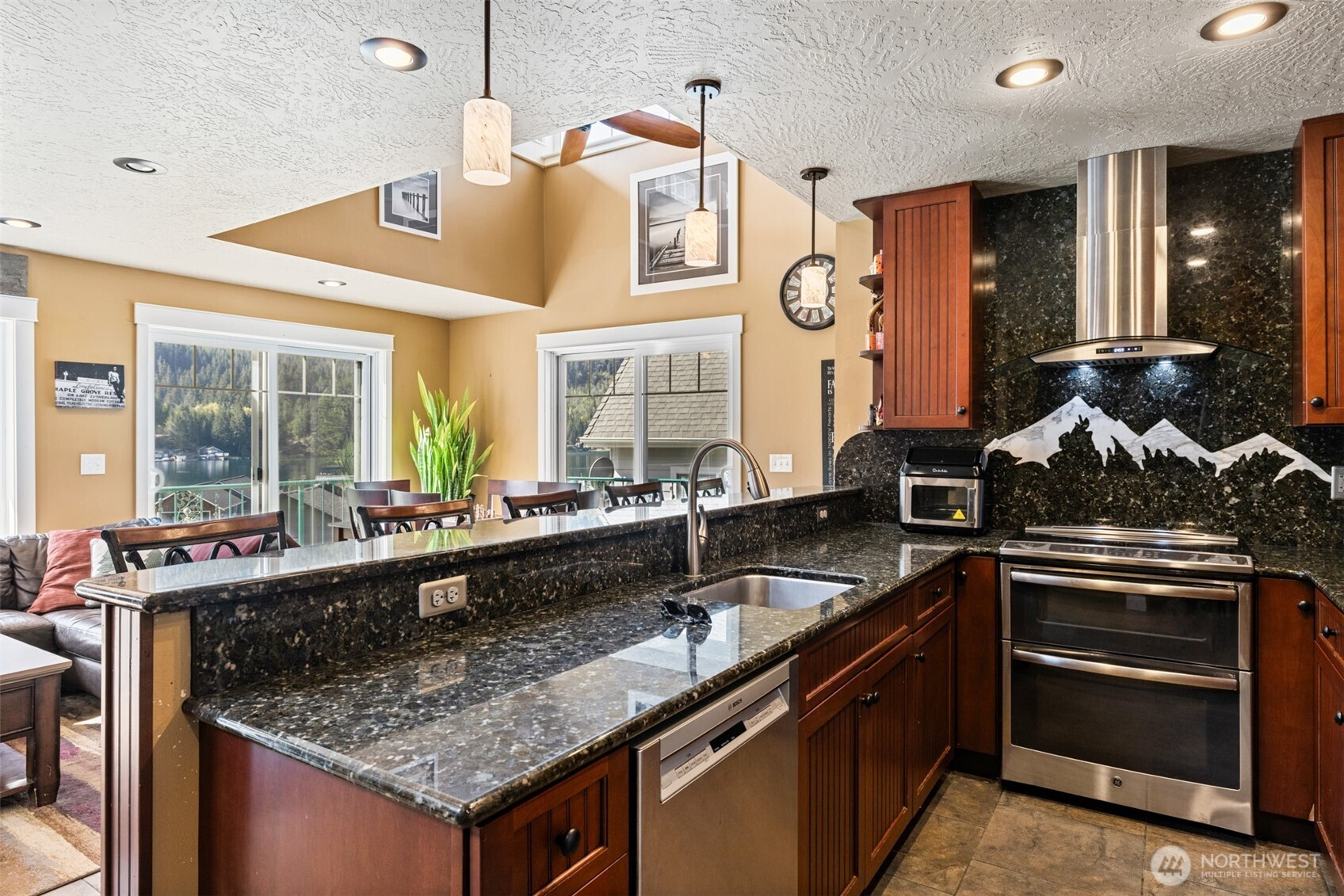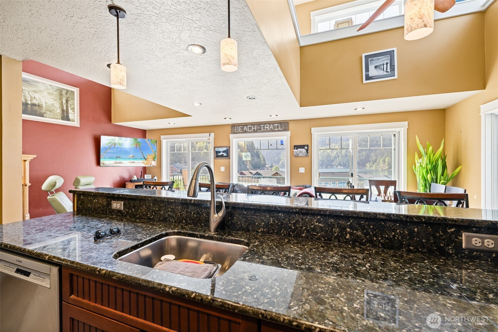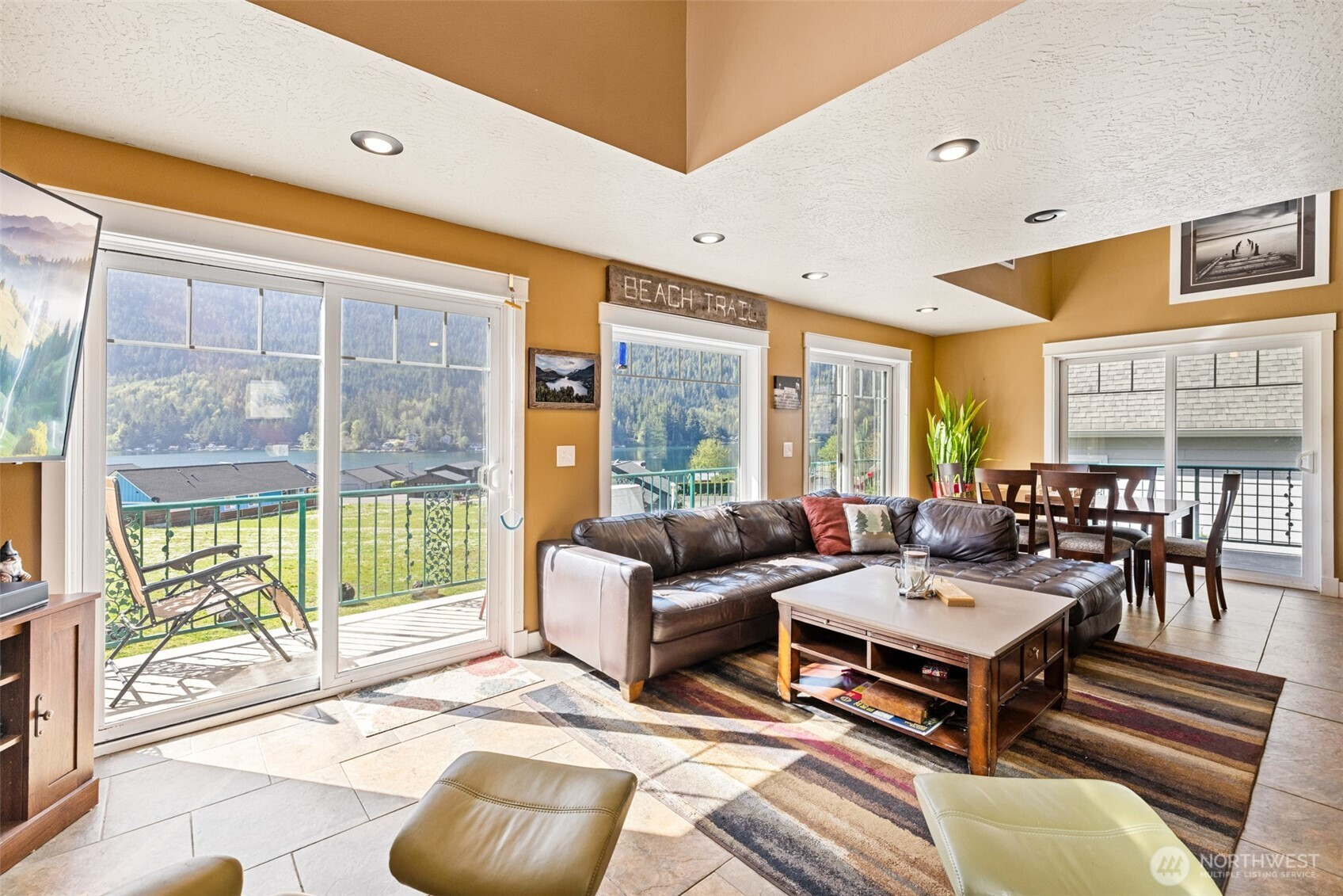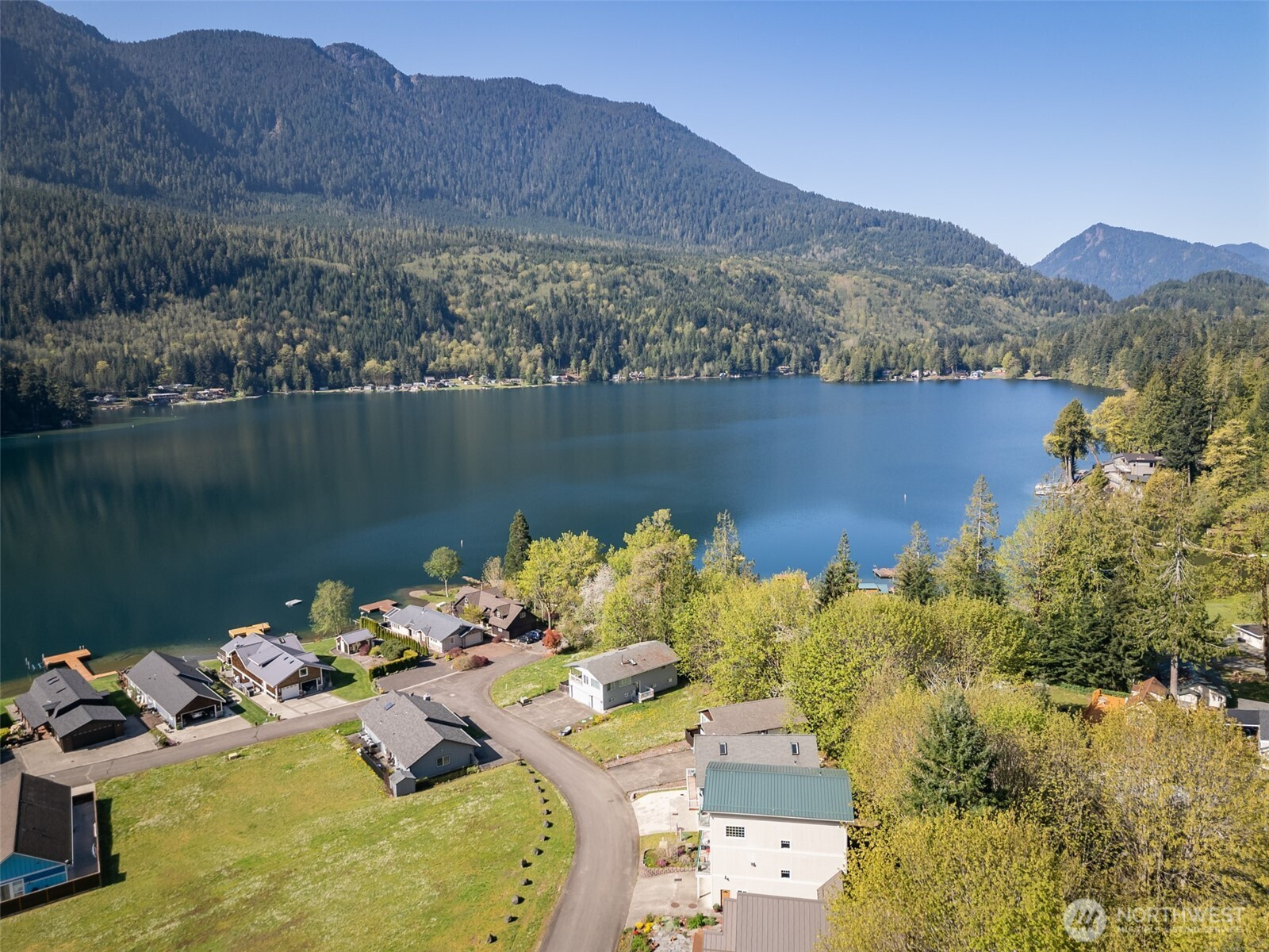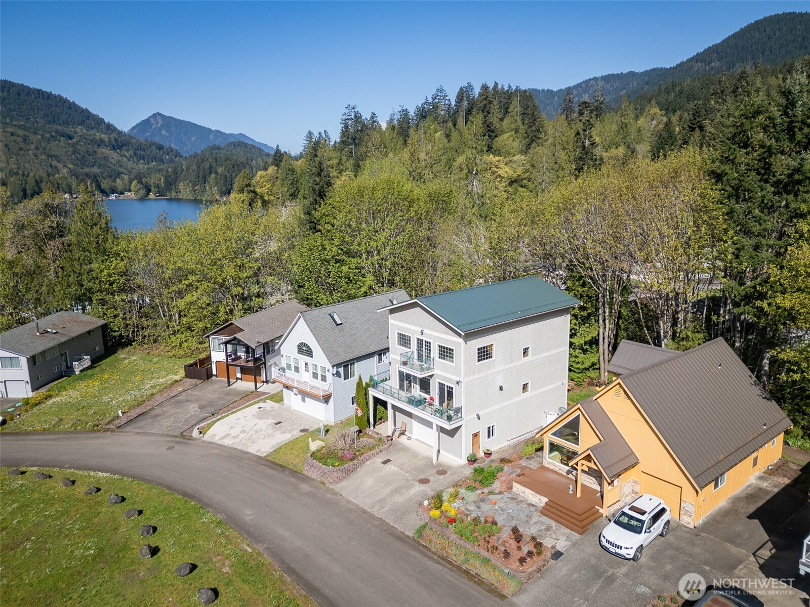 A rare opportunity to own a true slice of paradise on Lake Sutherland! Located in the highly desirable private Maple Grove community, known for its warm, welcoming, and friendly atmosphere, this modern 3-bed, 3-bath lake house delivers some of the best views on the entire lake! Designed for year-round living or unforgettable summers, every level offers walls of windows and a balcony overlooking shimmering water and mountain vistas. The expansive garage is a dream with radiant heated floors, ¾ bath, abundant storage, and a partially finished kitchen make it ideal for a future guest suite, rental income, or large group gatherings. The top floor primary suite is a retreat of its own with sweeping views and private balcony access. Enjoy stainless steel appliances, granite countertops with beautiful mountain inlays behind stove, propane fireplace, metal roof, generator wiring, and your own private boat slip. Lots of light, modern, and move-in ready homes like this rarely come available.