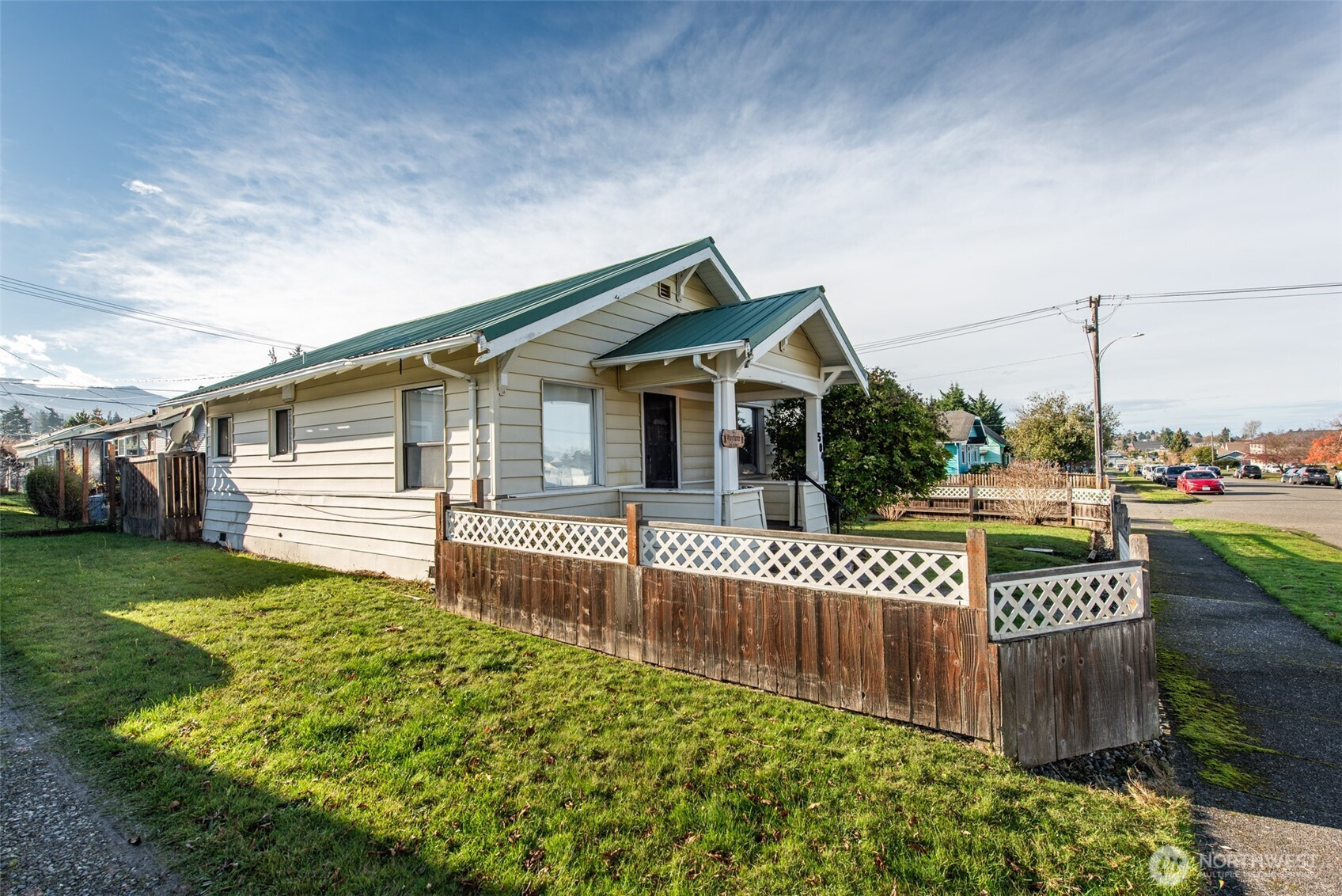 Discover the perfect Port Angeles gem, close to the Olympic National Park, Hurricane Ridge, ferry to Victoria, and downtown’s vibrant shops & dining! This charming, turnkey 2-bed, 1-bath home is ready for you to make it your own. Adorable covered front porch welcomes you into hardwood floors, charming living spaces, and a sweet dining nook off the efficient kitchen. Detached garage with workshop potential, and a sunny corner lot—fully fenced with low-maintenance landscaping, perfect for pets or a blank slate to create an urban garden space. Quiet neighborhood with easy bus access and a short distance to everything. Ideal as a primary home, weekend retreat, or continued income-producing rental!