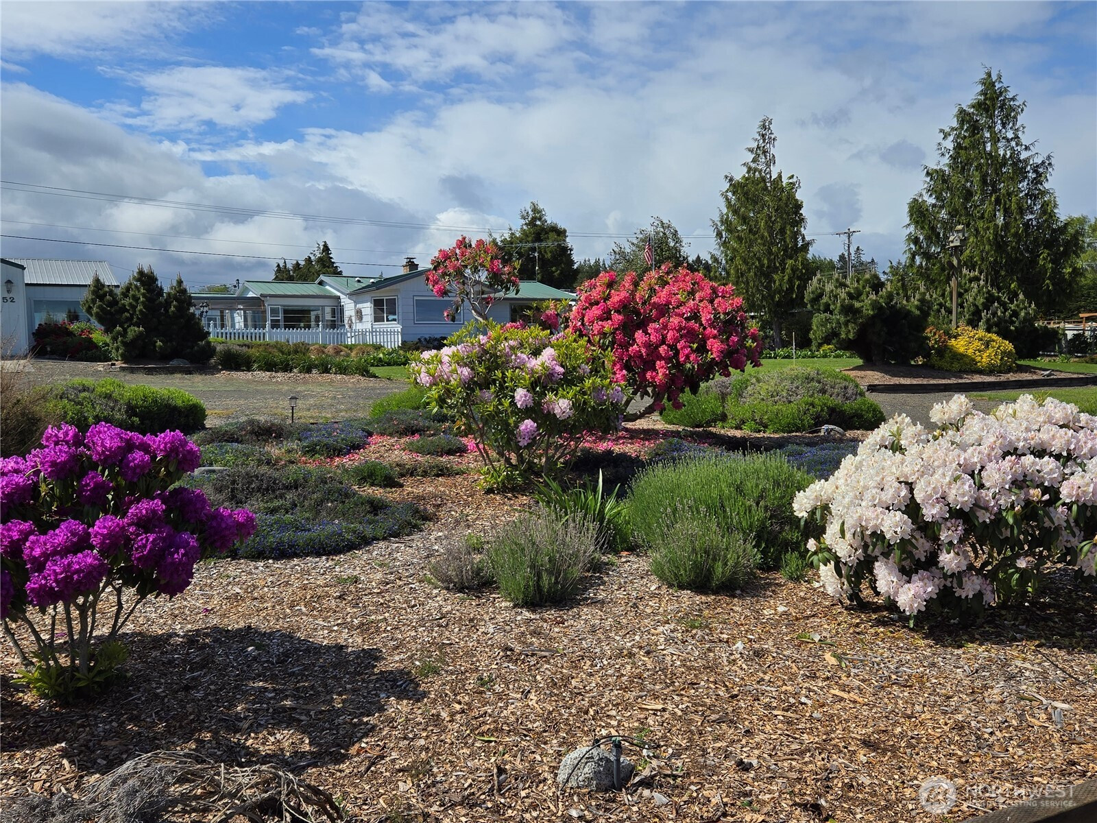 Charmingly remodeled and recently repainted 2171 sq ft country cottage with spectacular Bleimeister cabinets, gas range, vaulted living room ceiling, pellet stove, spacious dining room. Views of Dungeness Spit and Victoria to the North, Olympic Mountains to the South. Walk-in shower and large walk-in closet in Primary Suite. One bedroom has built-in shelves., separate pantry/laundry room, lifetime metal roof, 1440 sq ft 2 car garage/shop with two additional workrooms, plus 240 sq ft shed with garage door. RV pad with 40-amp electric hook-up. Two Trex decks, one partially covered. Best micro-climate in the Paradise of Sunny Sequim, just 1/3 mile from the Strait of Juan de Fuca! There is even a white picket fence!