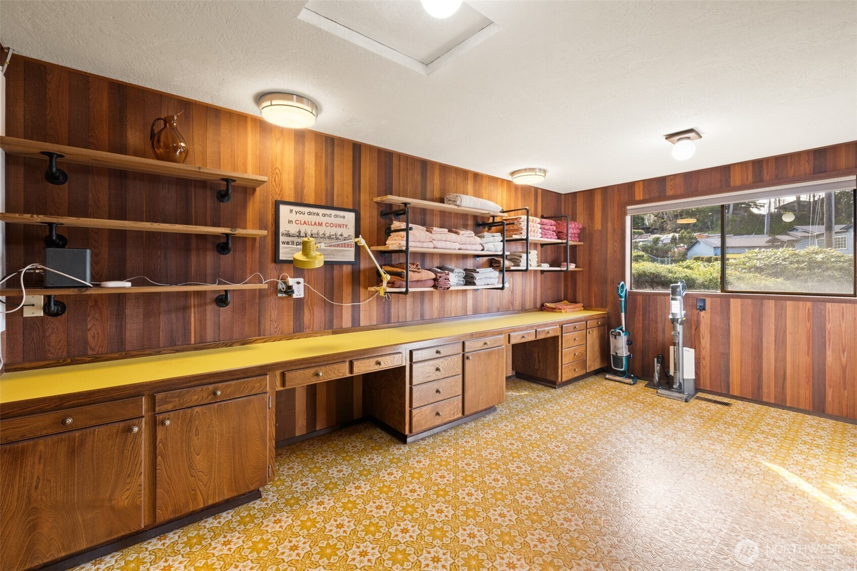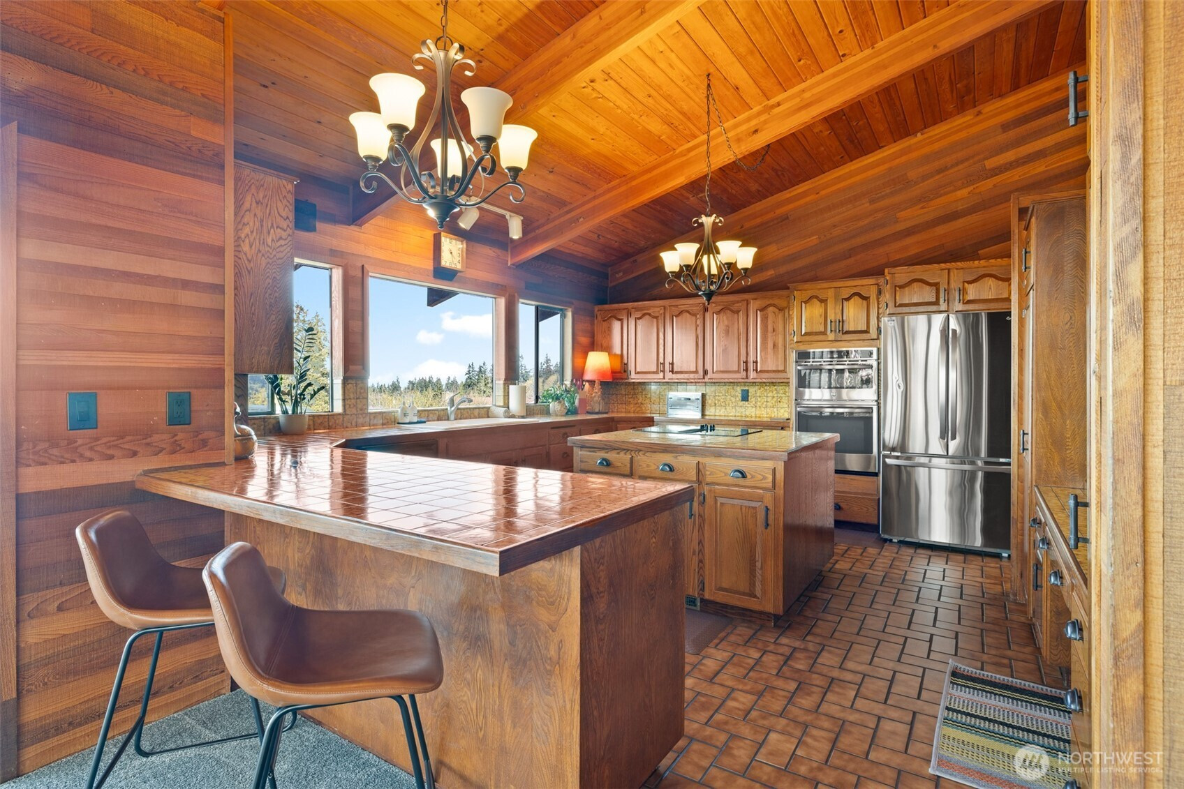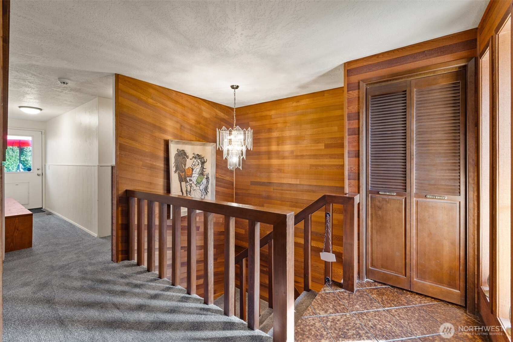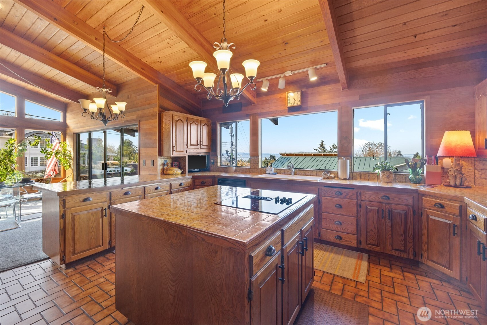 Experience a rare intersection of 1970s contemporary architecture and Pacific Northwest natural beauty. This DelGuzzi-built legacy home, located in the highly desirable Cresthaven neighborhood, is a meticulously preserved split-level masterpiece that channels a sophisticated post-modern, mid-century California vibe. The journey begins with grand stairs leading to a dramatic entry. Inside, the residence reveals soaring interiors characterized by vaulted wood ceilings and rich cedar paneling. The light-filled floor plan is defined by massive windows that frame the rugged beauty of the PNW, offering a front-row seat to stunning sunrise and sunset views over the Strait of Juan de Fuca. At the heart of the home sits an original, full-wall stone fireplace, serving as a monumental focal point for the main living area. Every corner of this property reflects the intentional design and quality craftsmanship of a bygone era, kept in pristine condition for the modern connoisseur.